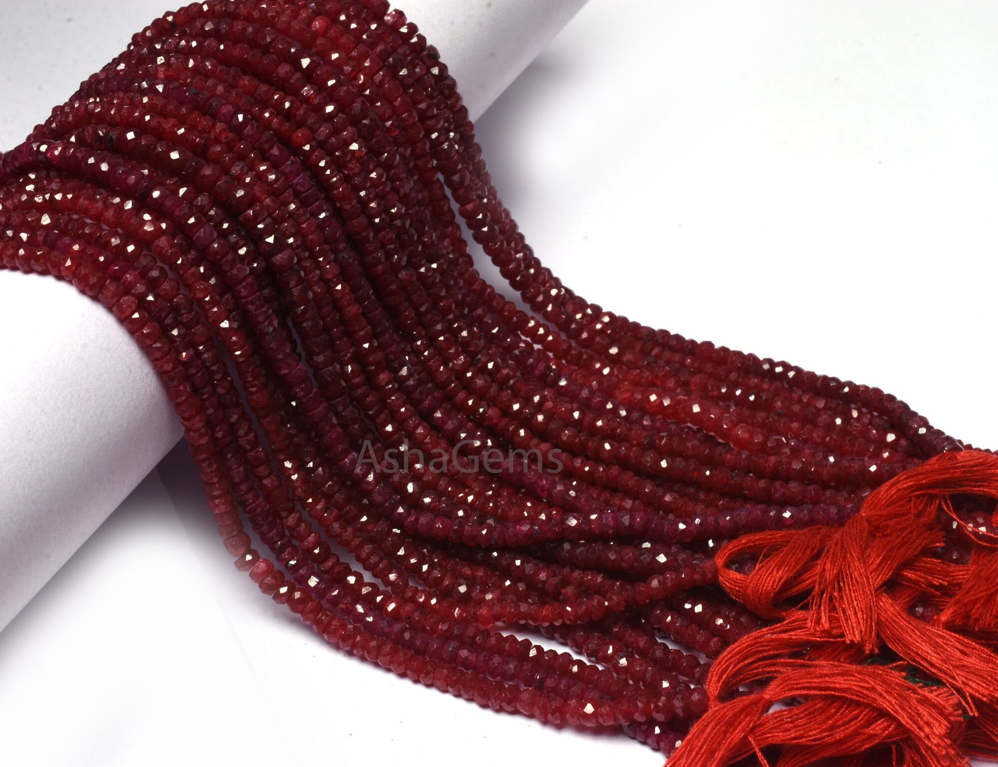 Beautiful Red Ruby Faceted Rondelle Shape Beads, Ruby Corundum Beads,3,3.5mm Ruby faceted Indian Cut Gemstone bead For Necklace Jewelry SALE