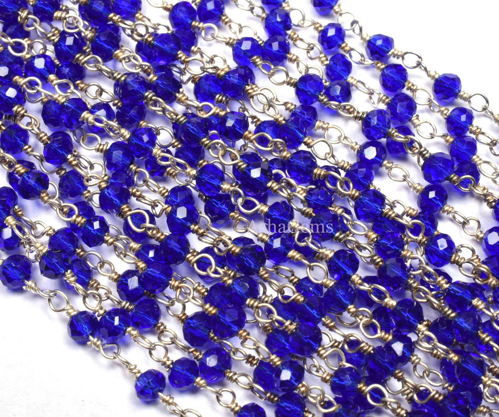 beautiful Royal Blue Quartz Hydro Faceted Rondelle Beads Chain 1,5,10,50 Ft. Silver Plated Rosary Chain Wire Roll Chain For Jewelry makings