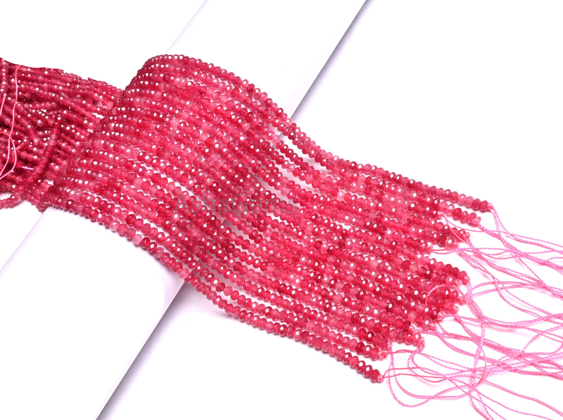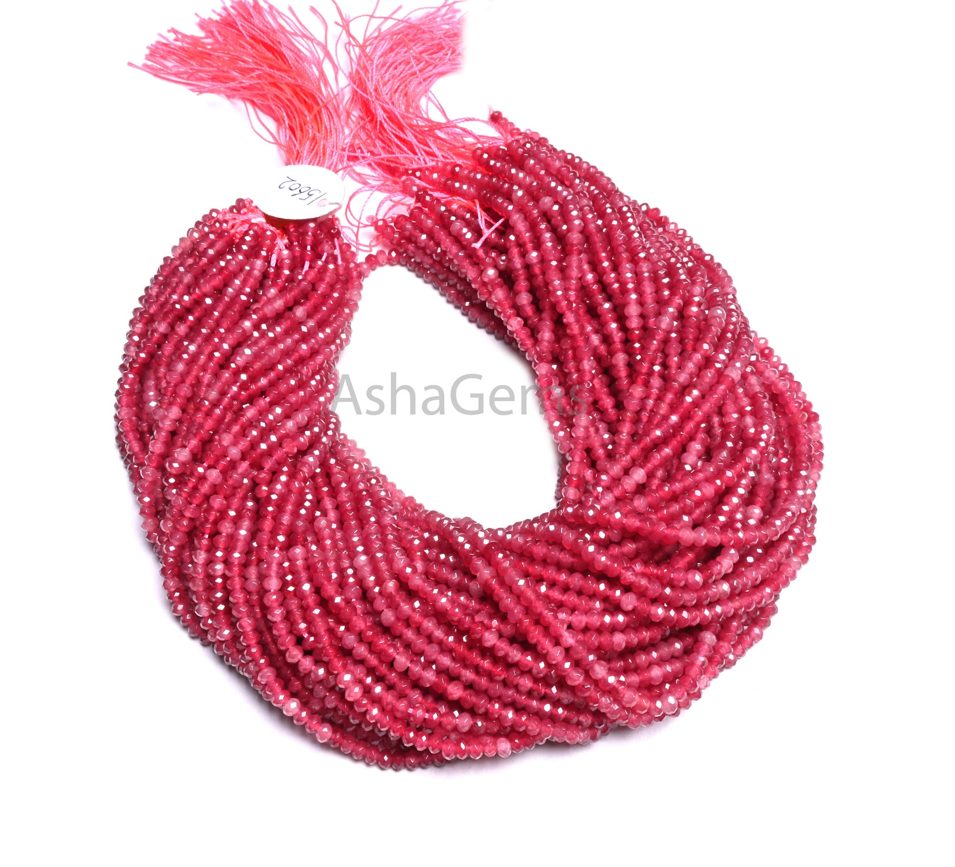 Beautiful Rubellite Pink Jade Quartz micro faceted Rondelle Shape Beads,4.5mm Fine Pink Jade Quartz machine cut Gemstone Bead Jewelry Making Craft