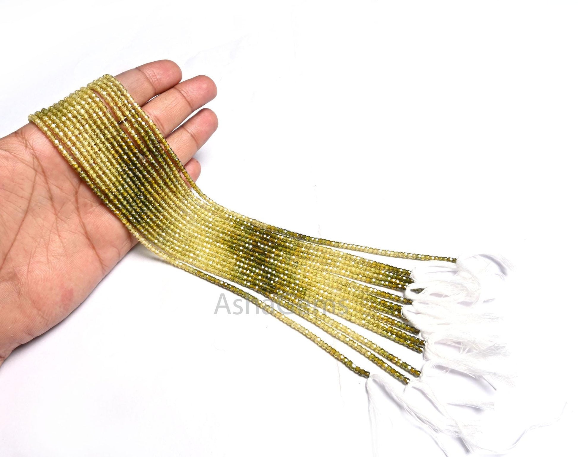 Beautiful Shaded Green zircon Faceted Rondelle Shape Beads,13" Strand Cubic zircon beads,3 mm AAA Green Zircon Beads For Necklace Jewelry