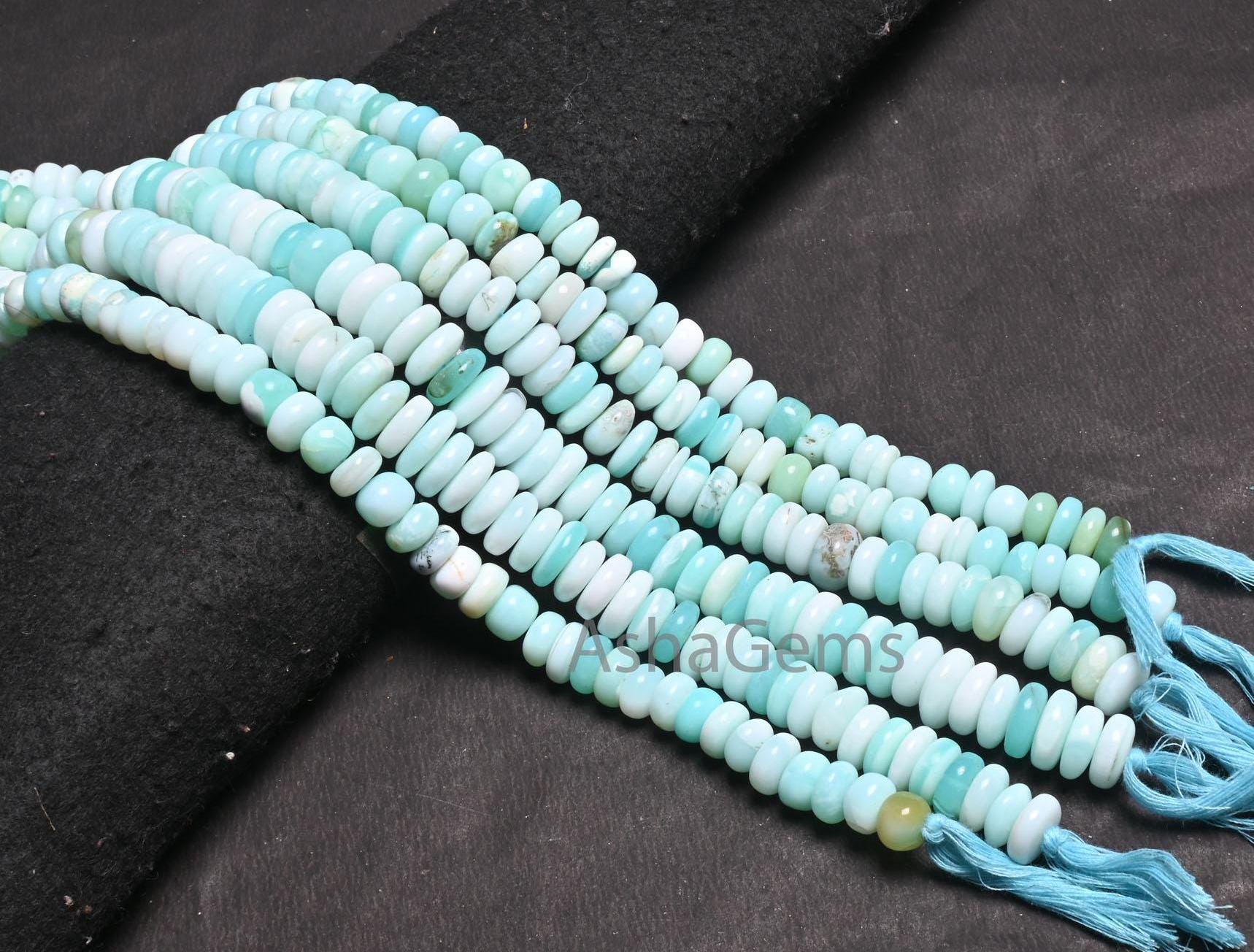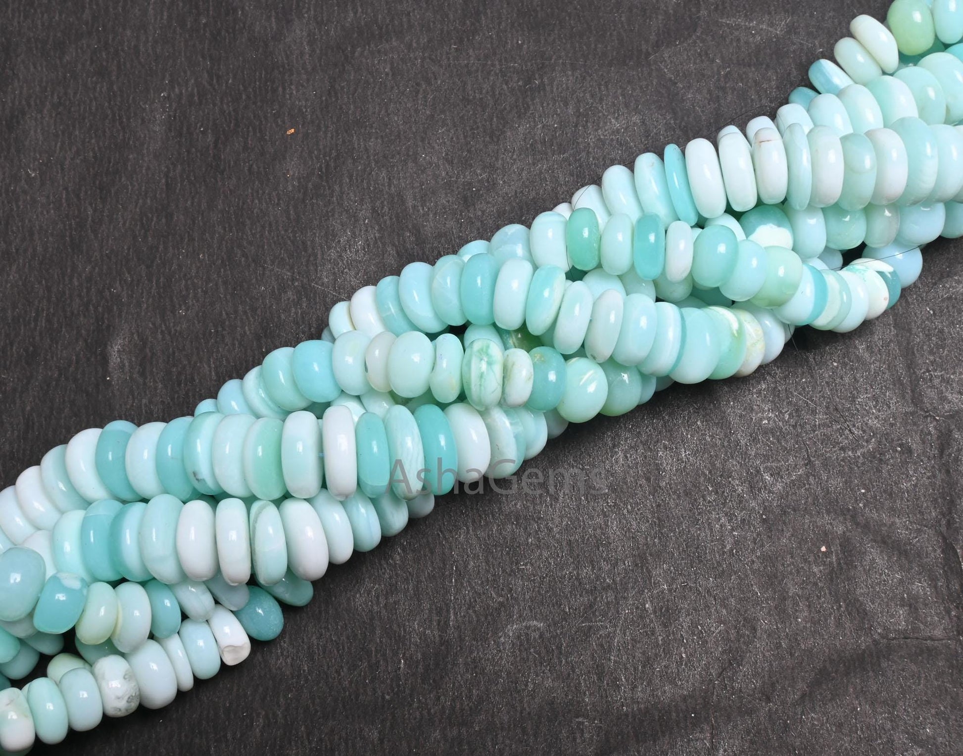Beautiful Sky Peru Blue Opal Smooth Flat Rondelle Gemstone Loose Beads, Fine Shaded Blue Opal Plain Handmade Opal Beads Jewelry making Craft