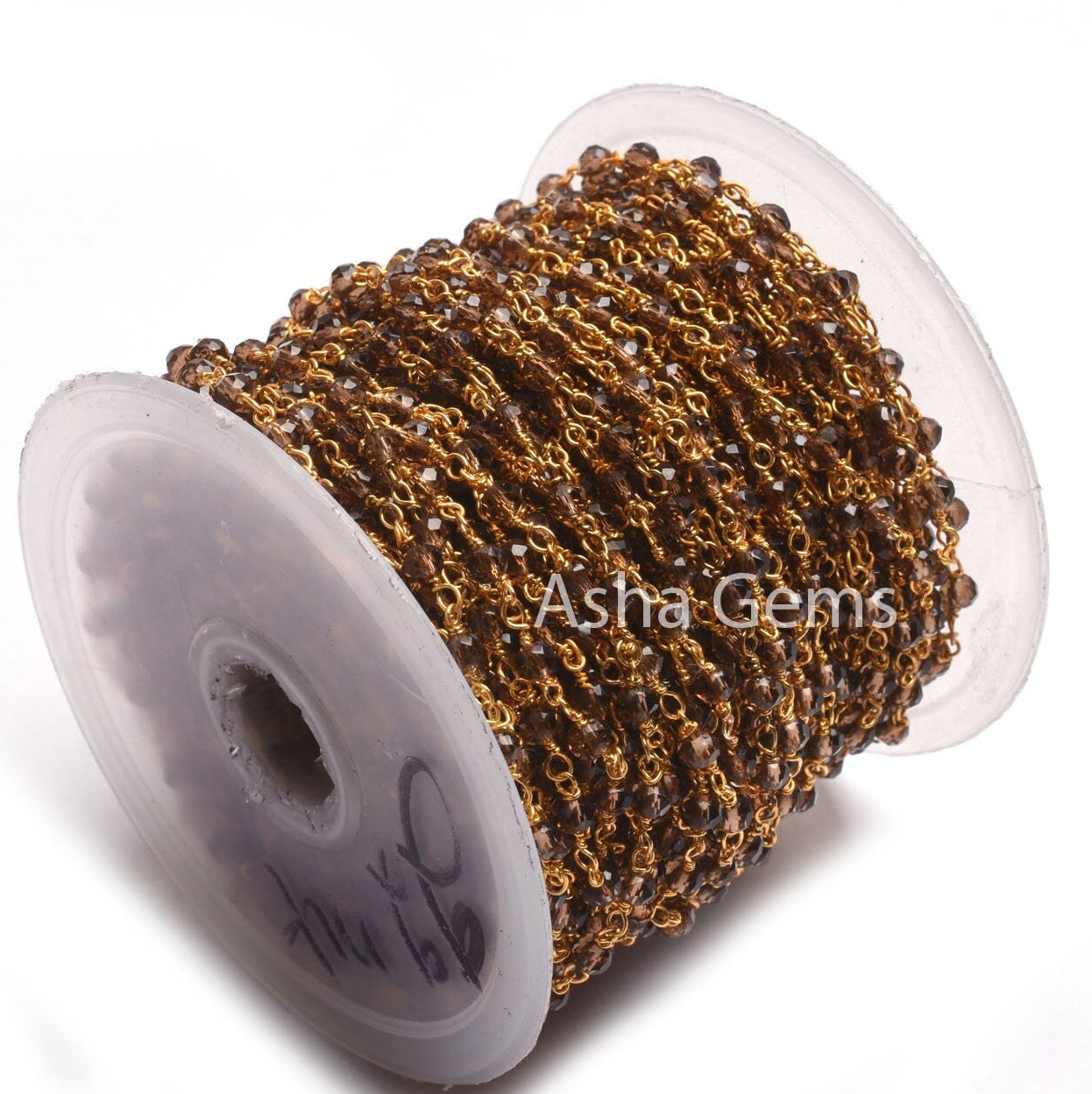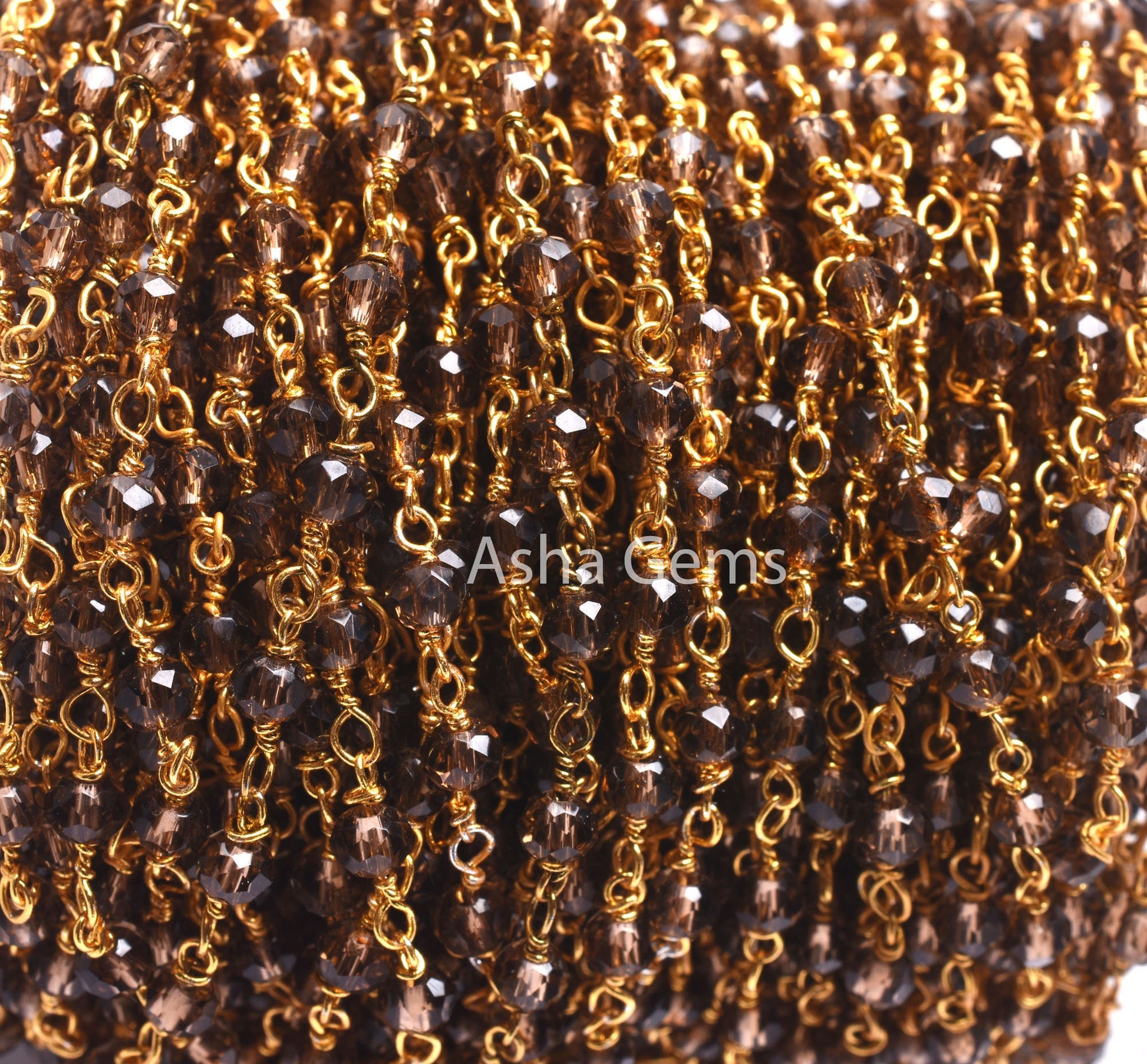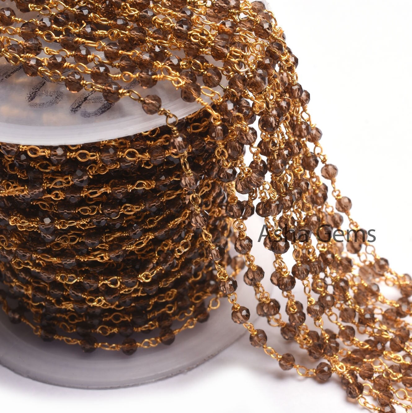 Beautiful Smoky Quartz Hydro faceted Beads Rosary Chain, Rosary Micro Cut Beaded Chain Gold Plated Wire Bulk Roll Jewelry Making Chains SALE