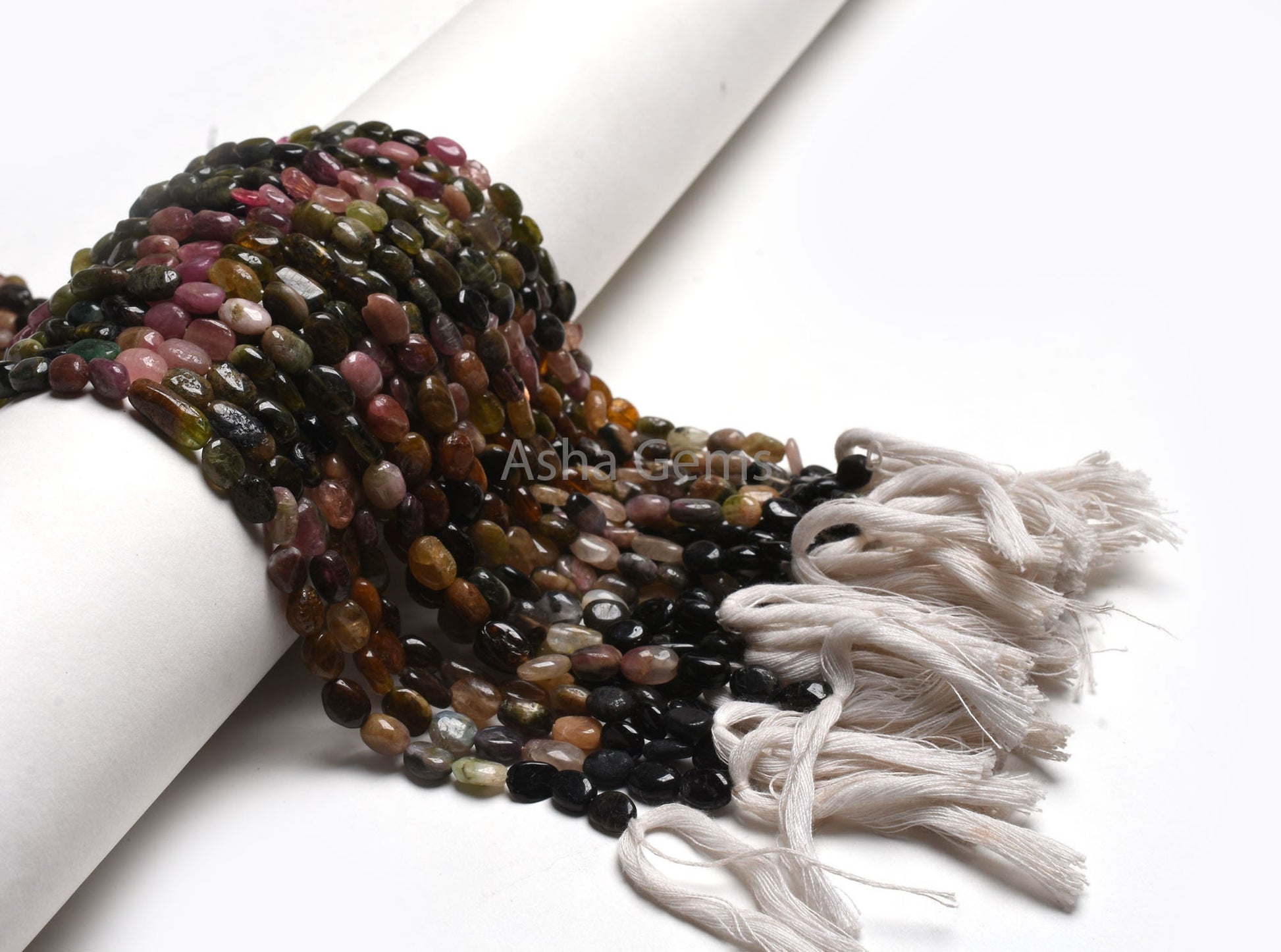 Beautiful Tourmaline Smooth Oval Beads,13" Natural Multi Color Tourmaline Plain Handmade Uneven Oval Straight Drill Gemstone Tourmaline Bead