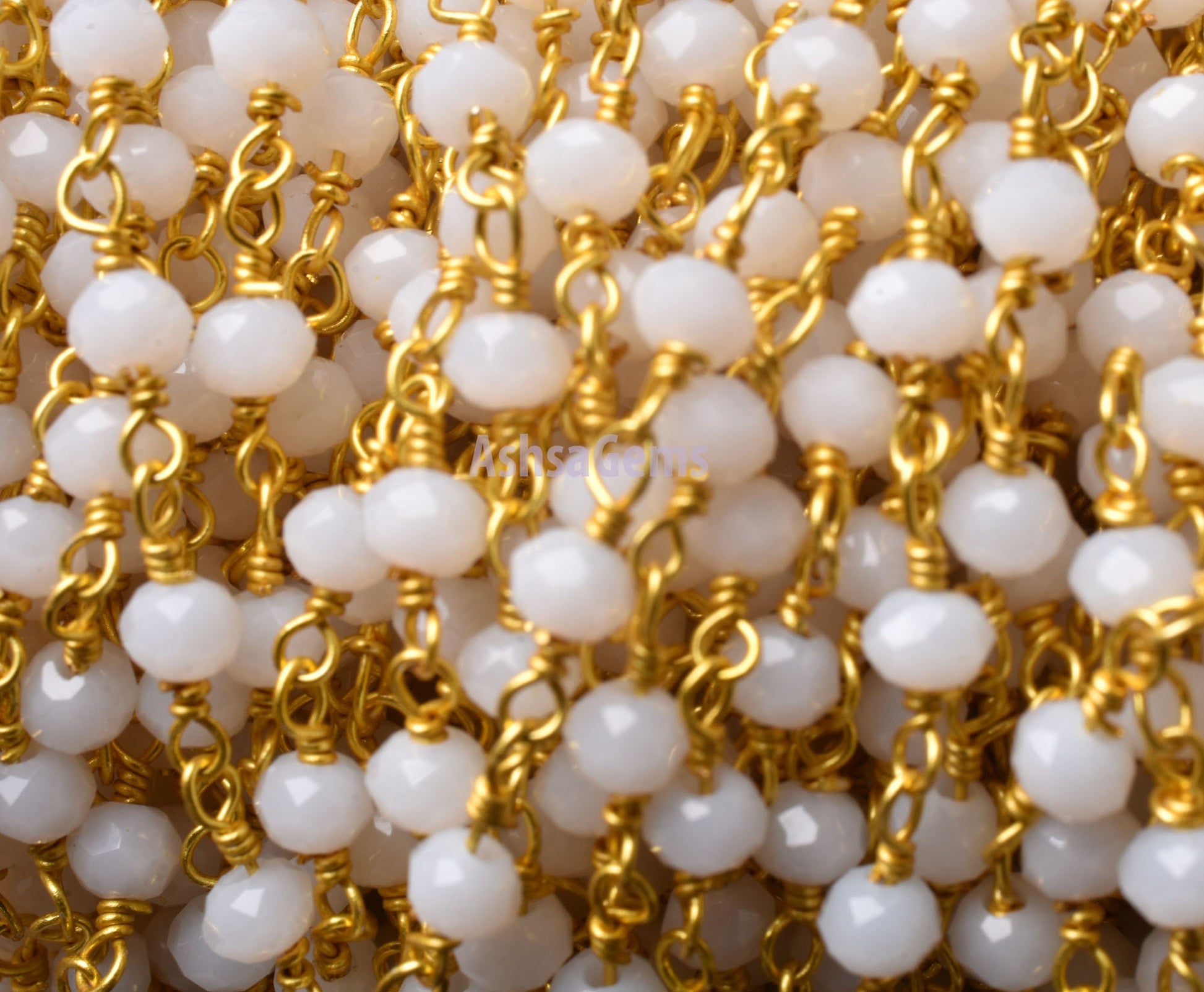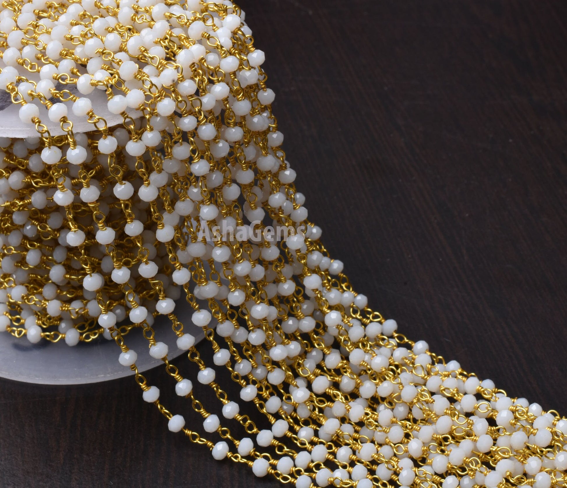 Beautiful White Agate Hydro Rondelle Faceted Beads Rosary Chain,3-3.5 mm Gold Plated Wire Wrap Beaded handmade Chain Rosary Jewelry Necklace
