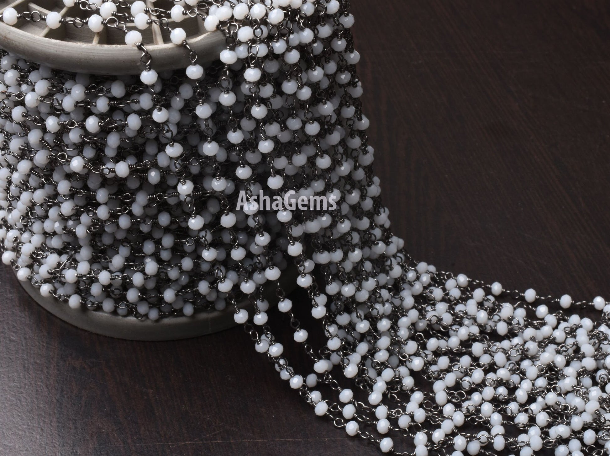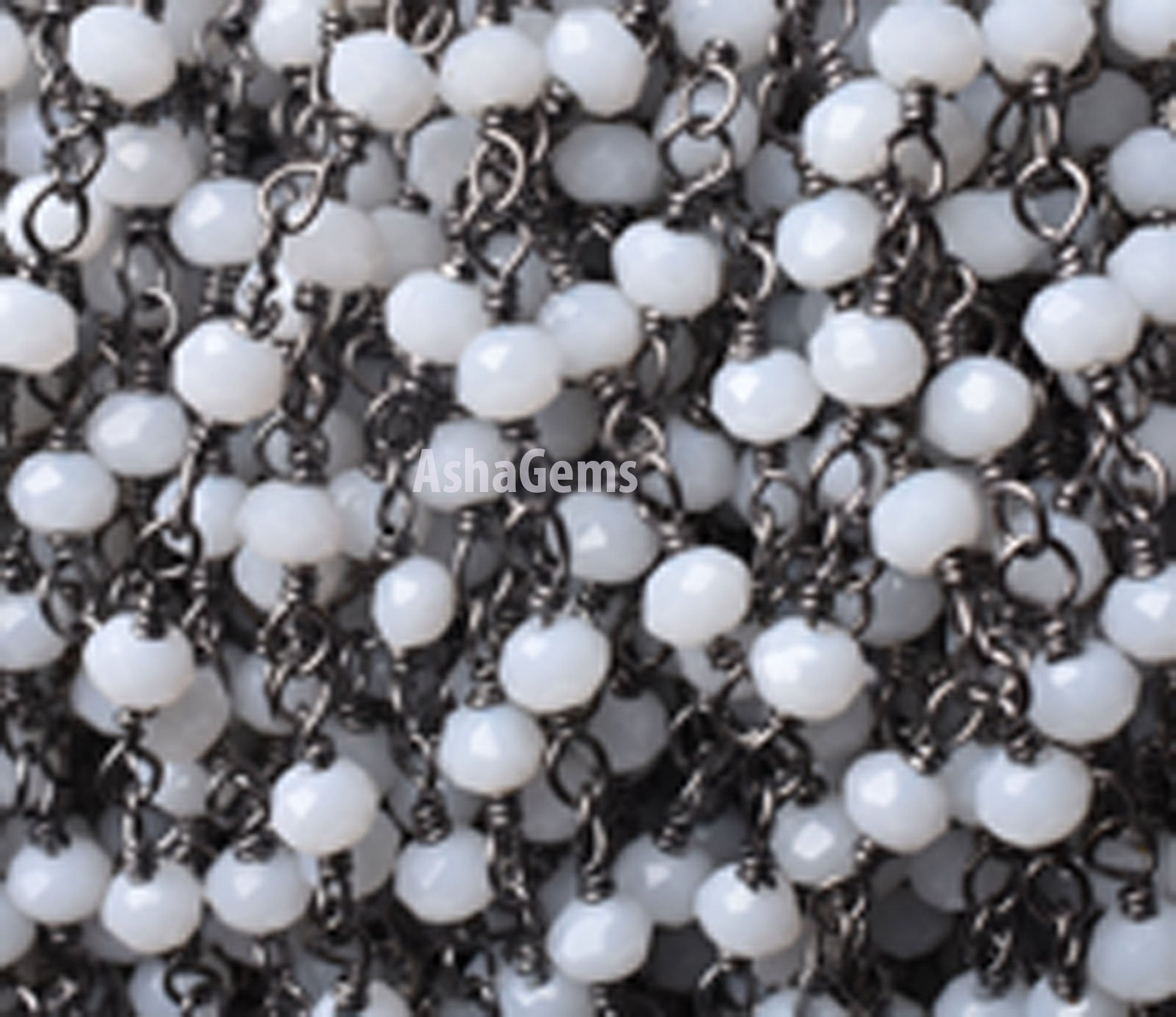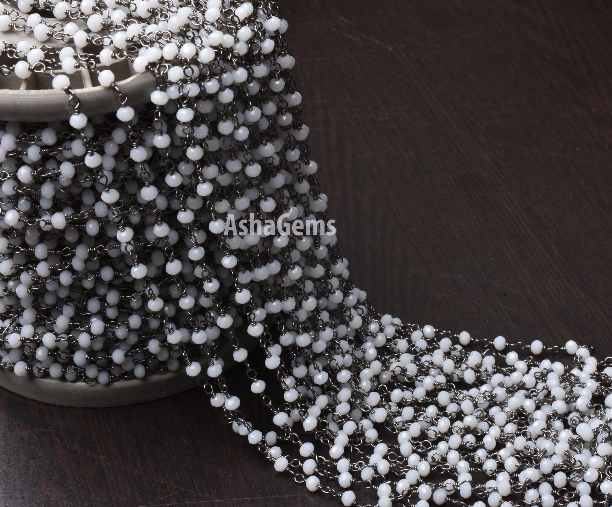 Beautiful White Agate Hydro Rondelle Faceted Beads Rosary Chain,3 mm Gun Metal Plated Black Wire Wrap Jewelry making Necklace Handmade Chain