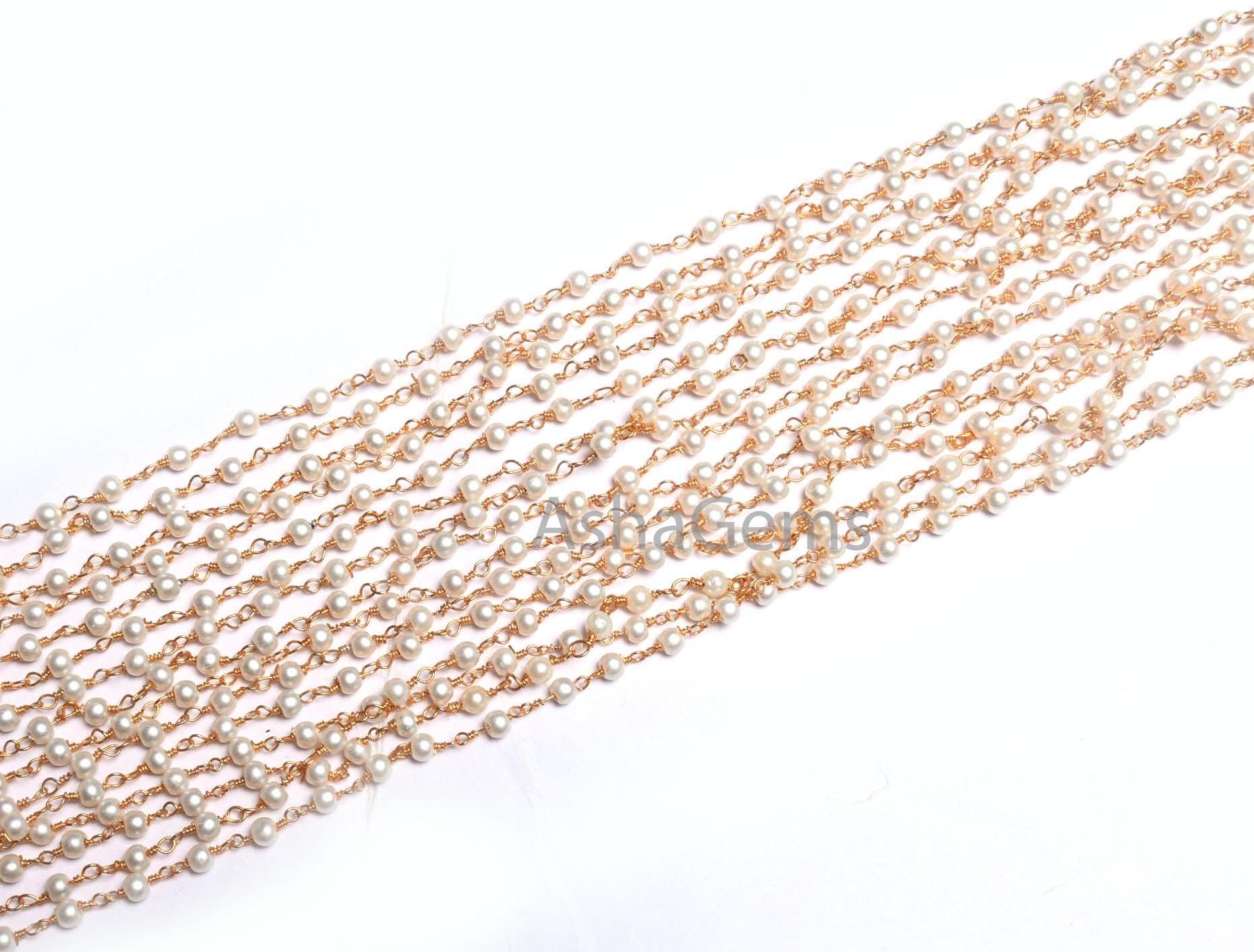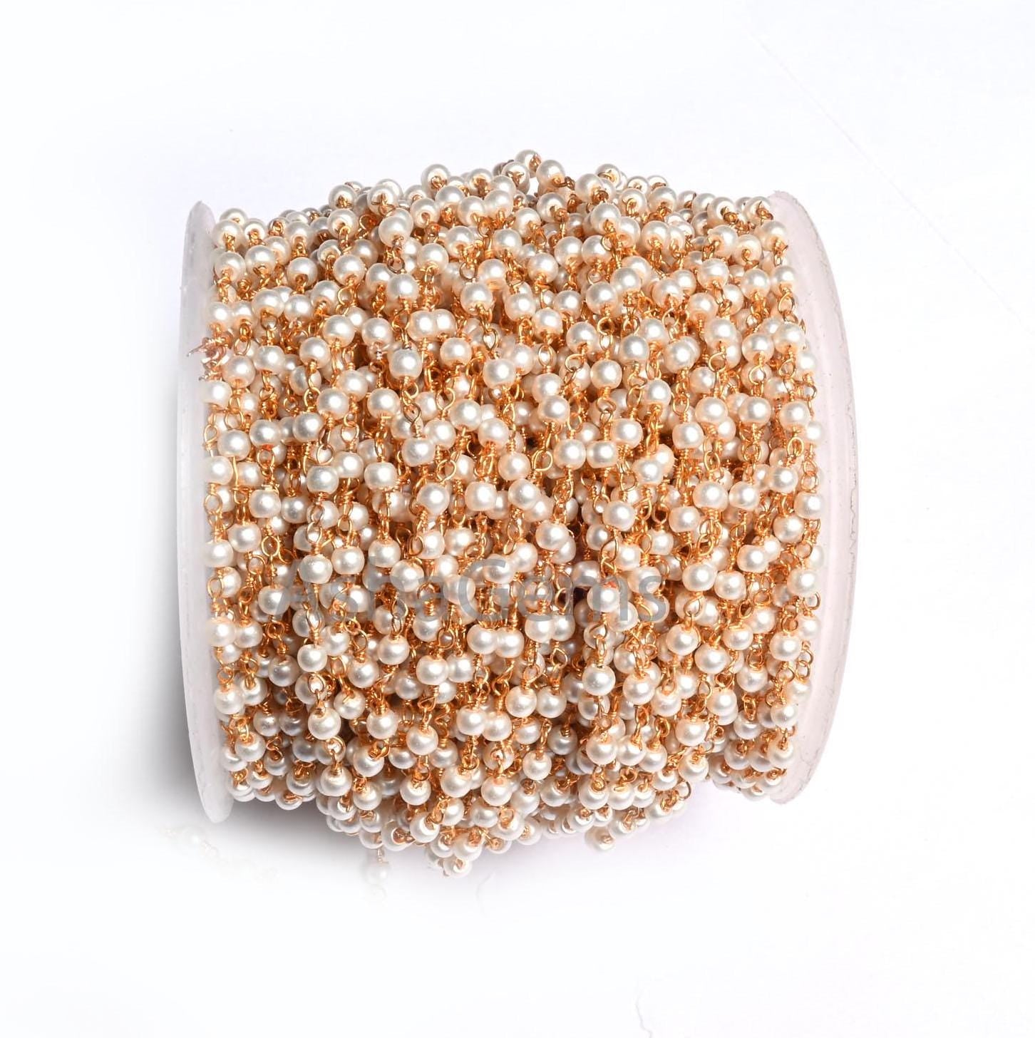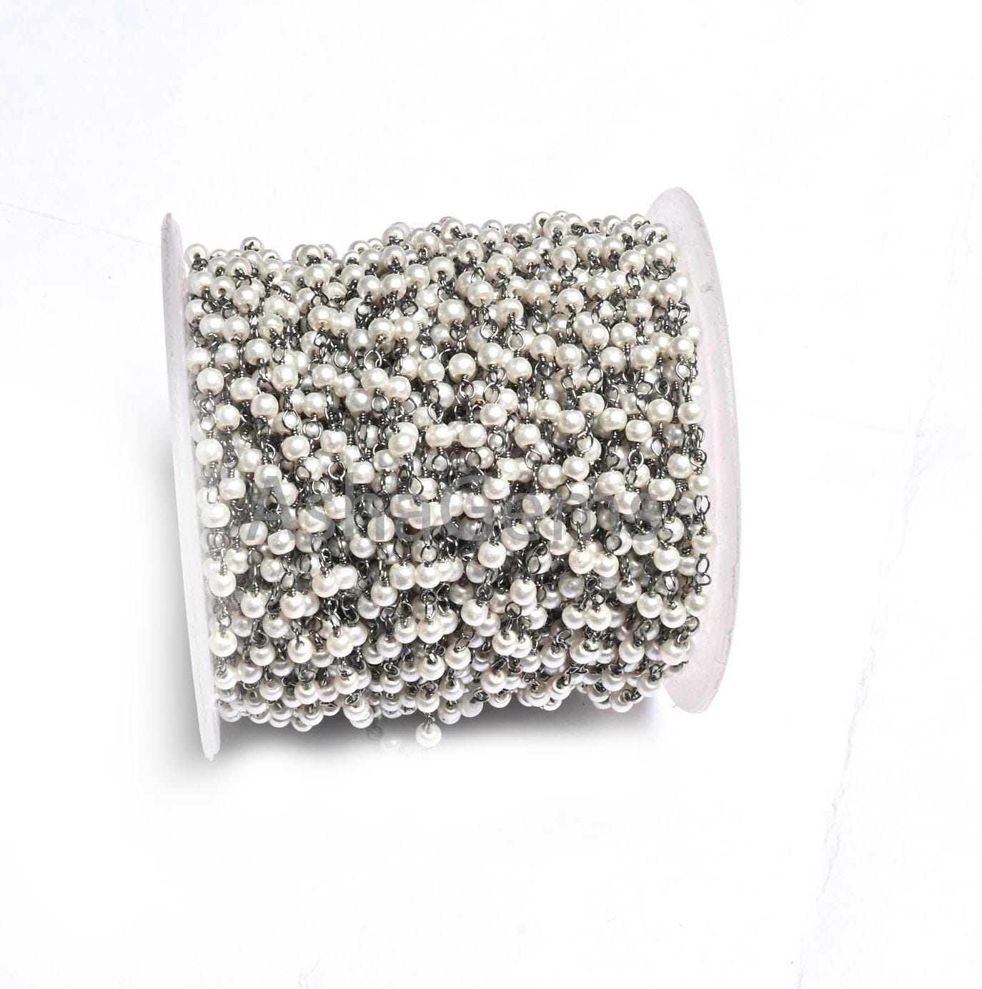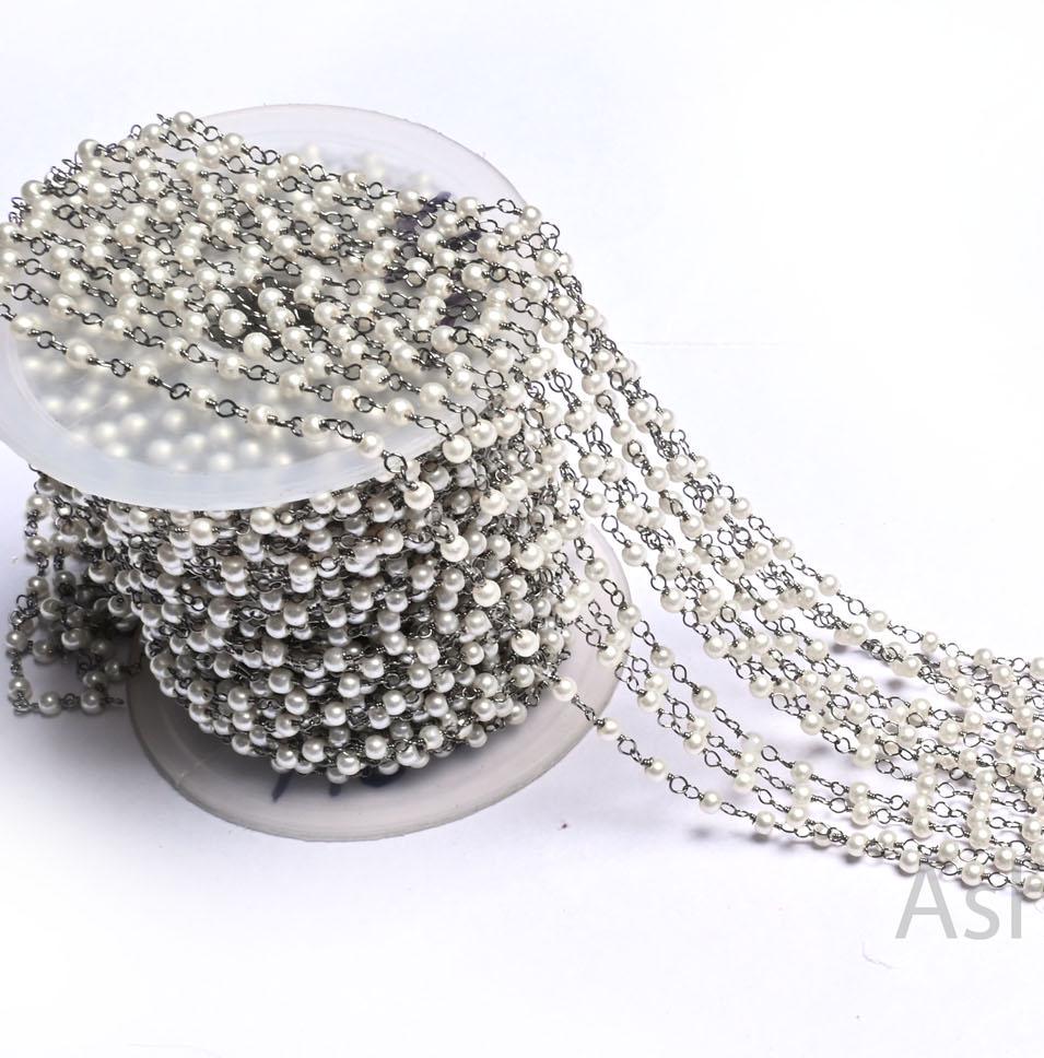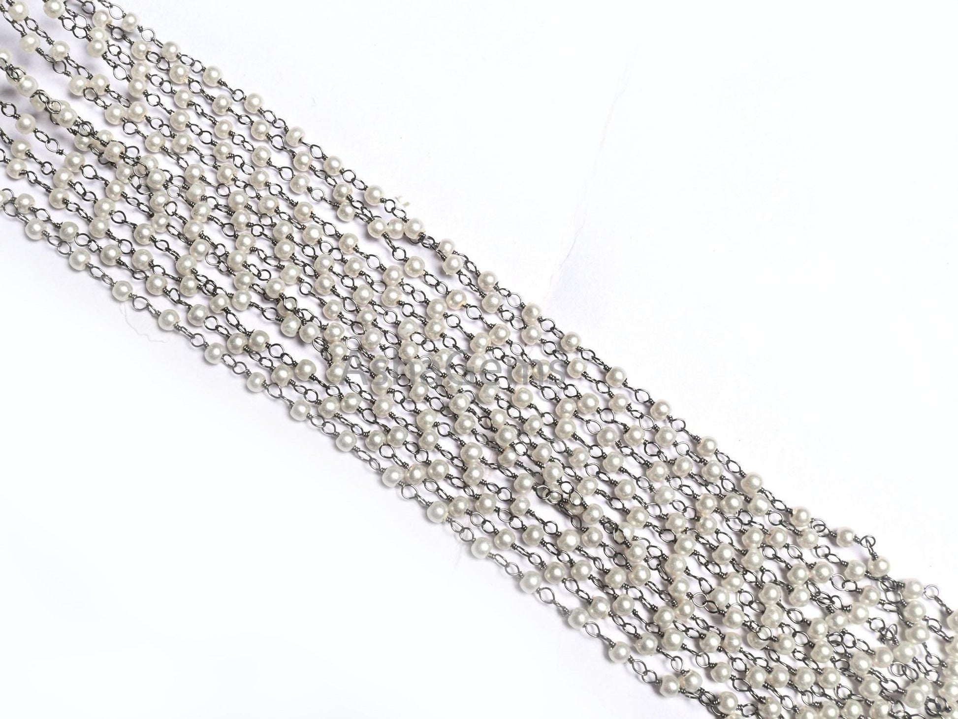 Beautiful White Pearl Hydro smooth Rondelle Beads Rosary Chain,3 mm Gold, Black Plated Wire Wrap Beaded handmade Chain Jewelry Making Craft
