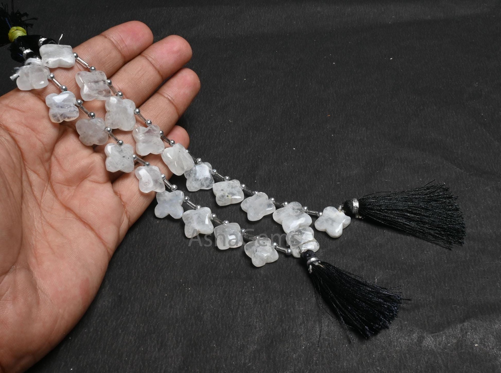 Beautiful White Rainbow Moonstone Carve Flower Gemstone Beads, Blue Fire Rainbow carving handmade Fancy Side Drill Beads Jewelry Craft SALE