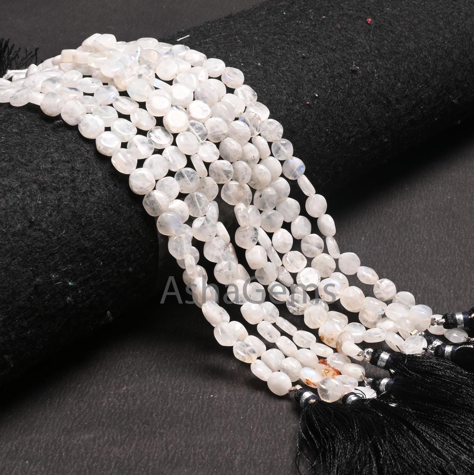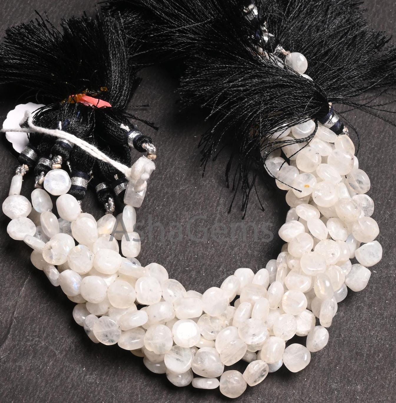 Beautiful White Rainbow Moonstone Smooth Coin Gemstone Beads,8" Natural Flash rainbow Moonstone Uneven Flat Coin Handmade Bead Jewelry Craft