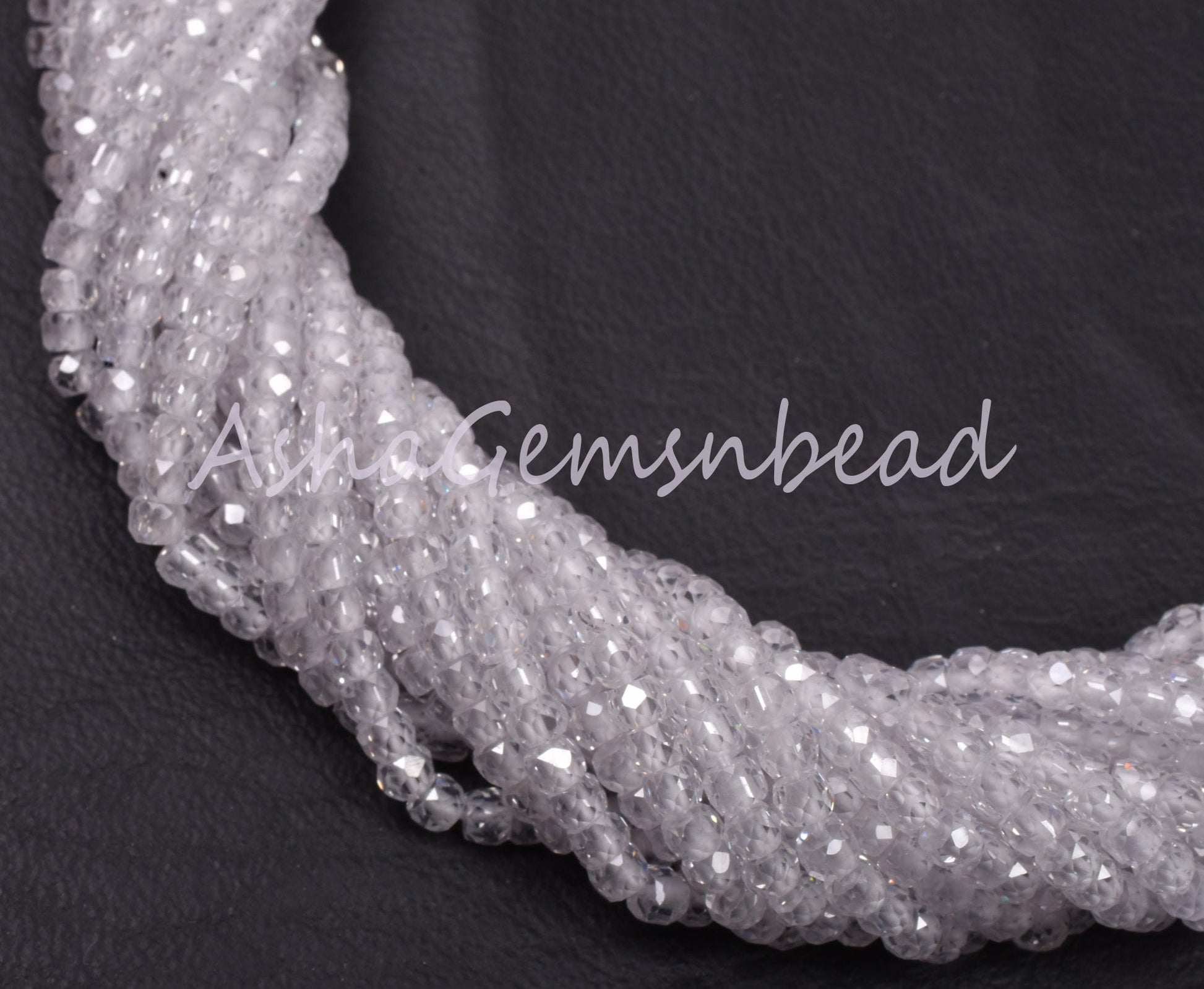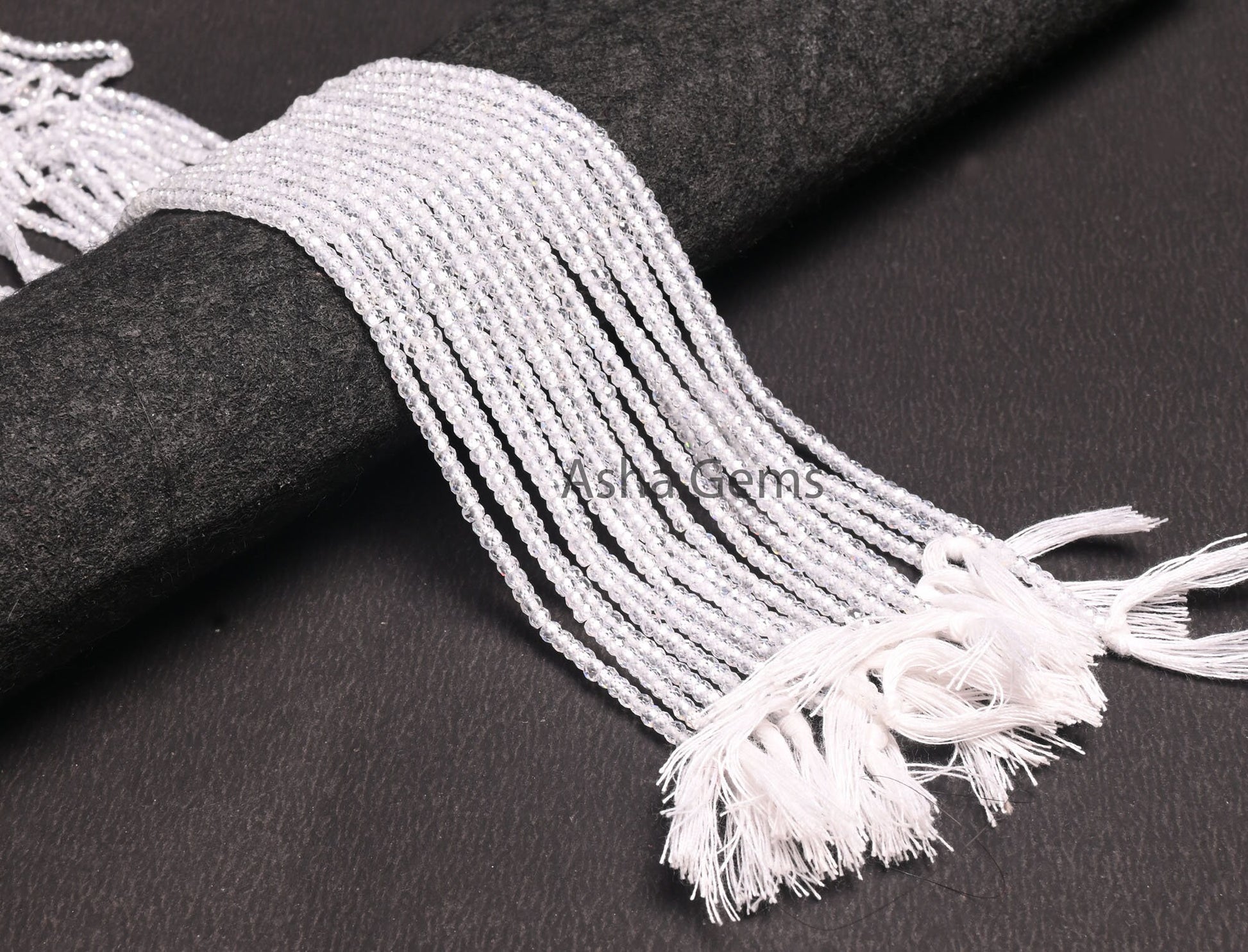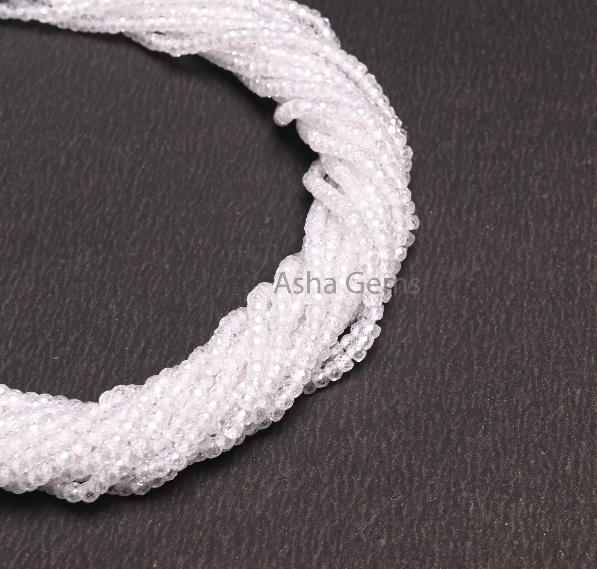 Beautiful White Zircon Faceted Rondelle Beads, 13" Strand, Cubic Zircon Micro Cut Beads, 3 mm, Clear White Zircon Machine Cut Beads, Jewelry