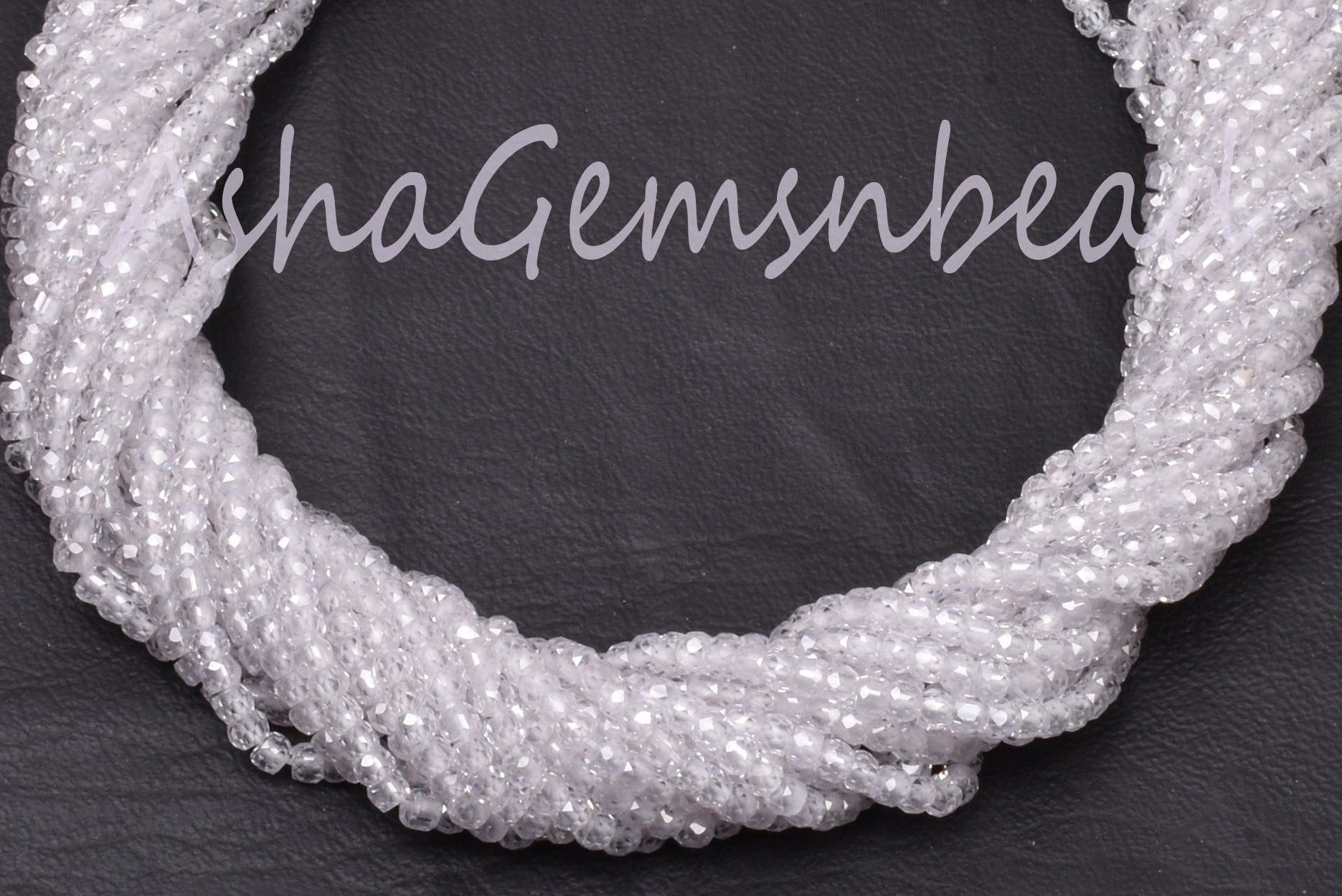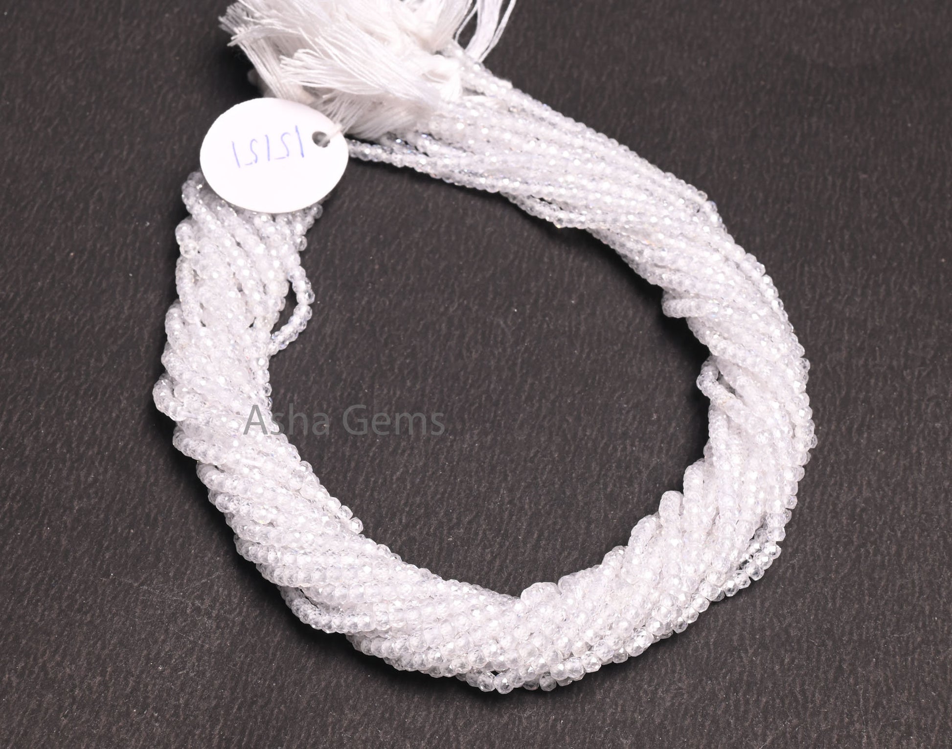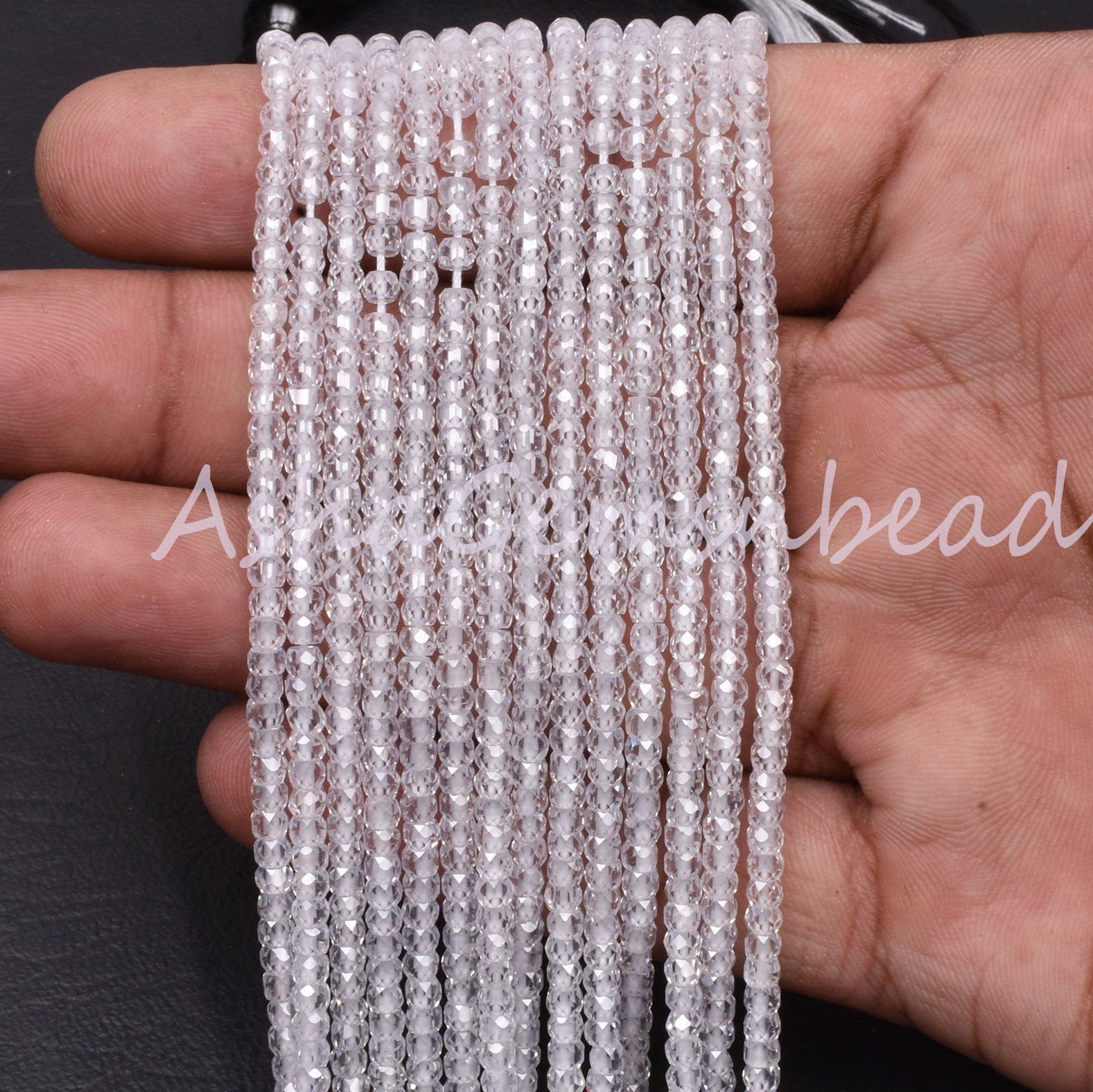 Beautiful White Zircon Faceted Rondelle Beads, 13" Strand, Cubic Zircon Micro Cut Beads, 3 mm, Clear White Zircon Machine Cut Beads, Jewelry