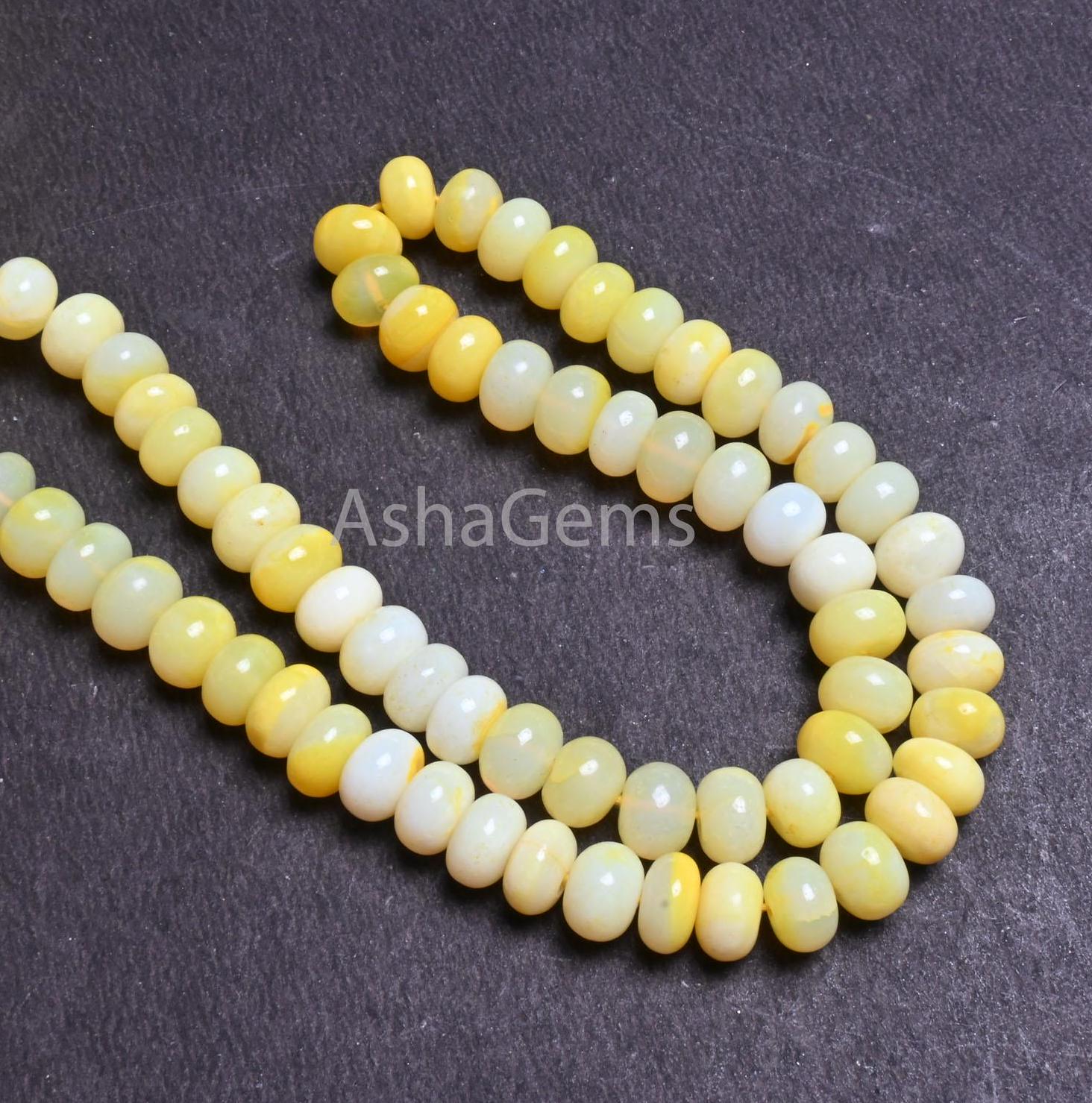 Beautiful Yellow Opal Smooth Rondelle Shape Beads,16" AAA Quality Shaded Pastel Yellow Opal Plain Handmade Gemstone Beads Jewelry Craft Sale