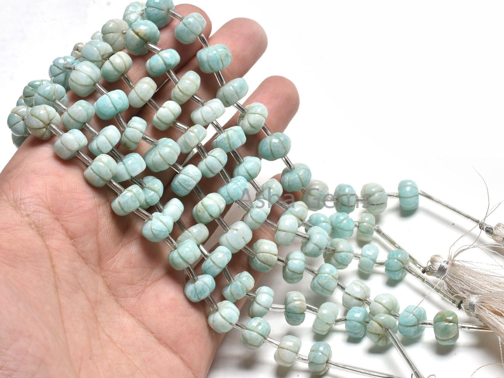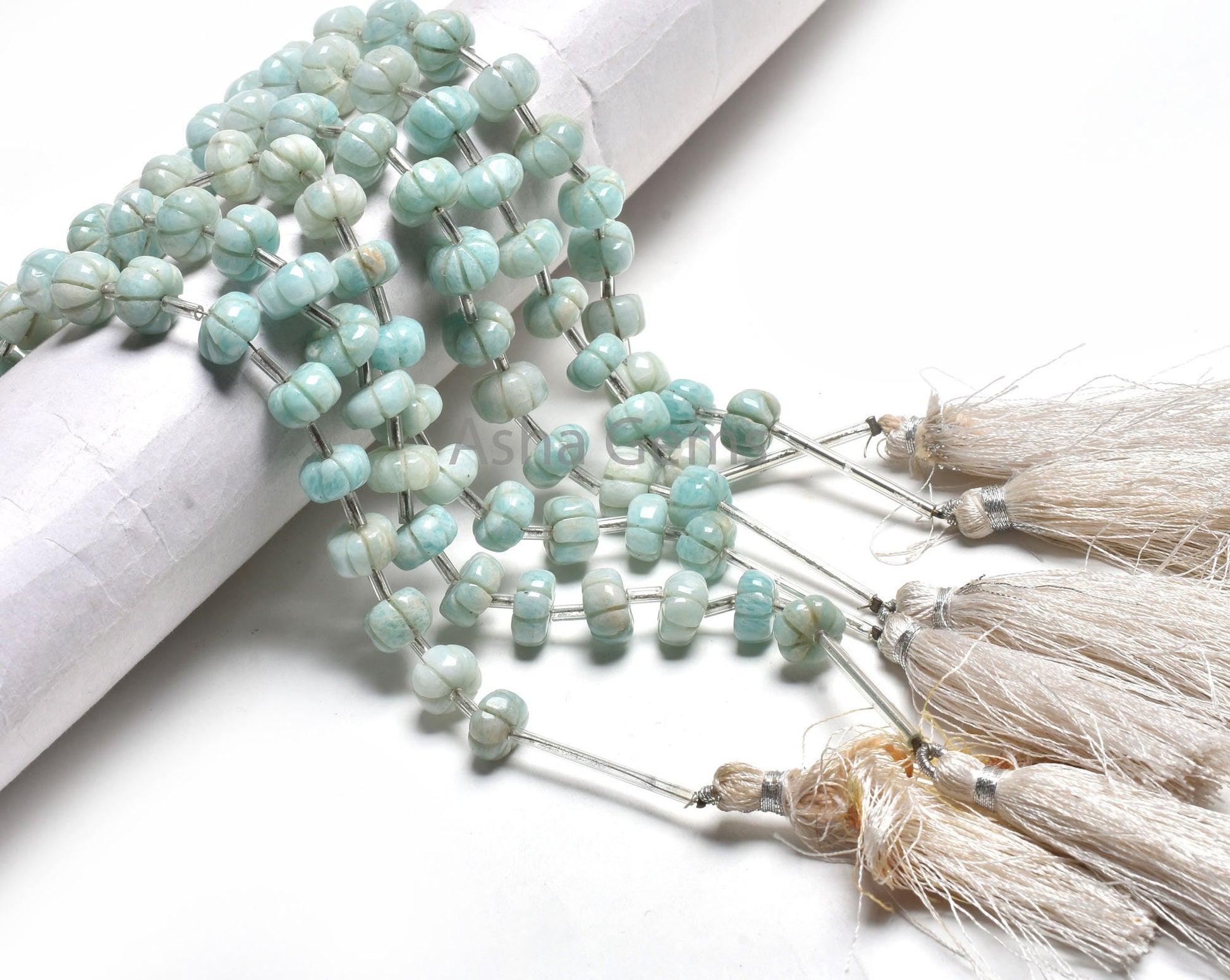 Blue Amazonite Carving watermelon Beads, Natural Amazonite Carved Pumpkin Gemstone Beads, Fine Amazonite Carve Handmade Bead Jewelry Crafts
