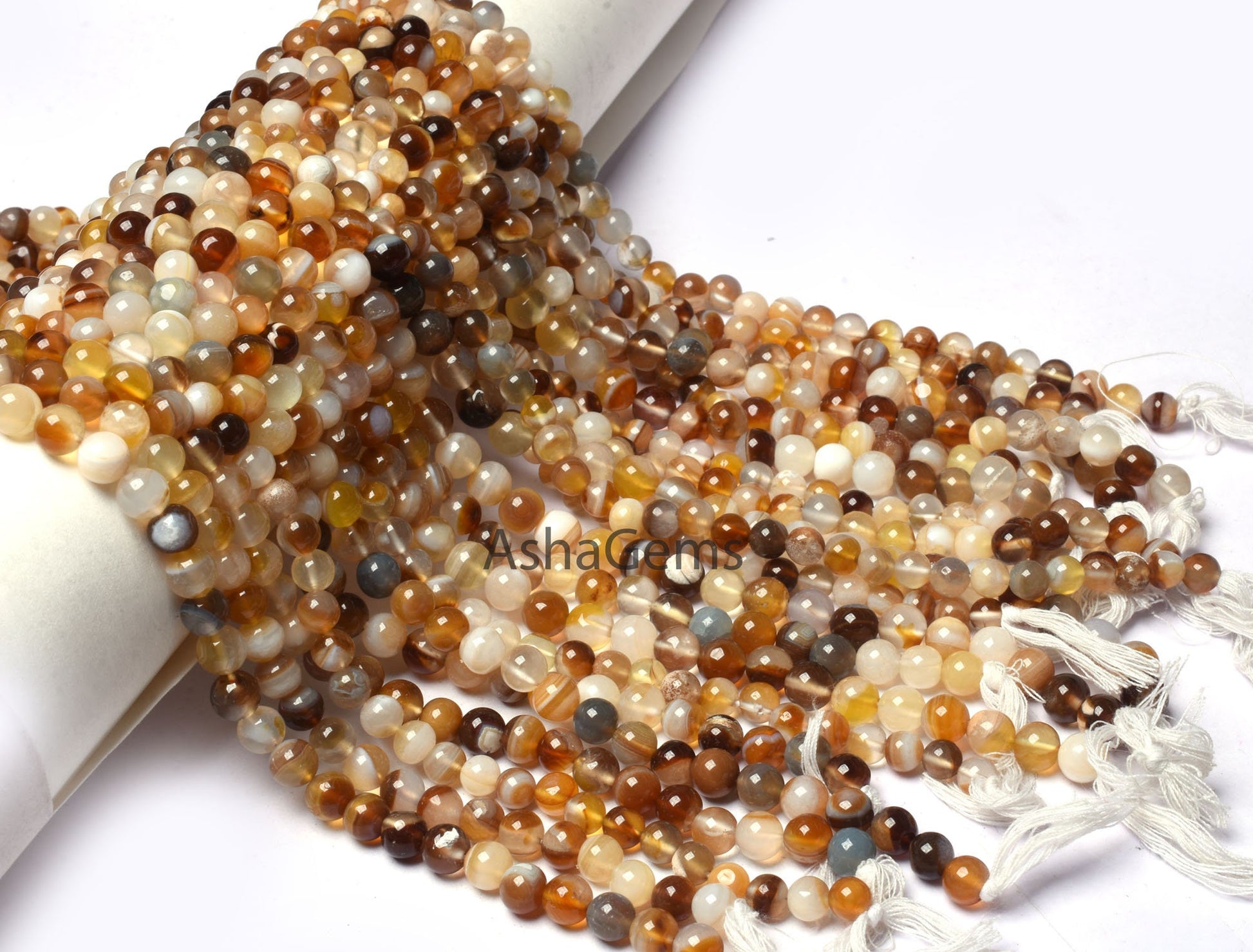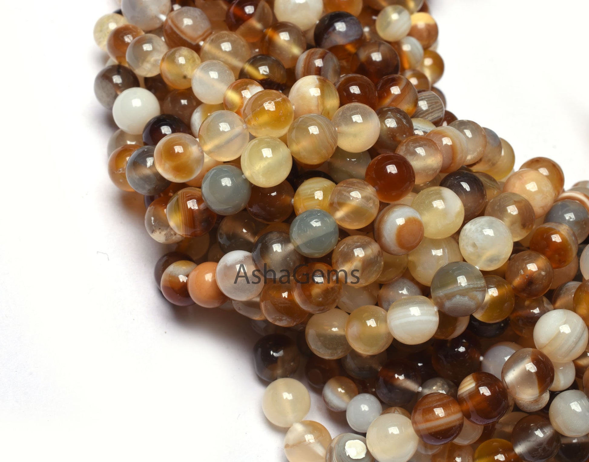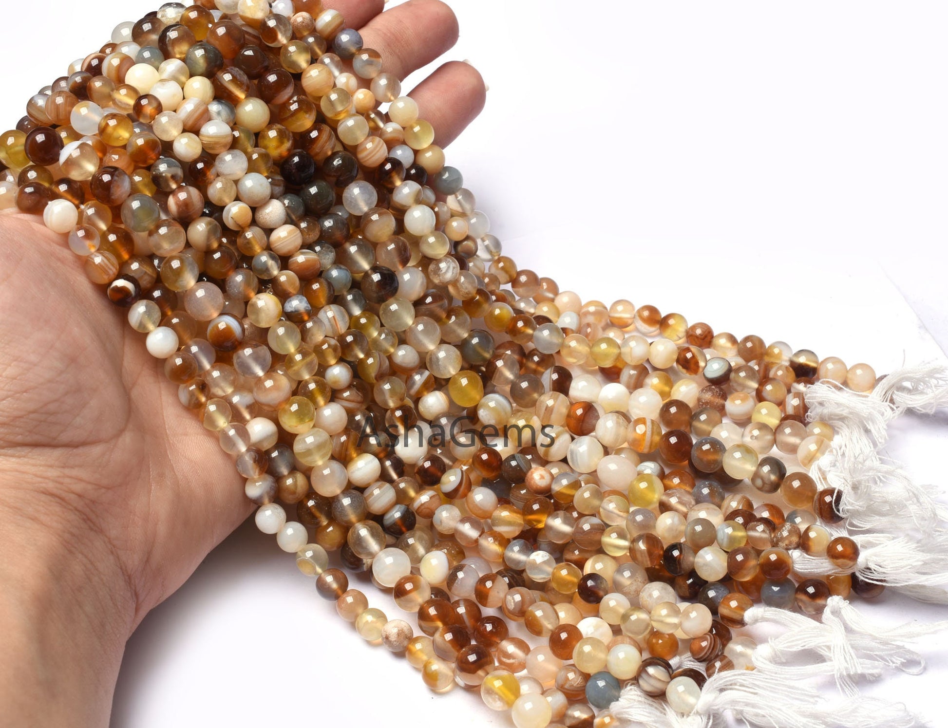 Chalcedony Smooth Round Shape Gemstone Beads,13" Strand Shaded Brown Chalcedony Plain Round Ball Beads, Chalcedony Beads Jewelry Craft SALE