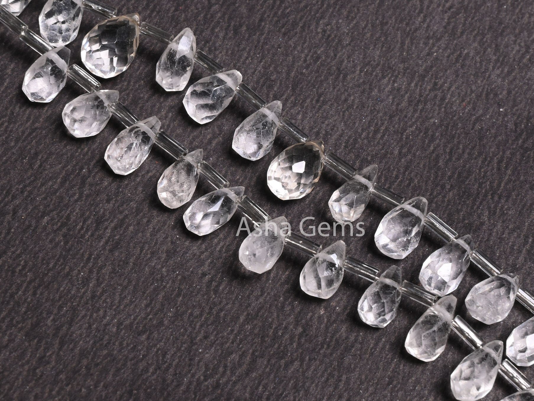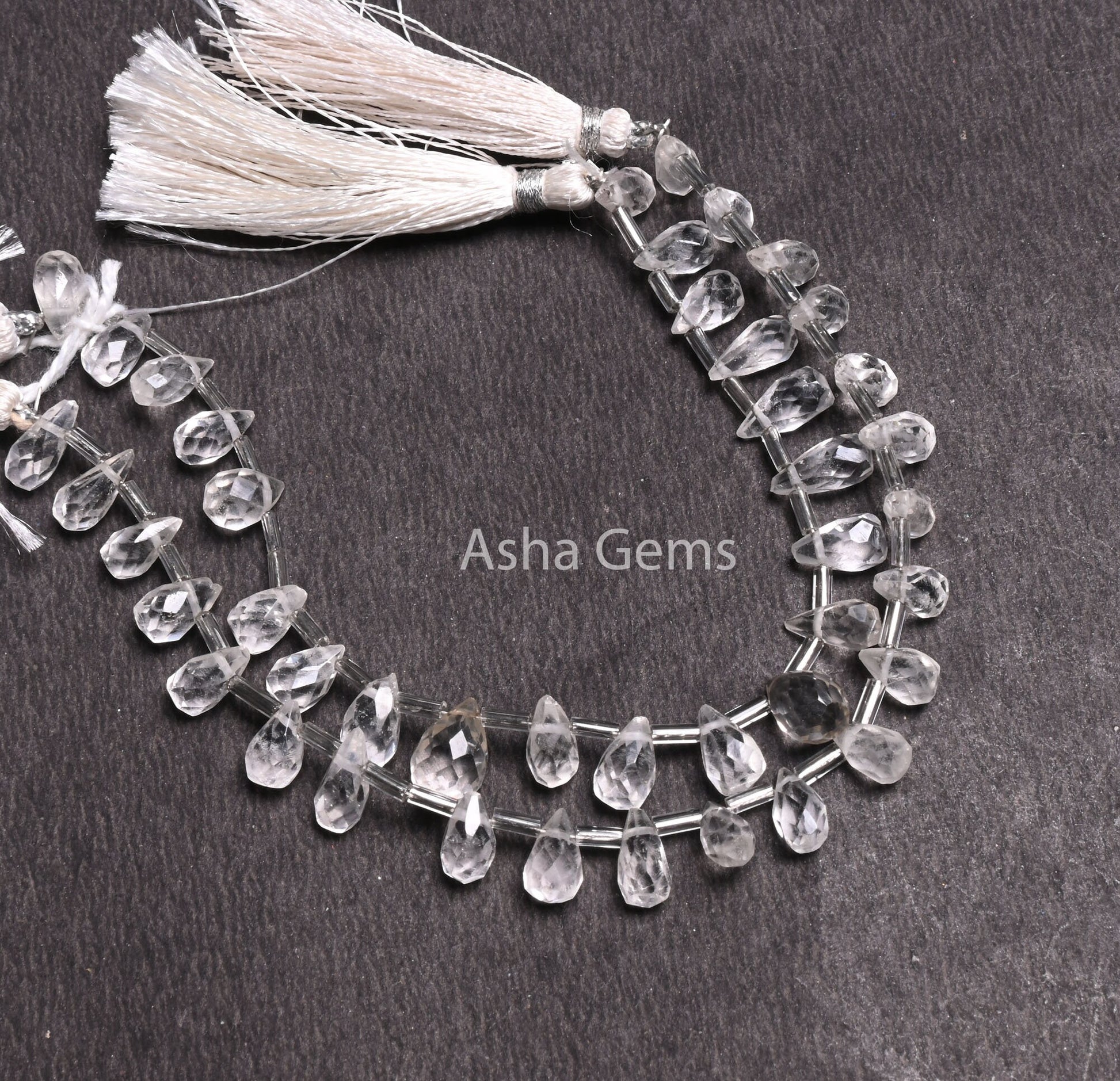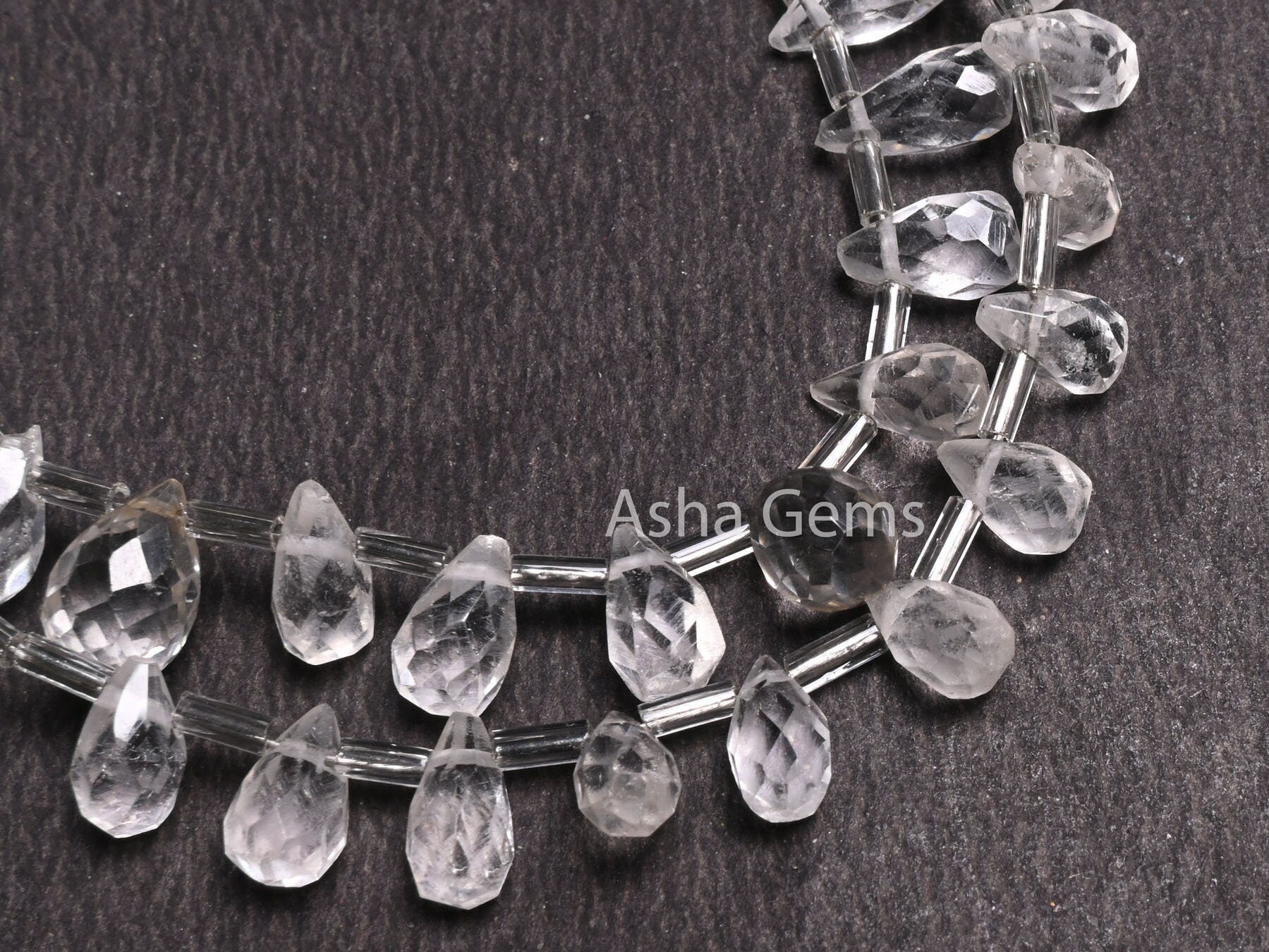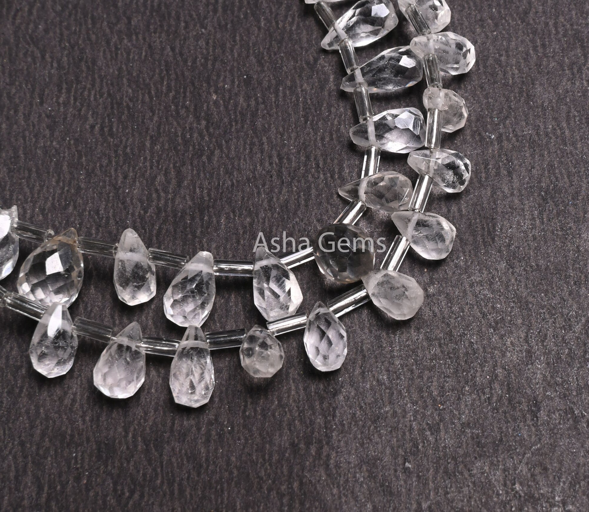 Crystal Quartz Indian Hand Cut Faceted Drop Shape Side Drill Beads, Natural White Crystal Teardrop Handmade Bead, Crystal Beads Jewelry SALE