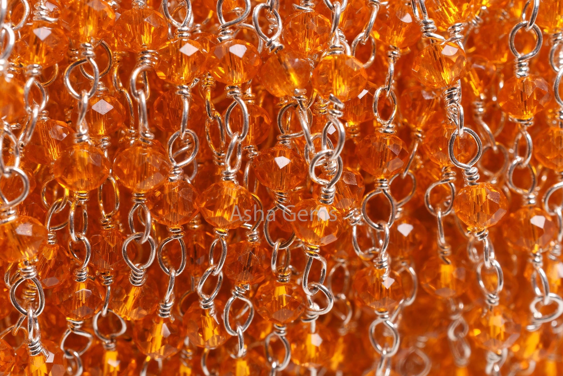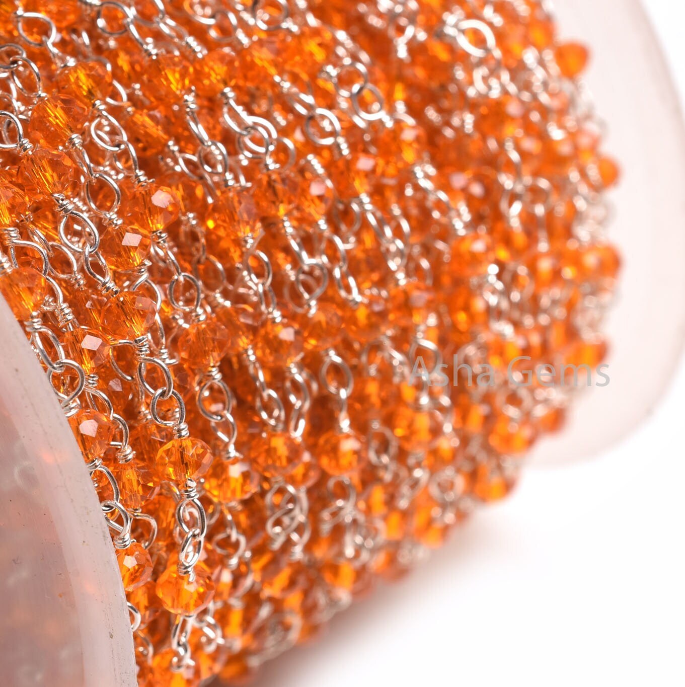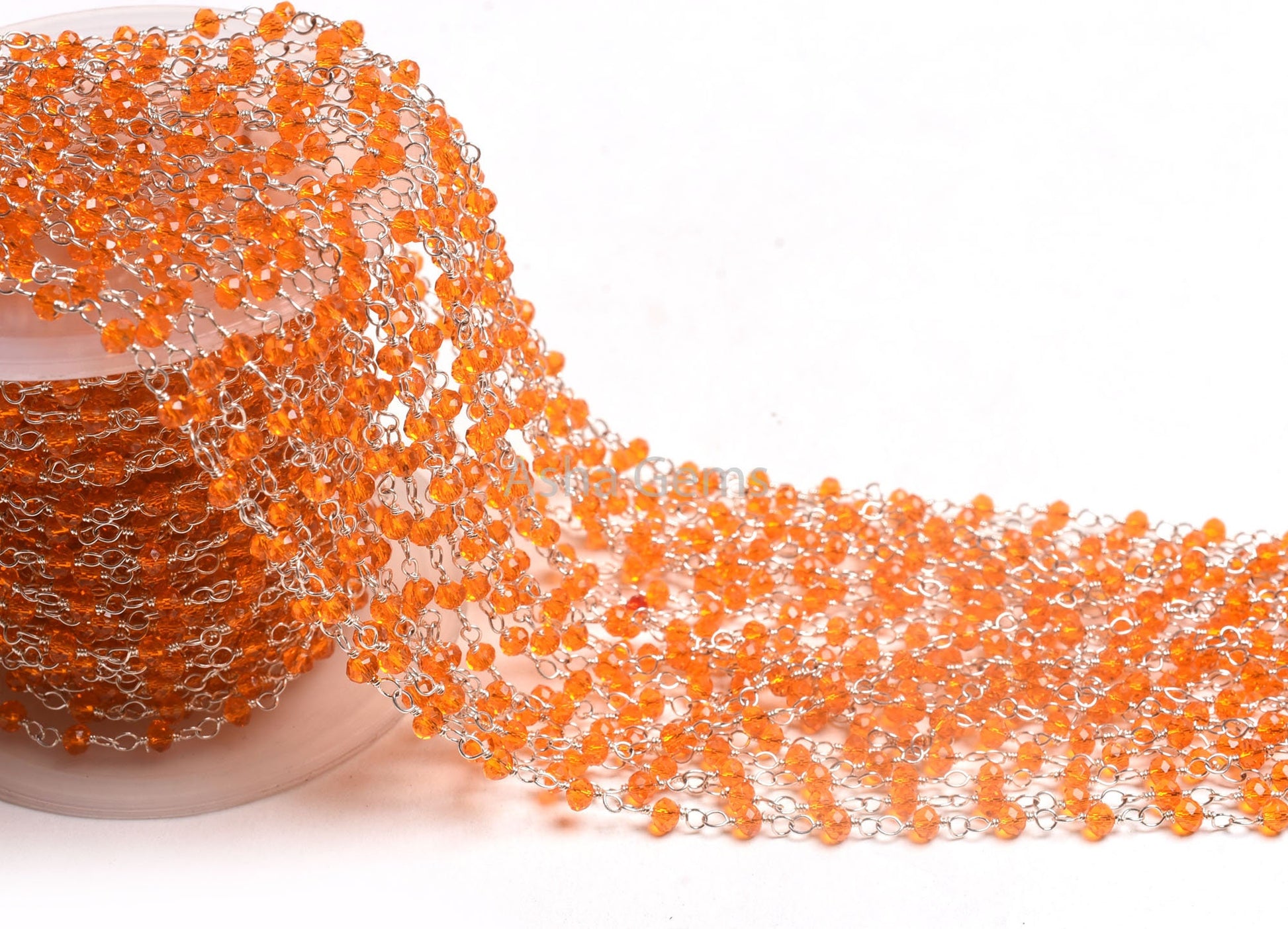 Fanta Orange Hydro Faceted Rondelle Beads Rosary Chain,3 mm Carnelian Color Hydro Silver Plated Chain Jewelry Making Crafts Wire Wrap Chains