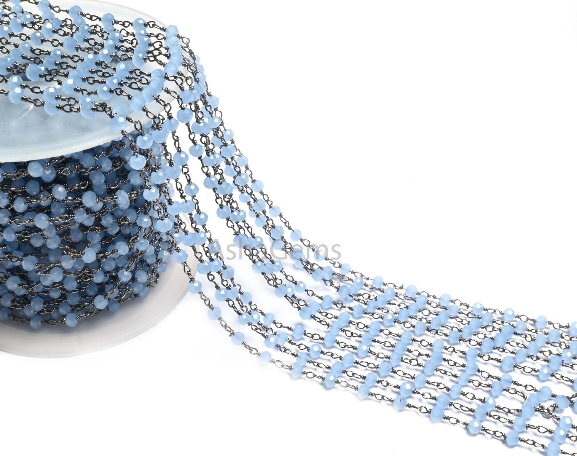 Fine Aqua Blue Chalcedony Hydro Rondelle Faceted Beads Rosary Chain,3mm Black Metal Plated Wire Wrap Beaded Gunmetal Chains Jewelry Necklace