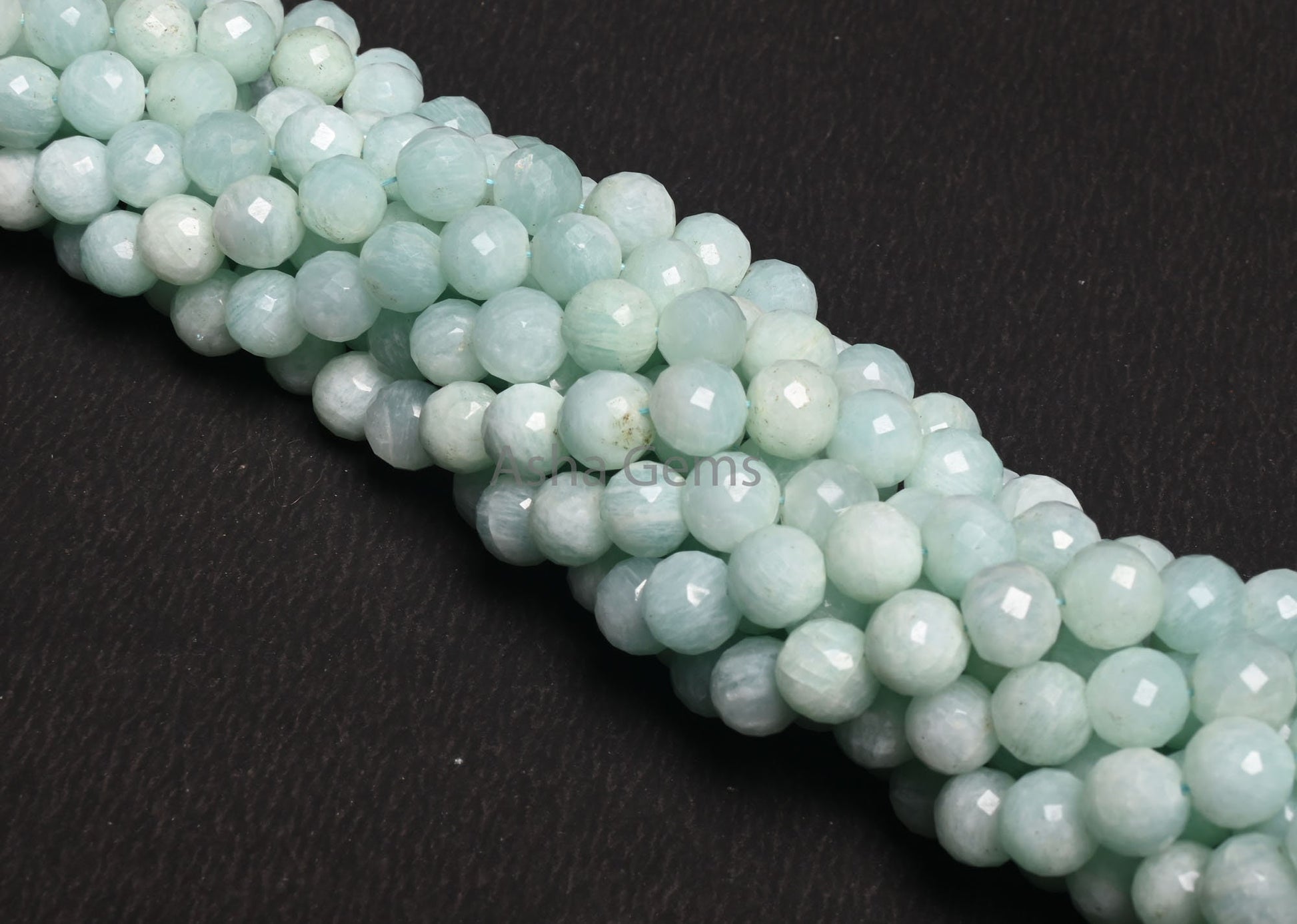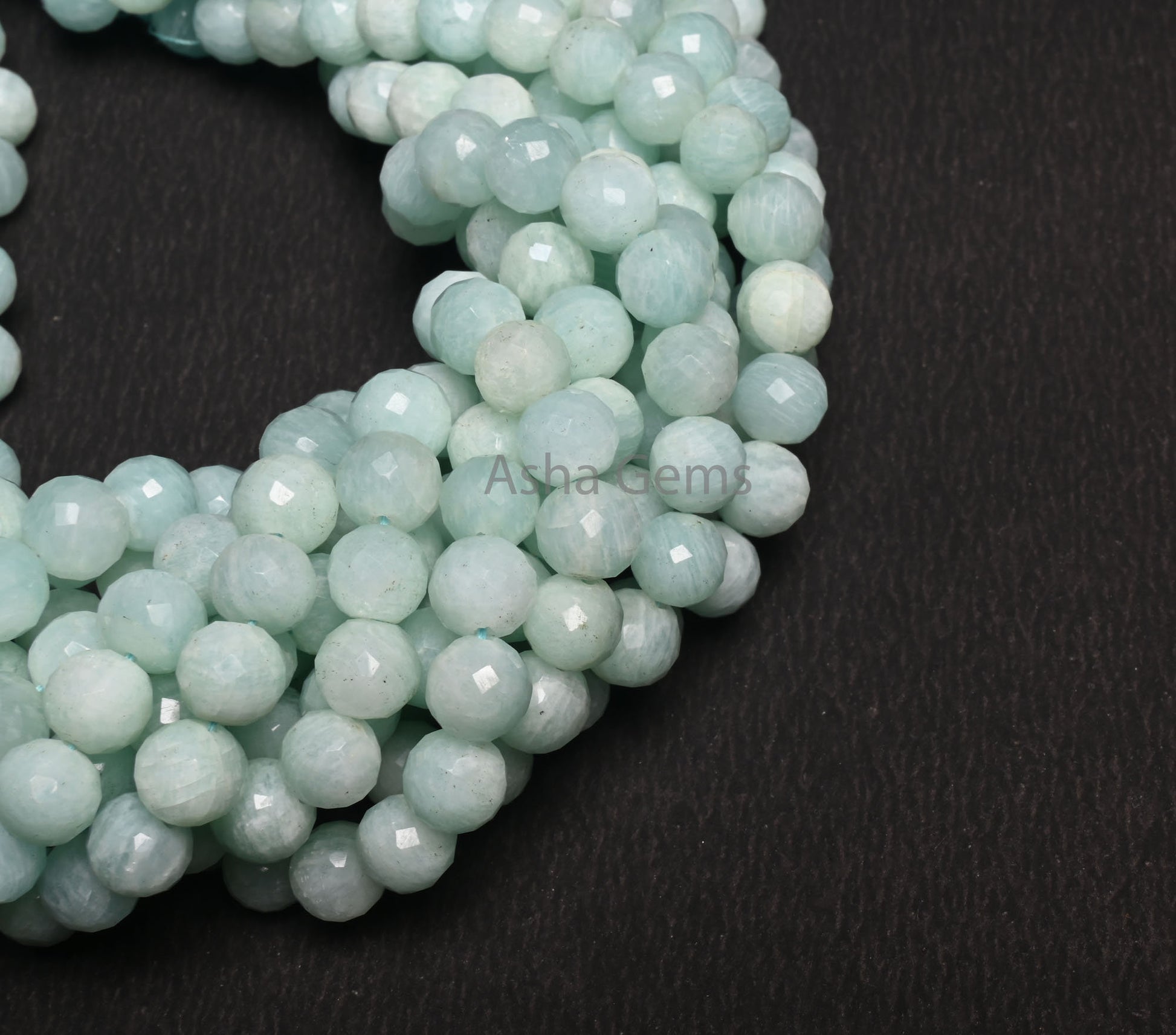 Fine Blue Amazonite Faceted Round Ball Gemstone Beads,13" Natural Amazonite Beads, Amazonite Indian Cut Round Shape Beads Jewelry Handicraft
