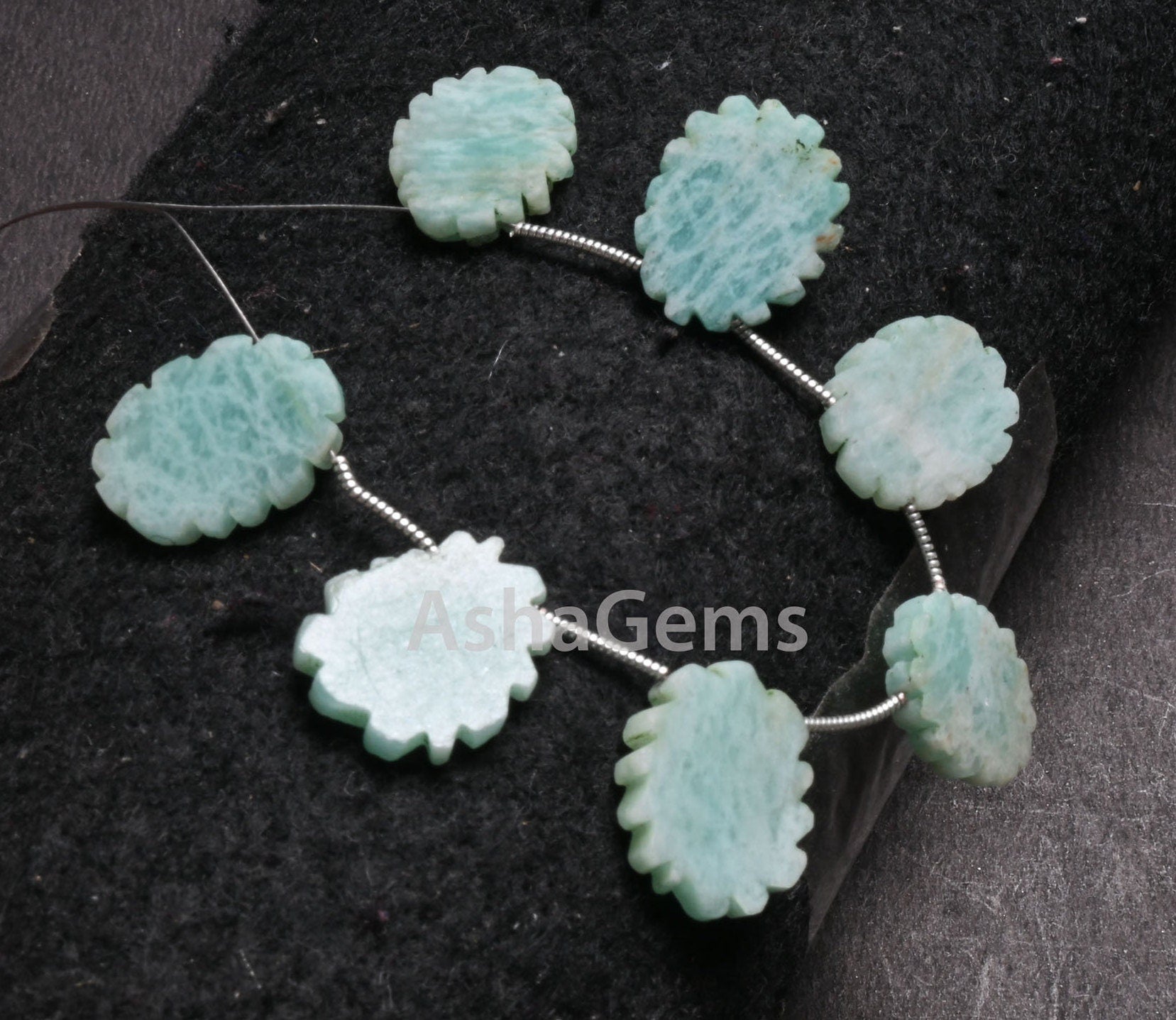 Fine Blue Amazonite Fancy Flat Rough Slice Carved Handmade Beads, Natural Amazonite Uneven Raw Polish Slice Gemstone Carving Beads Jewelry