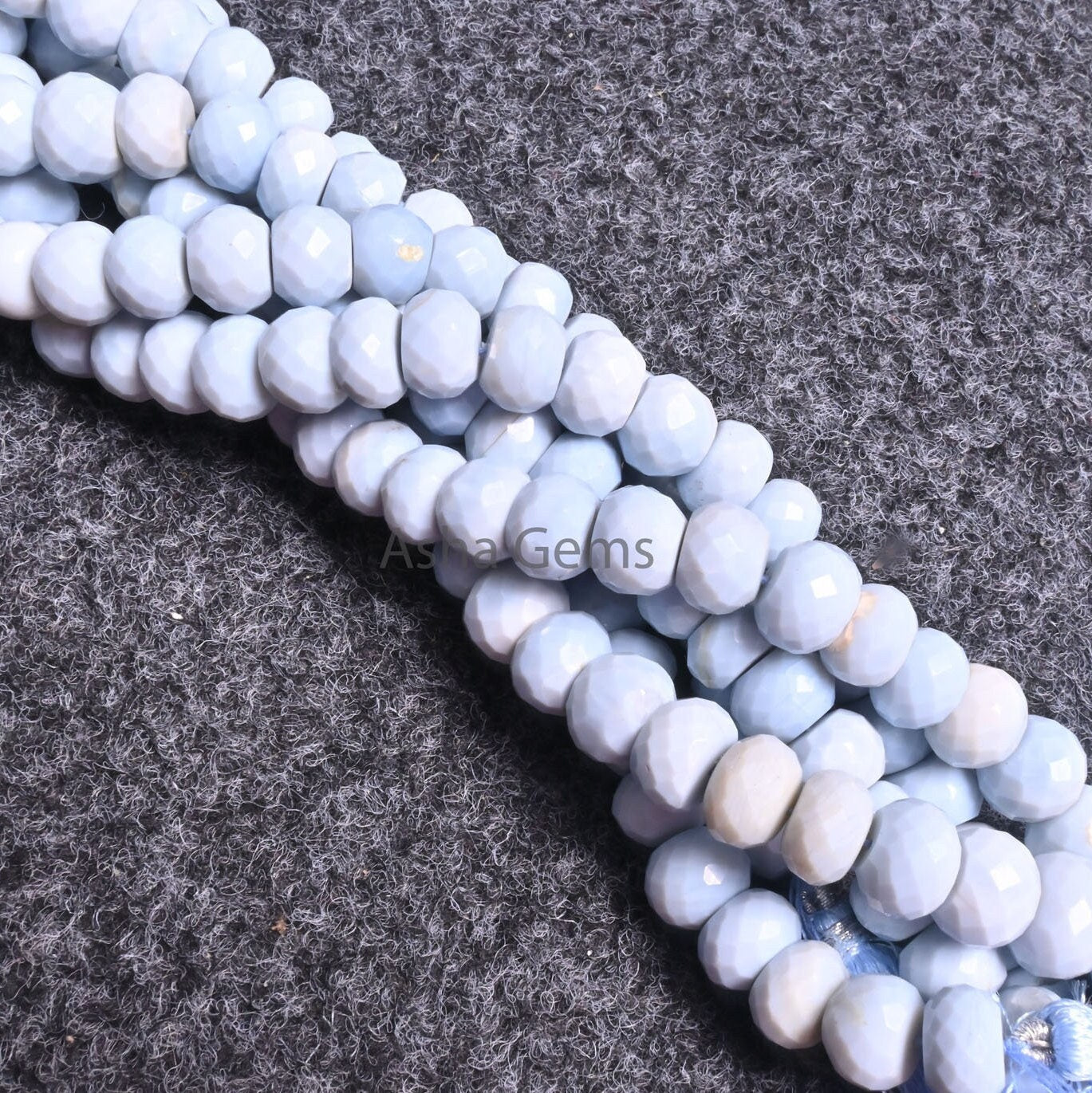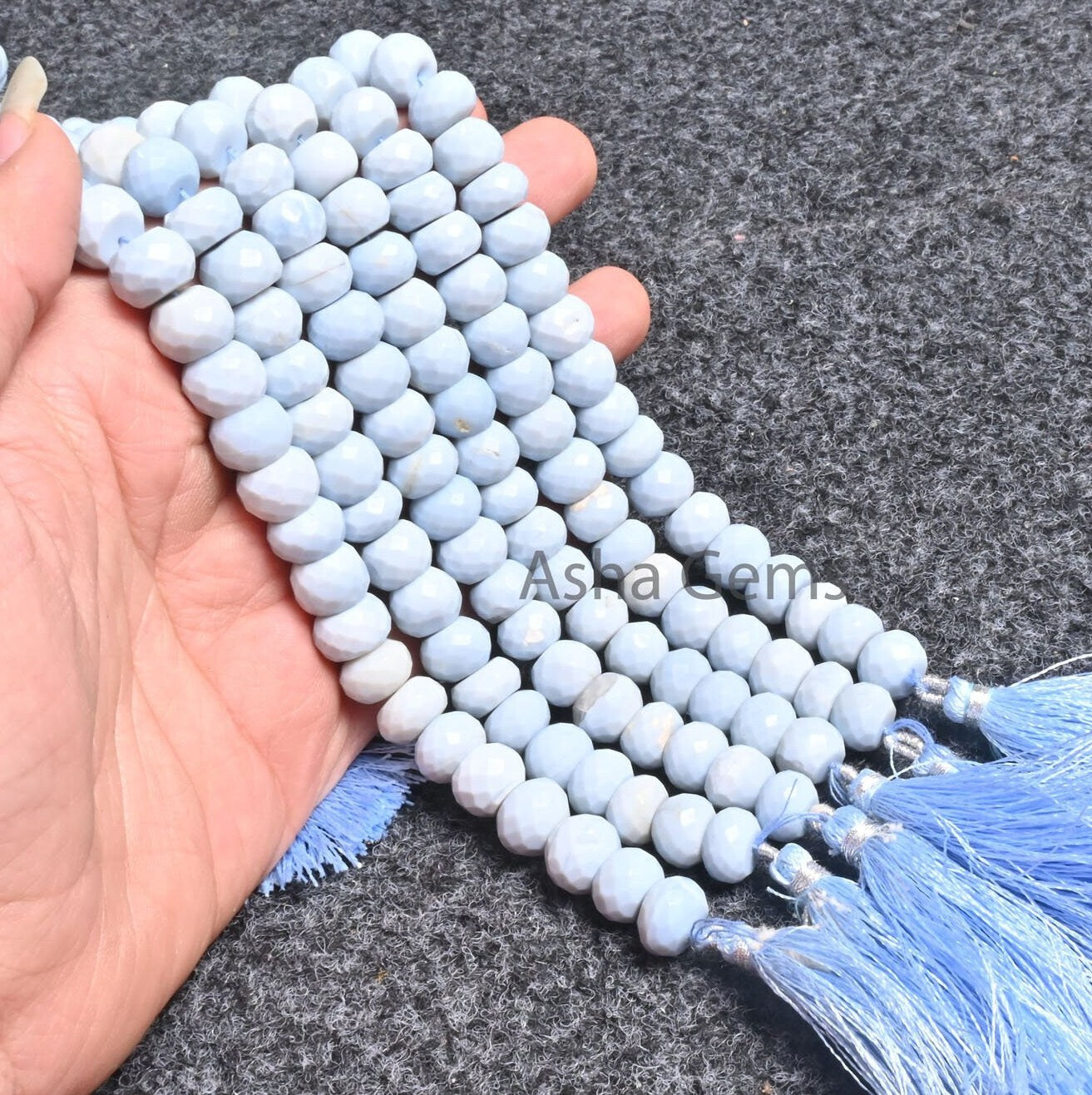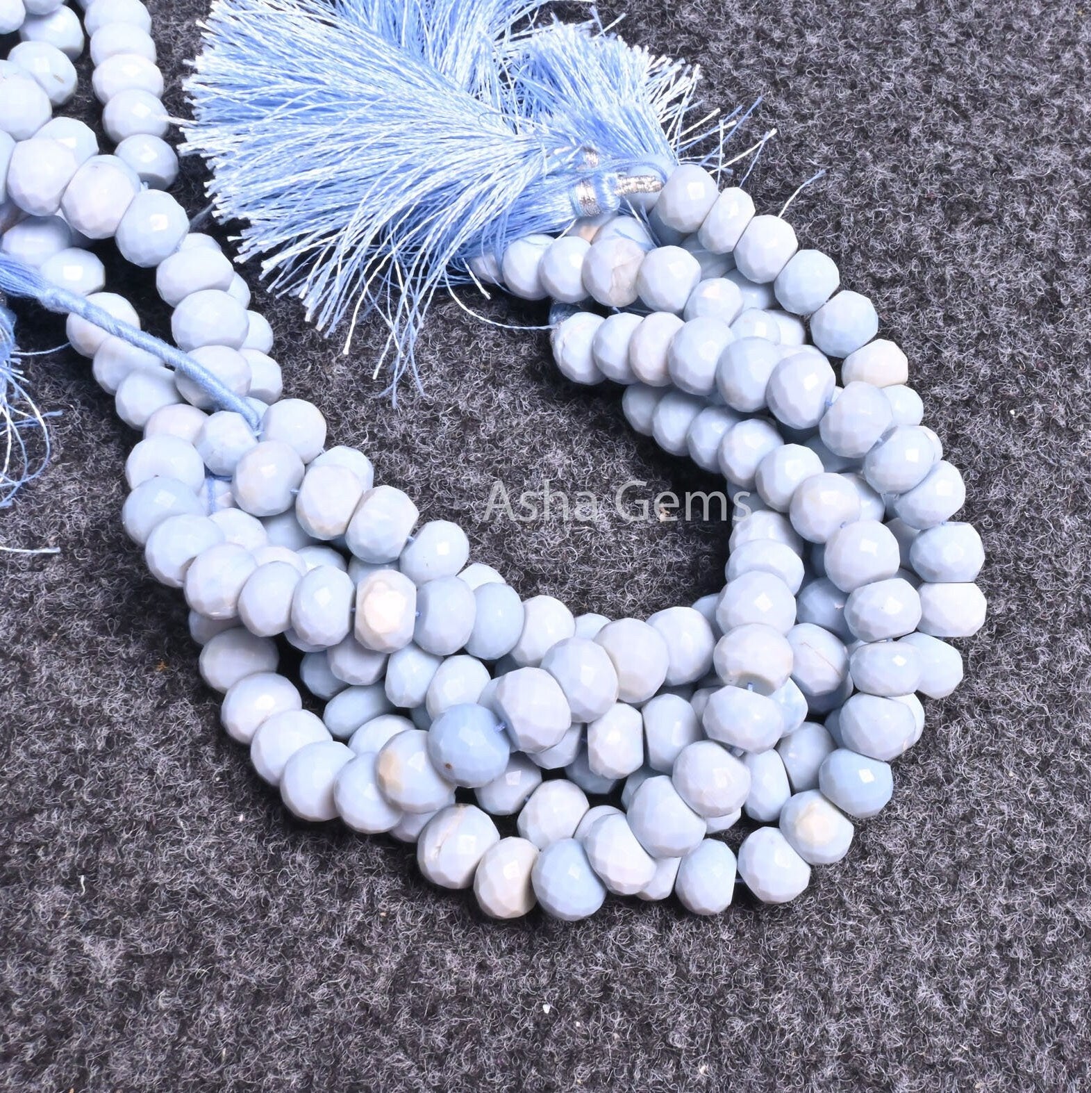 Fine Blue Oregon Opal Faceted Rondelle Gemstone Beads,8" Strand Light Blue Opal Indian Machine Cut Beads, Opal Beads Jewelry Handicraft SALE