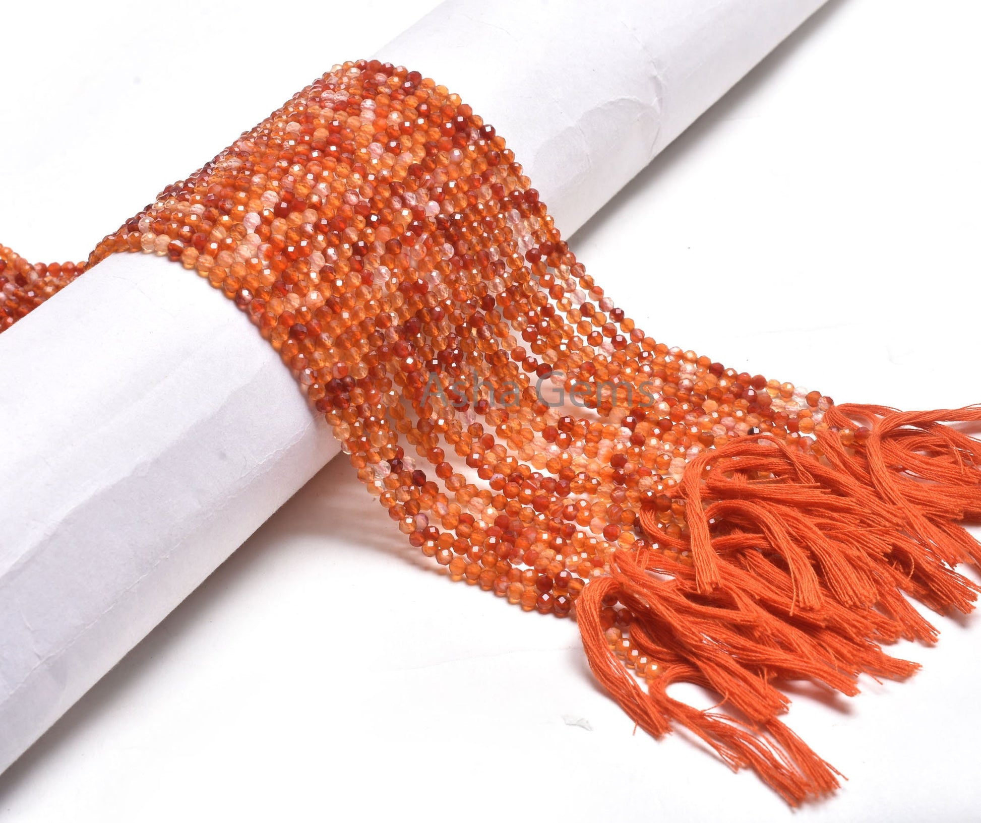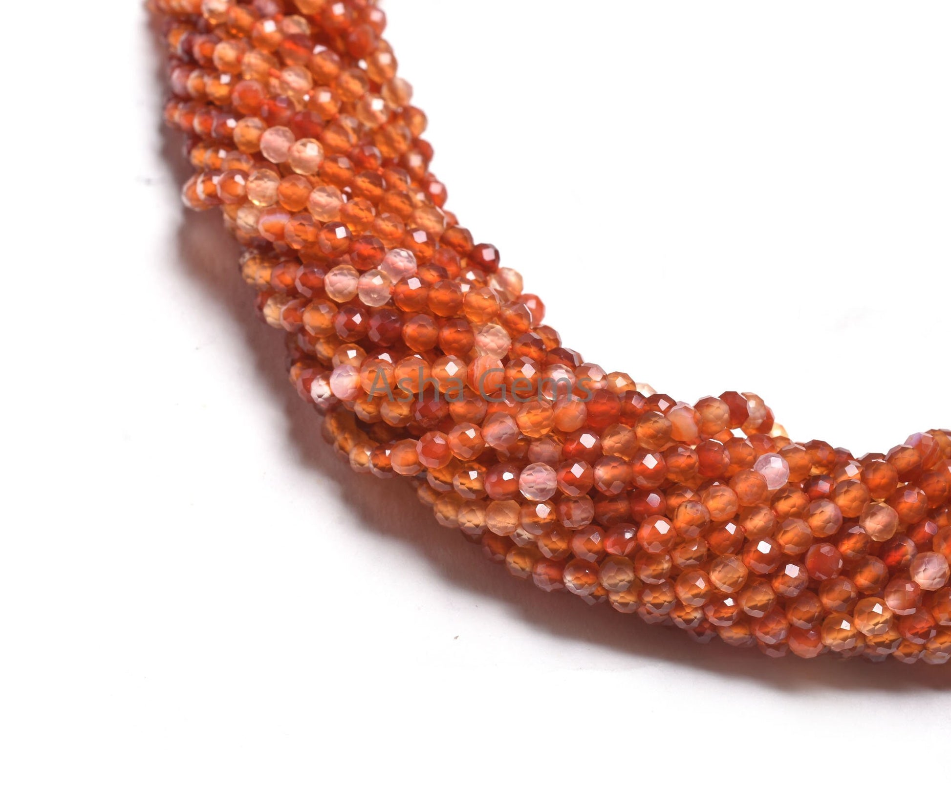 Fine Carnelian Micro Cut Round Shape Faceted Gemstone Beads,3.2 mm Shaded Red Orange Carnelian Machine Cut Bead Carnelian Bead Jewelry SALE