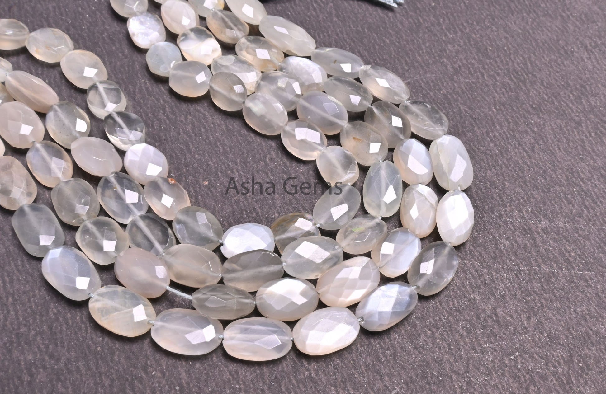Fine Grey Moonstone faceted Oval Gemstone Beads,9" Strand Natural Moonstone Oval Briolette Straight Drill Beads, grey Moonstone Bead Jewelry