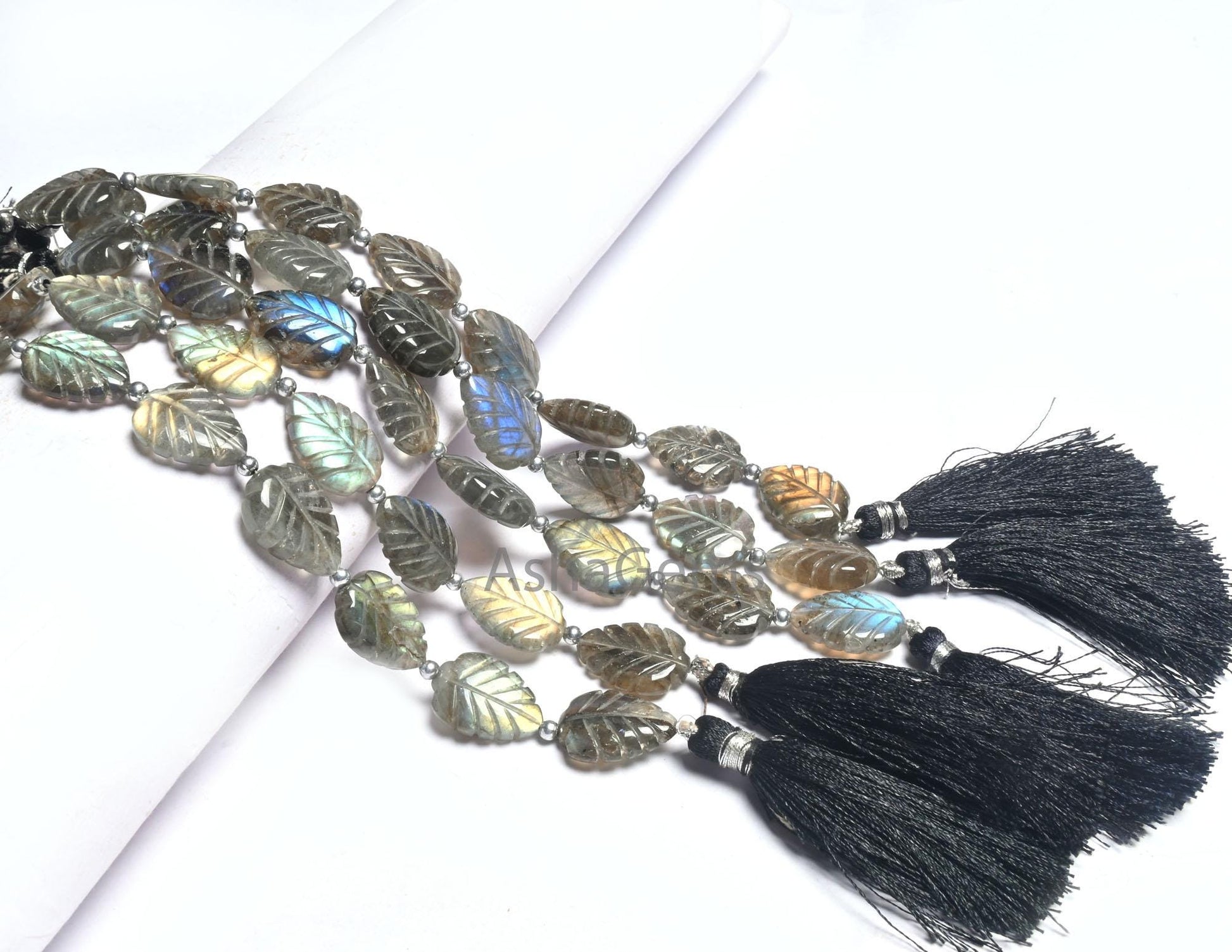 Fine Labradorite Fancy carving Leaf Shape Straight Drill Beads, Natural Flash labradorite handmade Carved Pear Gemstone Beads Jewelry Crafts