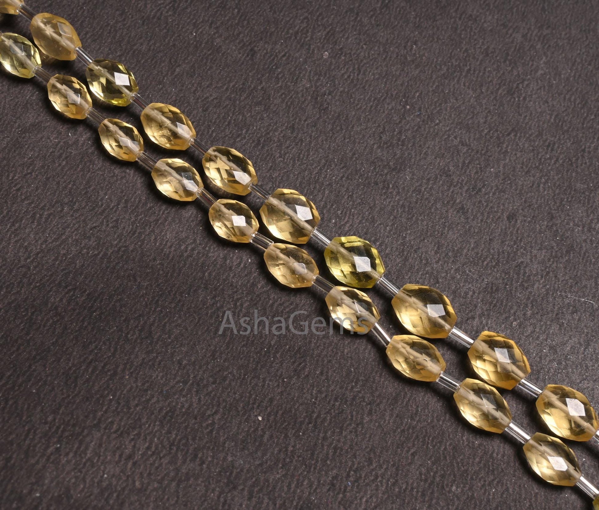 Fine Lemon Quartz Color Hydro Faceted Oval Checker cut Beads,10" Yellow Lemon Hydro Oval Briolette Straight Drill Beads Jewelry making Craft