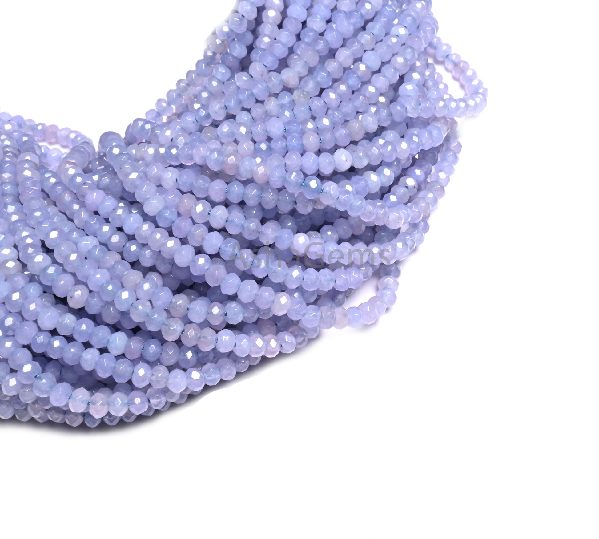 Fine Light Lavender Jade Quartz Faceted Rondelle Gemstone Beads,4.5mm Blue lace Agate Color Jade Quartz Machine Cut Beads Jewelry Craft SALE