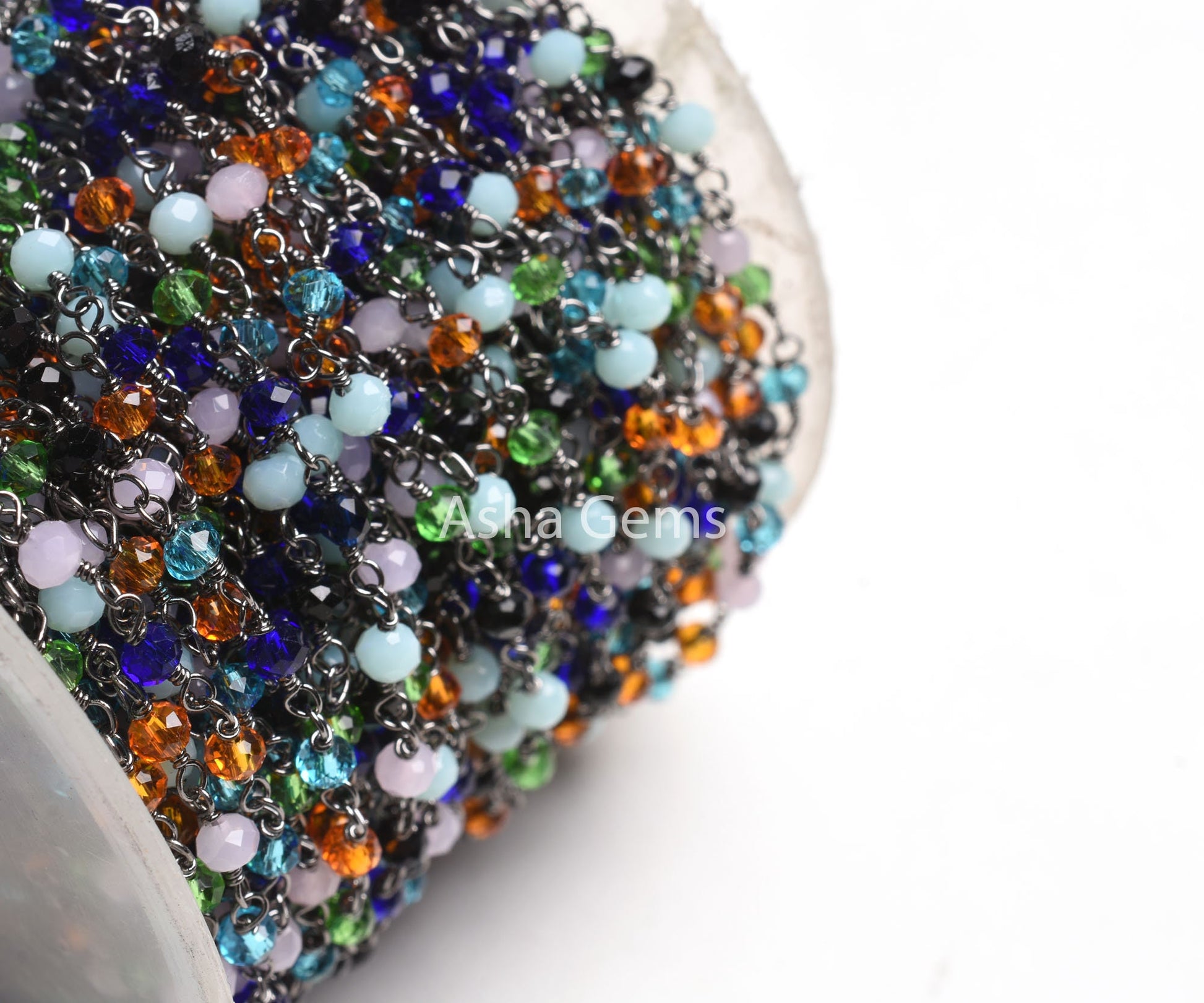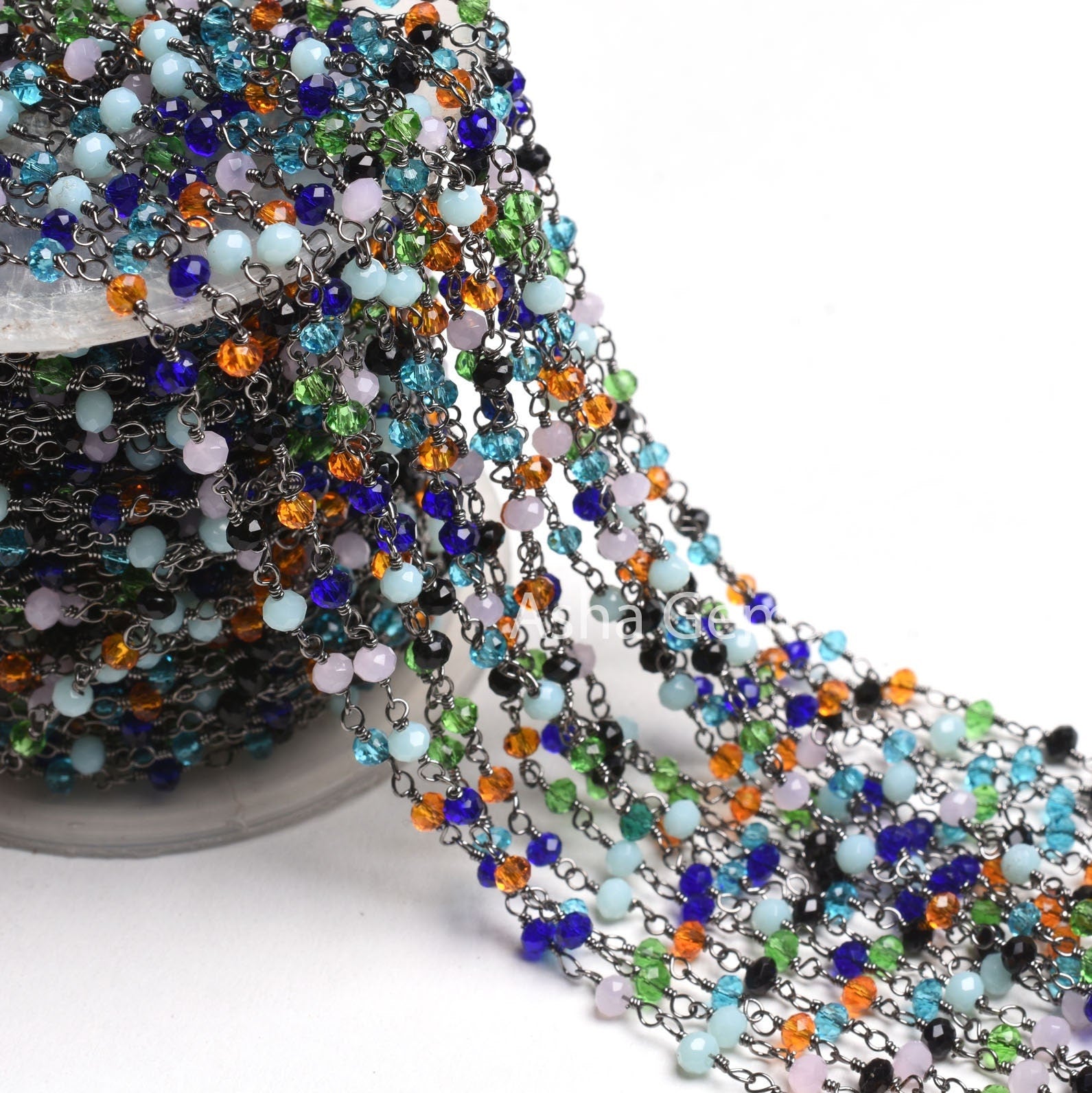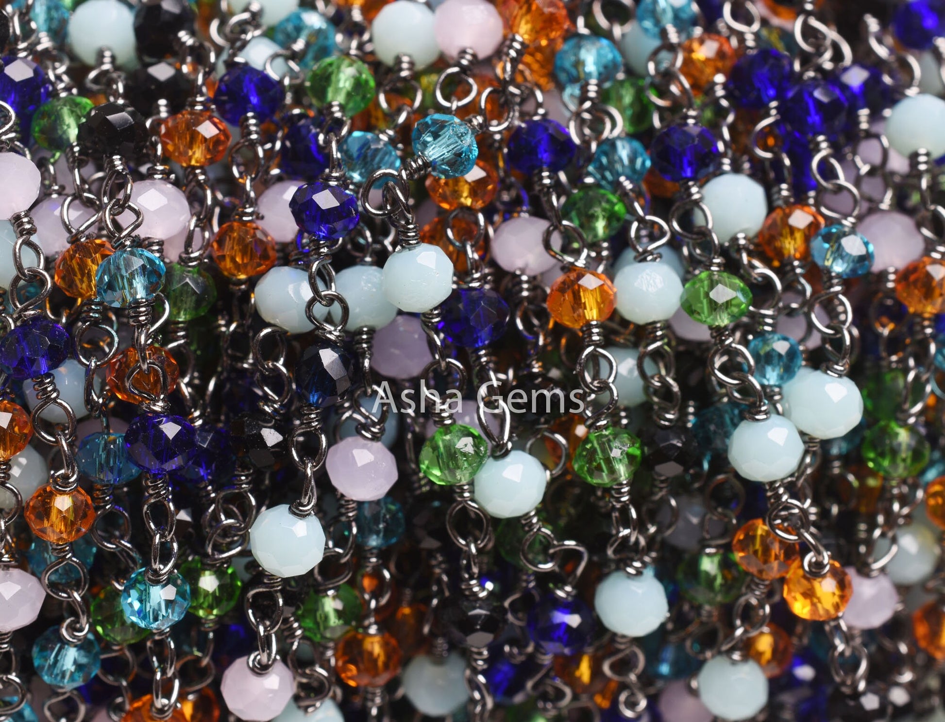 Fine Multi Disco Color Hydro Rondelle Faceted Beads Rosary Chain Black Plated Gunmetal Wire Beaded Handmade Chain Rosary Jewelry Making SALE