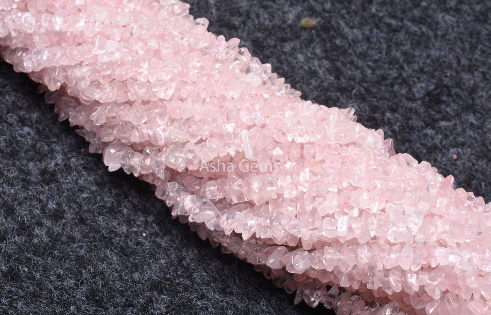 Fine Natural Rose Quartz Uncut Chips Raw Gemstone Beads,34"Strand pink Rose Quartz Smooth tiny Nugget Rough Beads, Rose Quartz Bead Jewelry