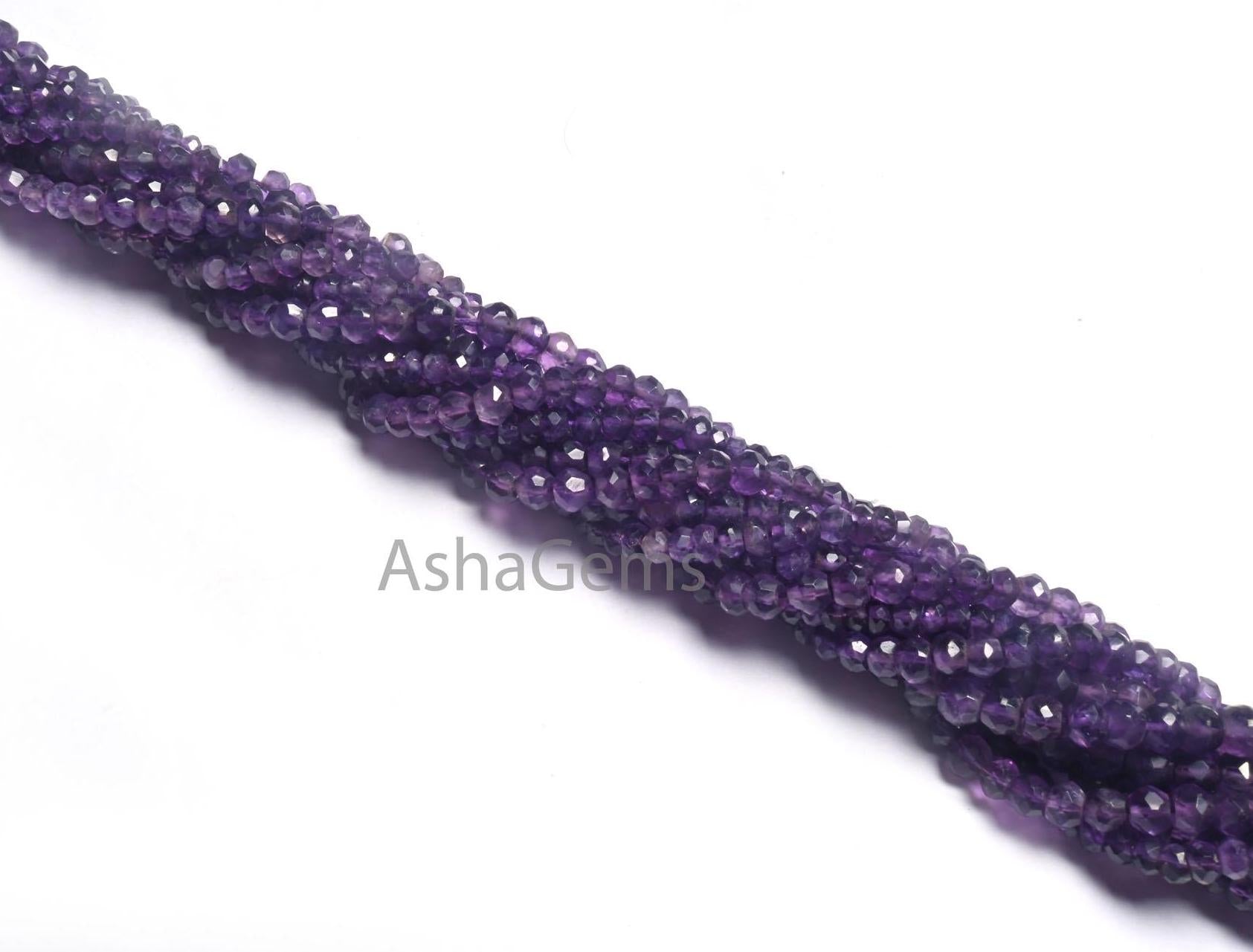 Fine Quality African Amethyst Faceted Rondelle Shape Beads,13"Natural Purple Amethyst Indian Machine Cut Gemstone Amethyst Bead Jewelry SALE