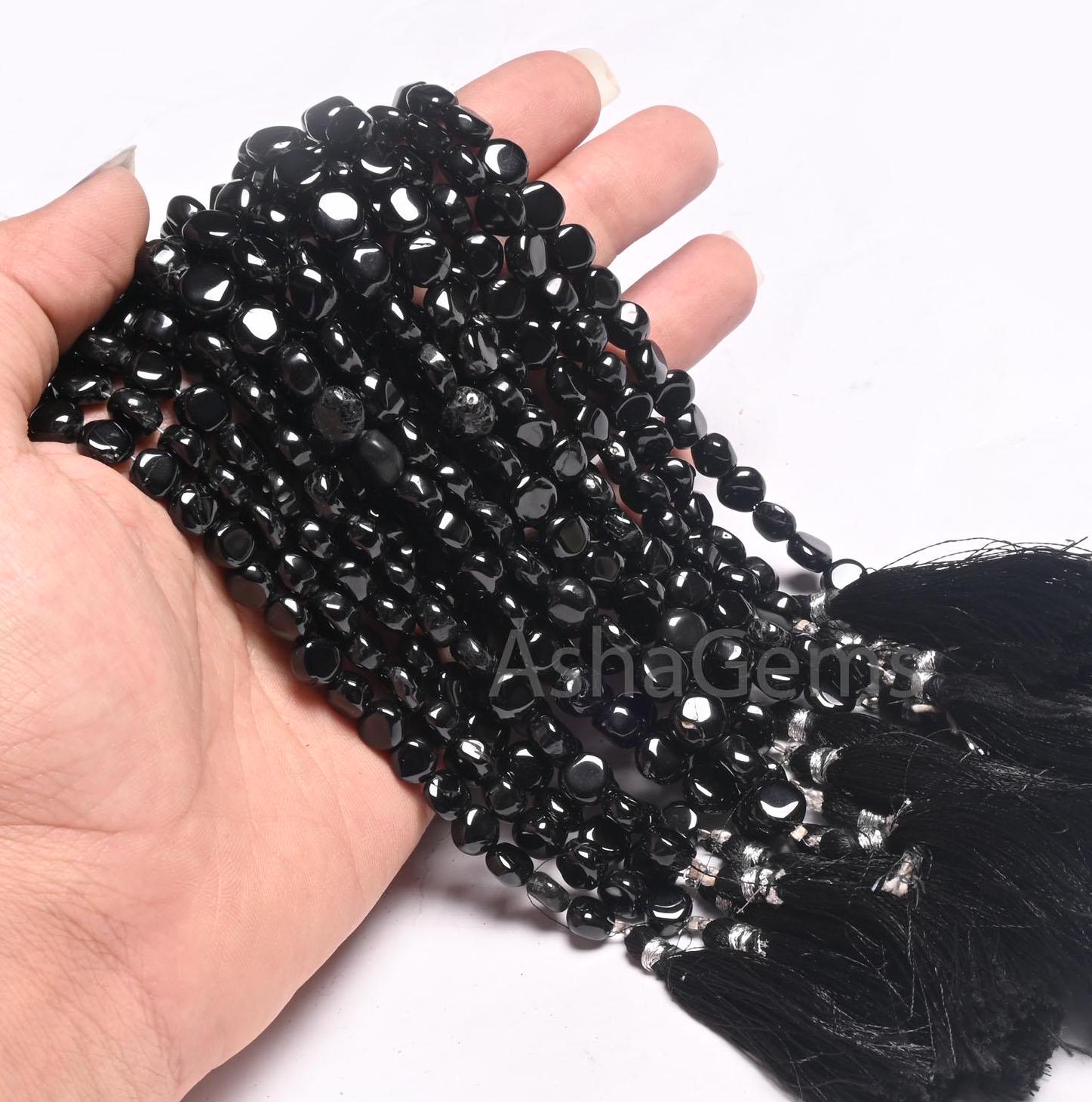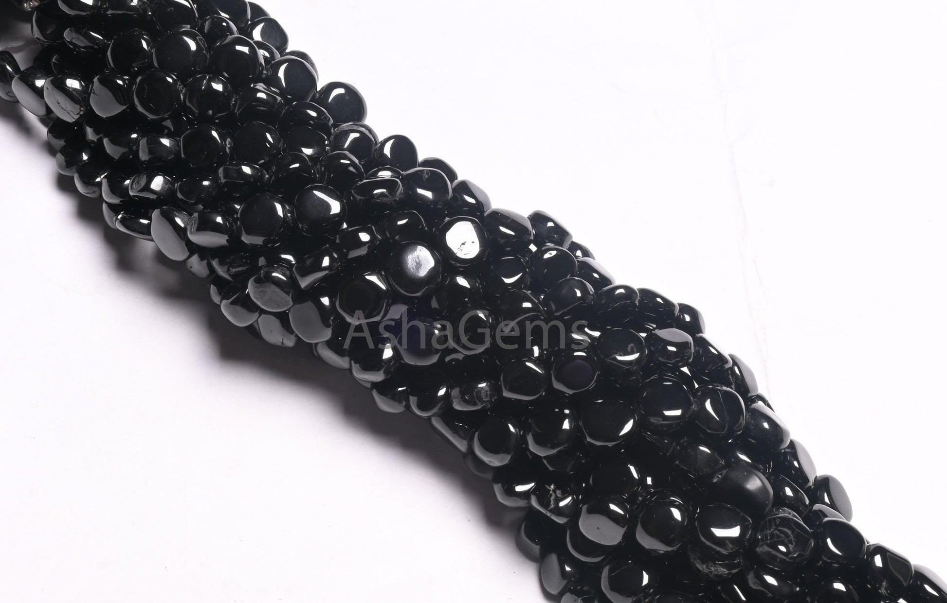 Fine Quality Black Spinal Smooth Coin Shape Gemstone Loose Beads,8" Natural Spinel Plain Handmade Coin Bead, Coal Black Spinel Beads Jewelry