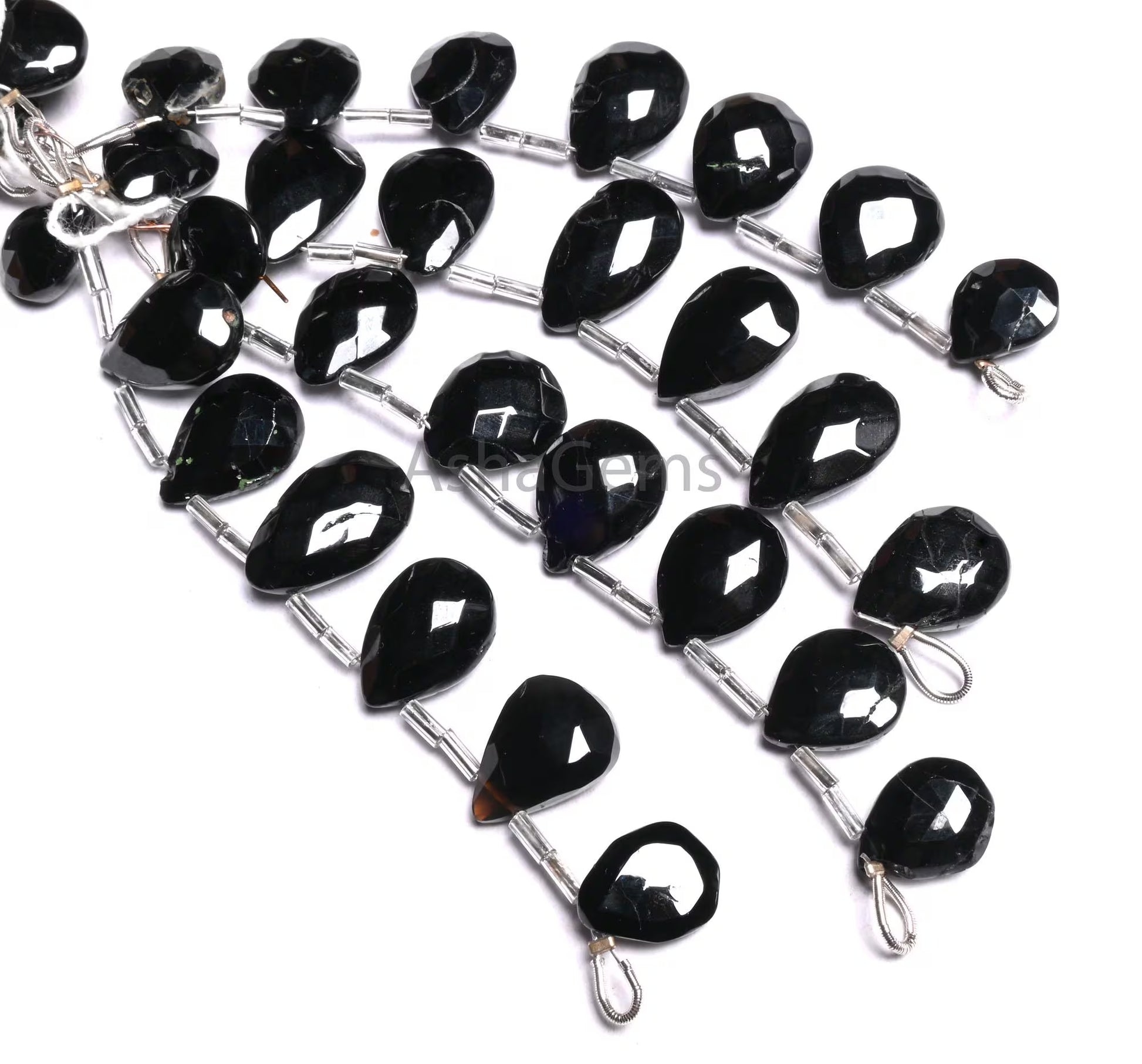 Fine Quality Black Spinel Faceted Pears Shape Gemstone Beads, Natural Coal Black Spinal Teardrop Briolette Indian machine Cut Beads Jewelry (AG 18905)