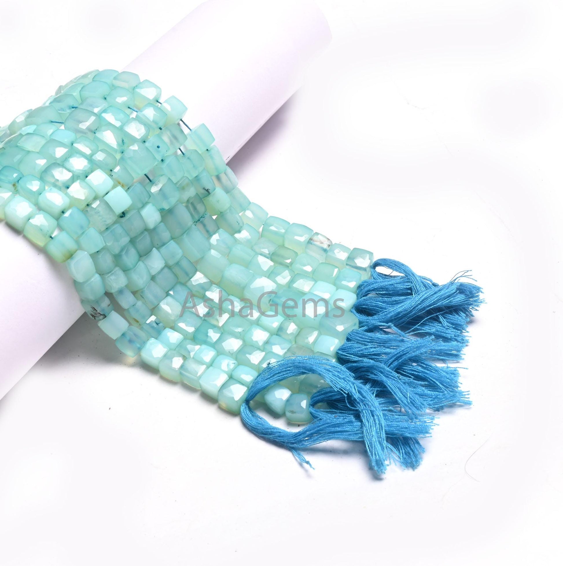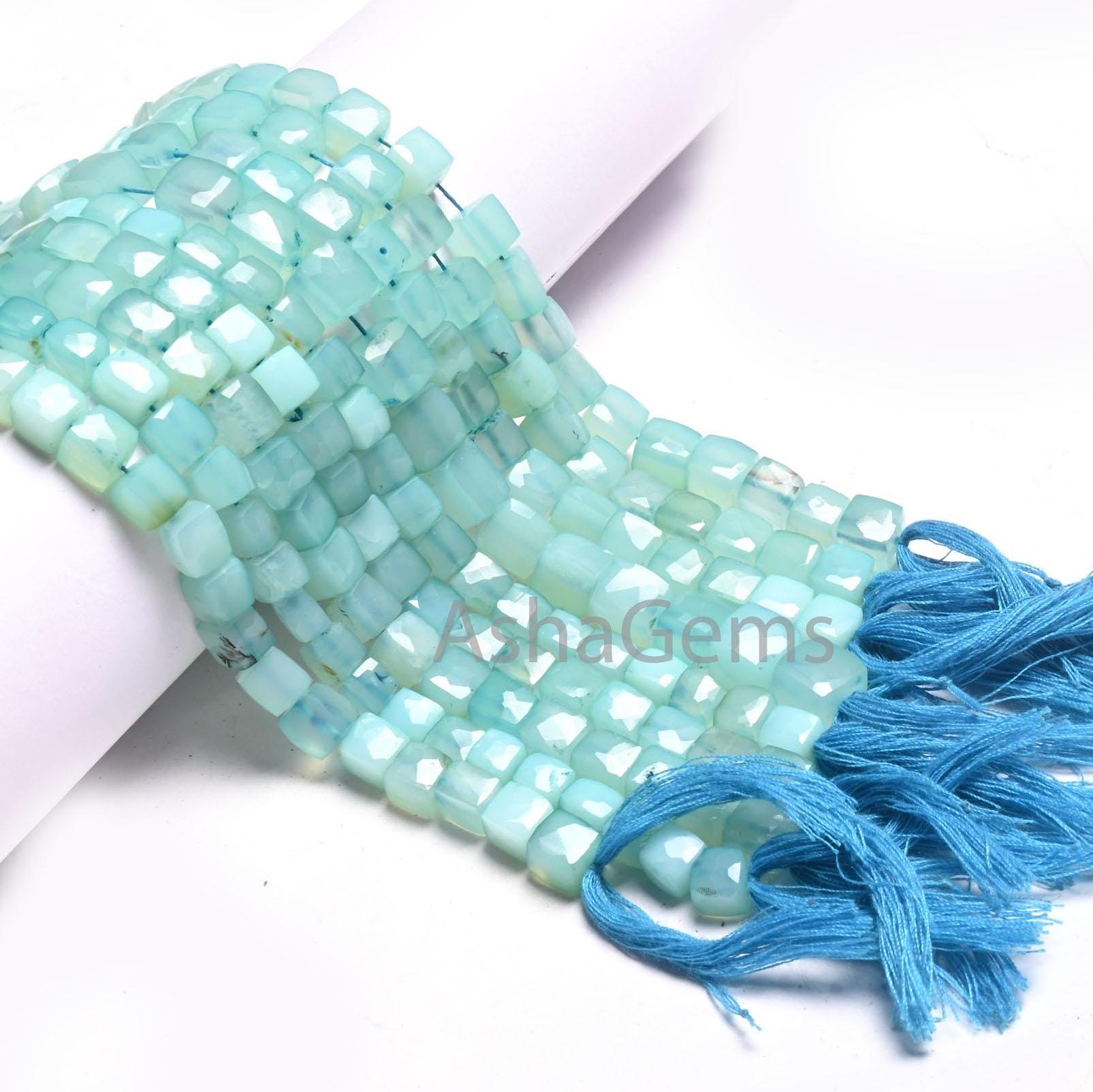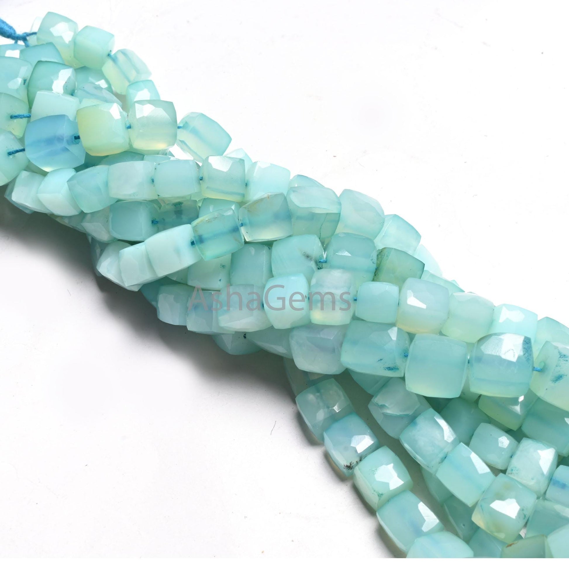 Fine Quality Blue Chalcedony Faceted 3D Cube Box Gemstone Beads, Light Blue Chalcedony Cube Indian Cut Chalcedony Beads Jewelry making Craft