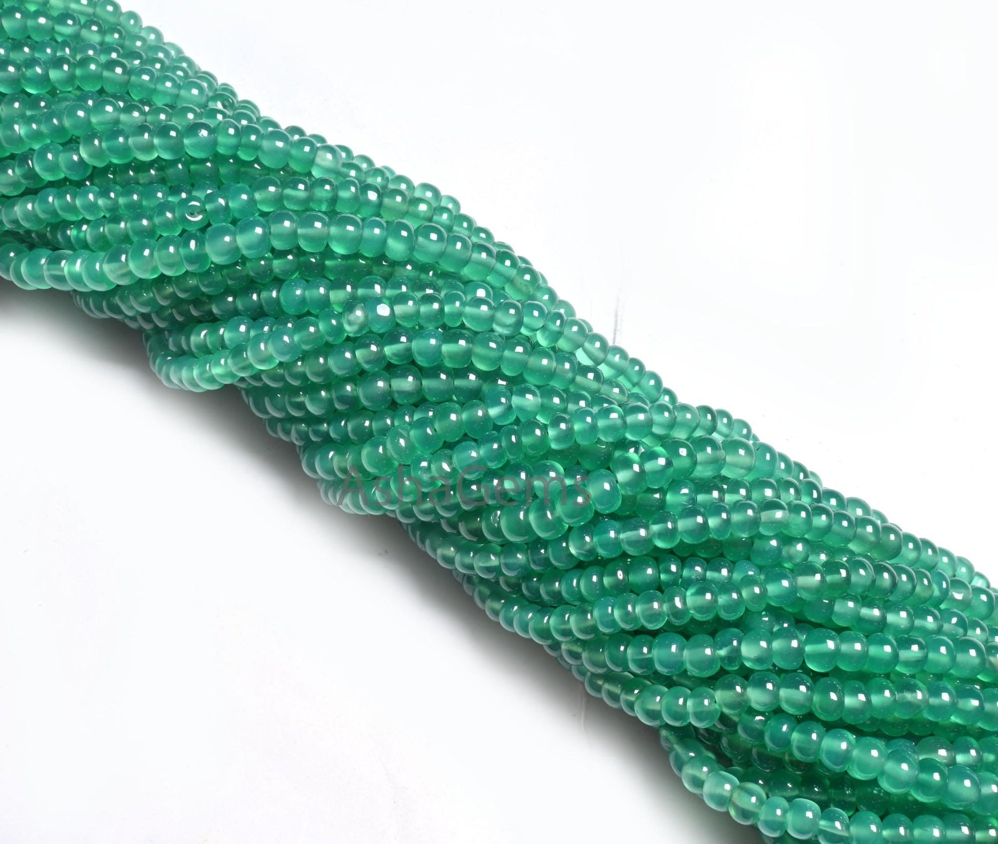 Fine Quality Green Onyx Smooth Rondelle Gemstone Beads, Onyx Beads, Beautiful Green Onyx Plain Roundelle Shape Handmade Beads Jewelry making (AG 12287)