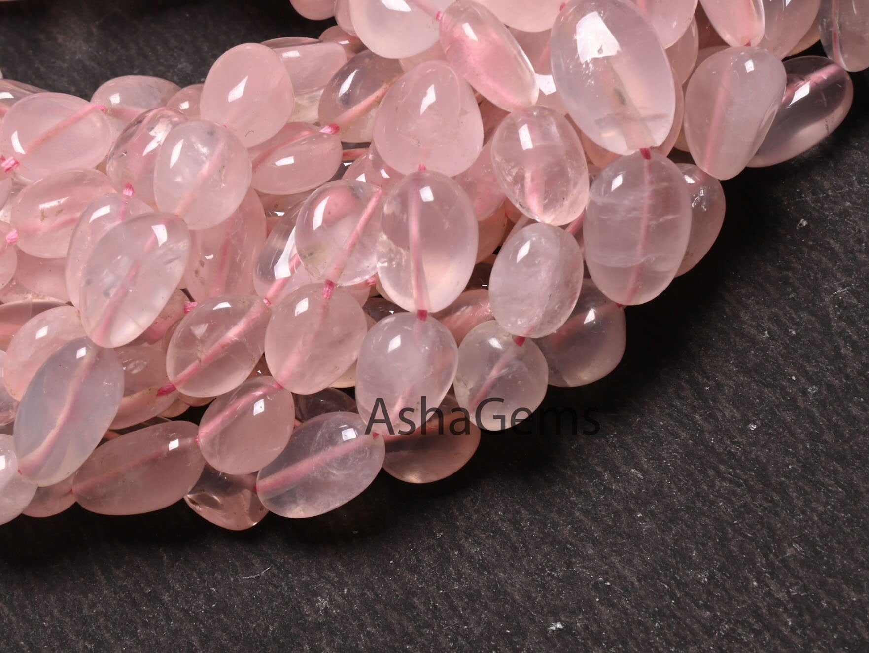 Fine Quality Pink Rose Quartz Smooth Nugget Gemstone Loose Beads,9/18" Strand Natural Rose Quartz Tumble Handmade Bead Necklace Jewelry SALE (AG 22303)