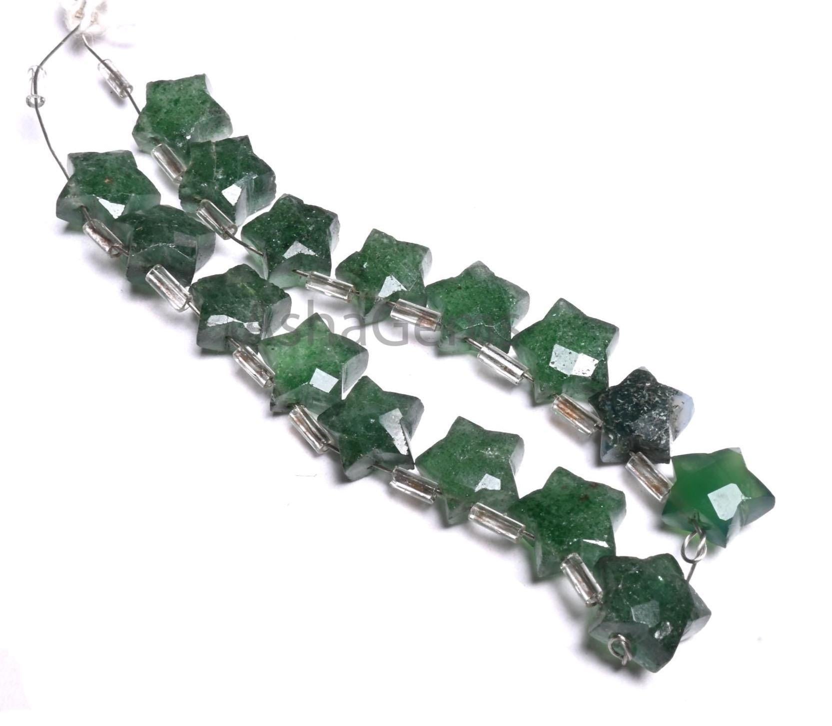 Fine Quality Strawberry Quartz Fancy Star Shape Carved Gemstone Beads,10 mm Natural Green Strawberry Faceted Star Carving Bead Jewelry Craft