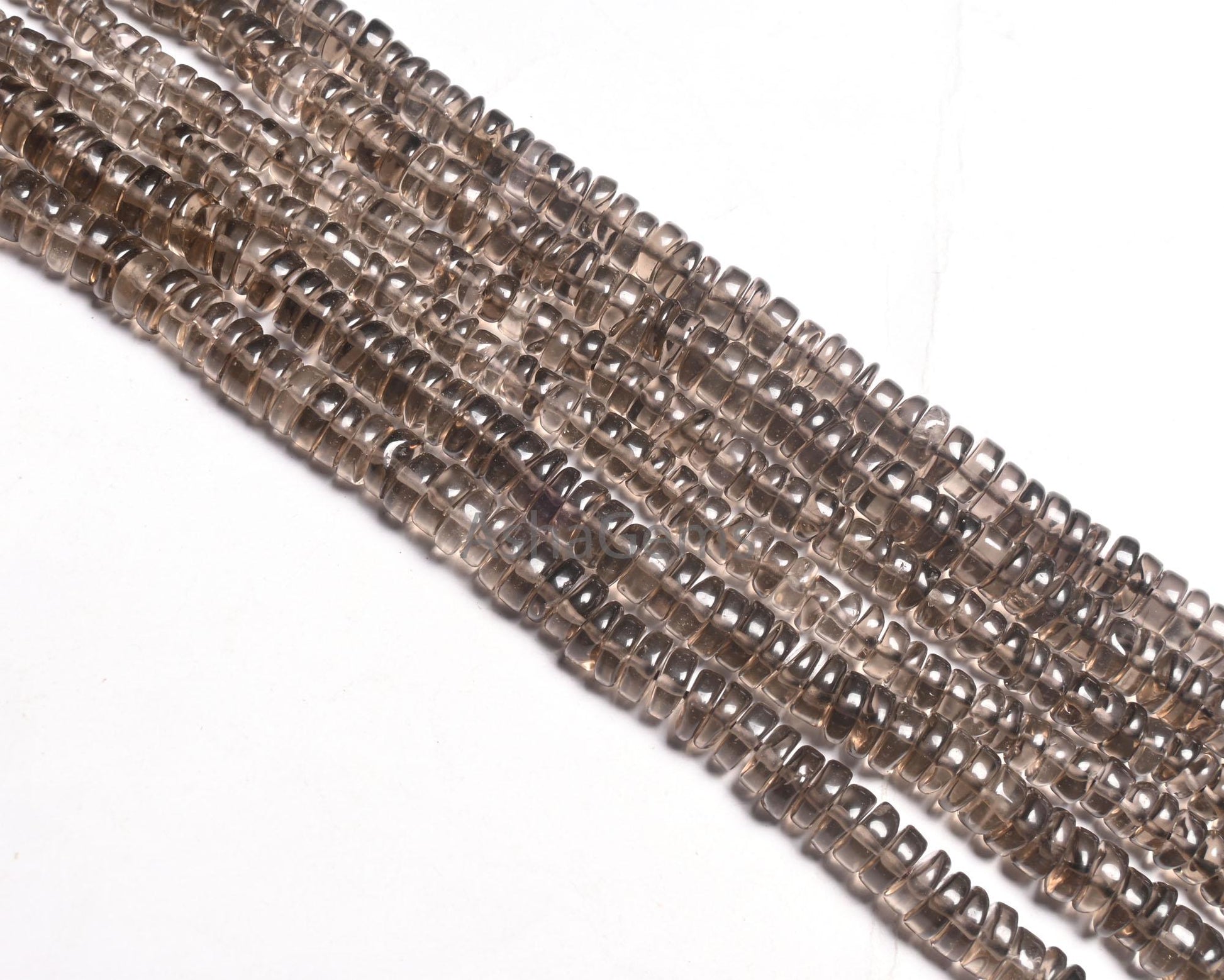 Fine Smoky Quartz Handmade Flat Tyre Shape Smooth Beads,18" Strand natural Smoky Plain Tyre Gemstone Loose Smoky Beads Jewelry making Craft