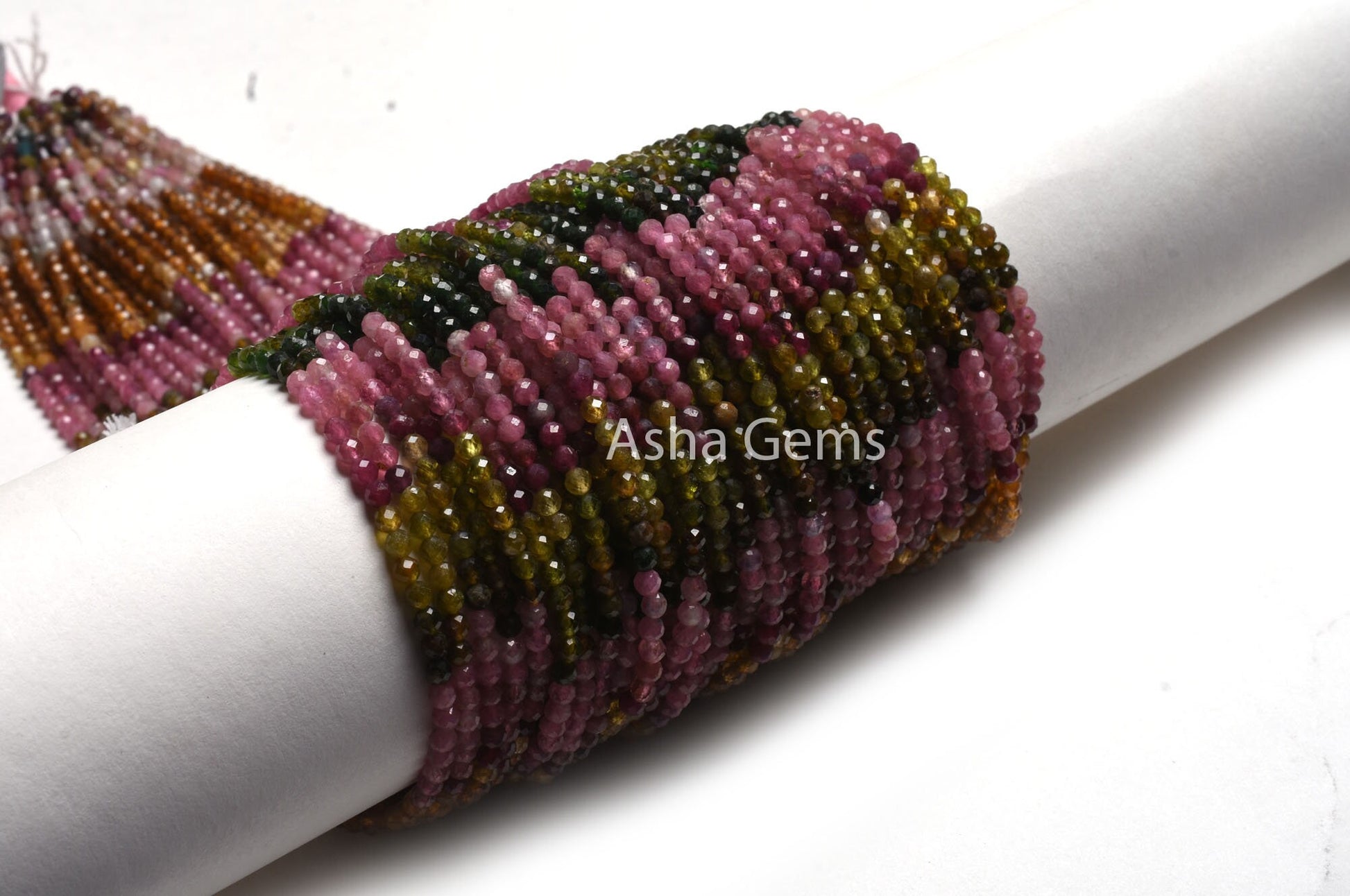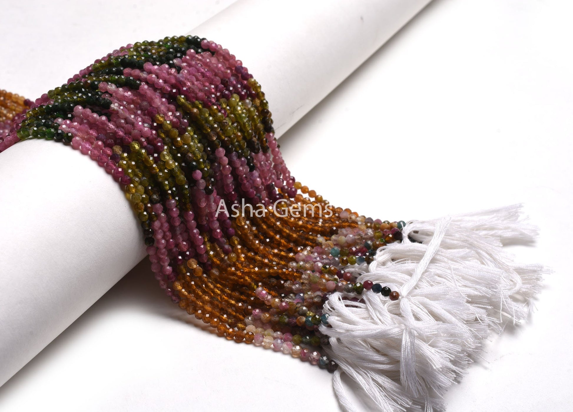 Fine Tourmaline Machine Cut Round Ball Beads,3.5 mm Multi Tourmaline Micro Cut Faceted Gemstone Beads, Real Tourmaline Bead Jewelry Necklace
