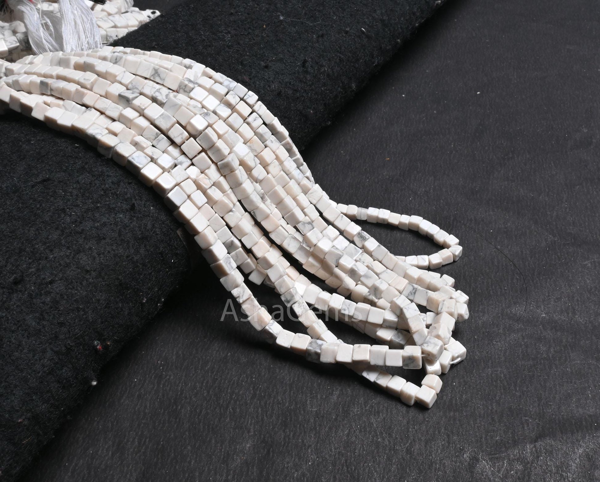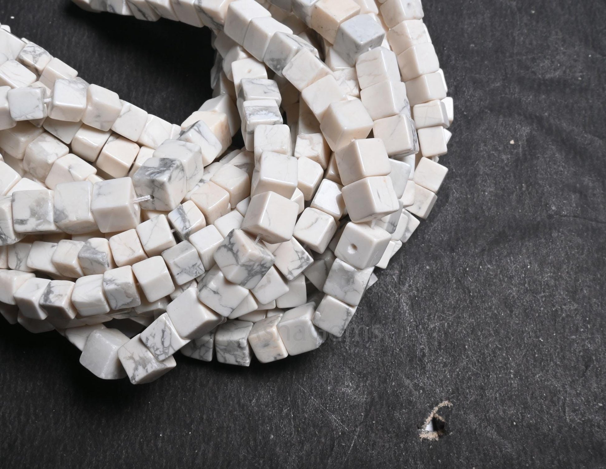 Fine White Howlite Smooth 3D Cube Box Shape Beads, Beautiful Howlite Plain Handmade Cube Gemstone Center Drill Howlite Beads Jewelry Crafts