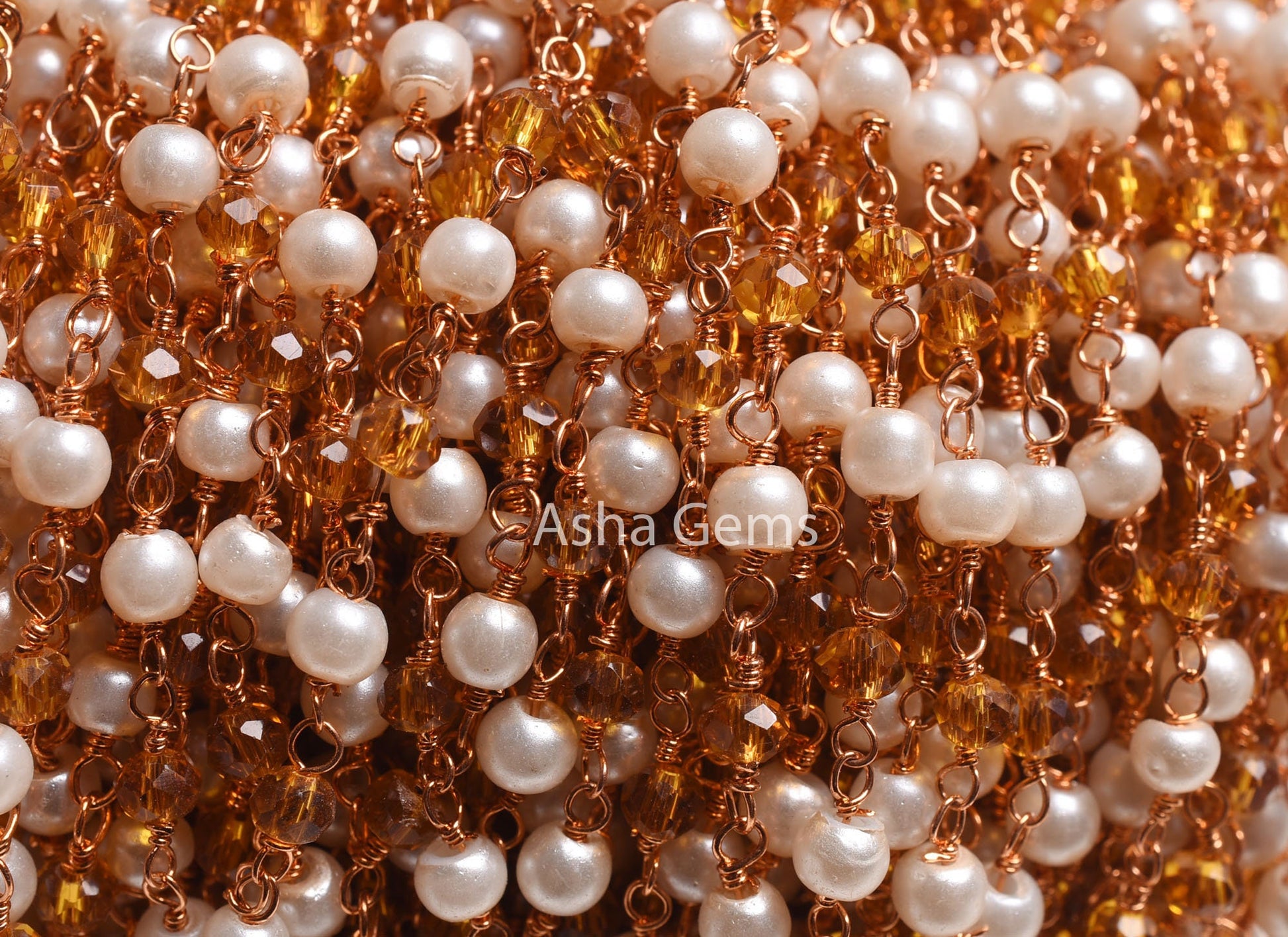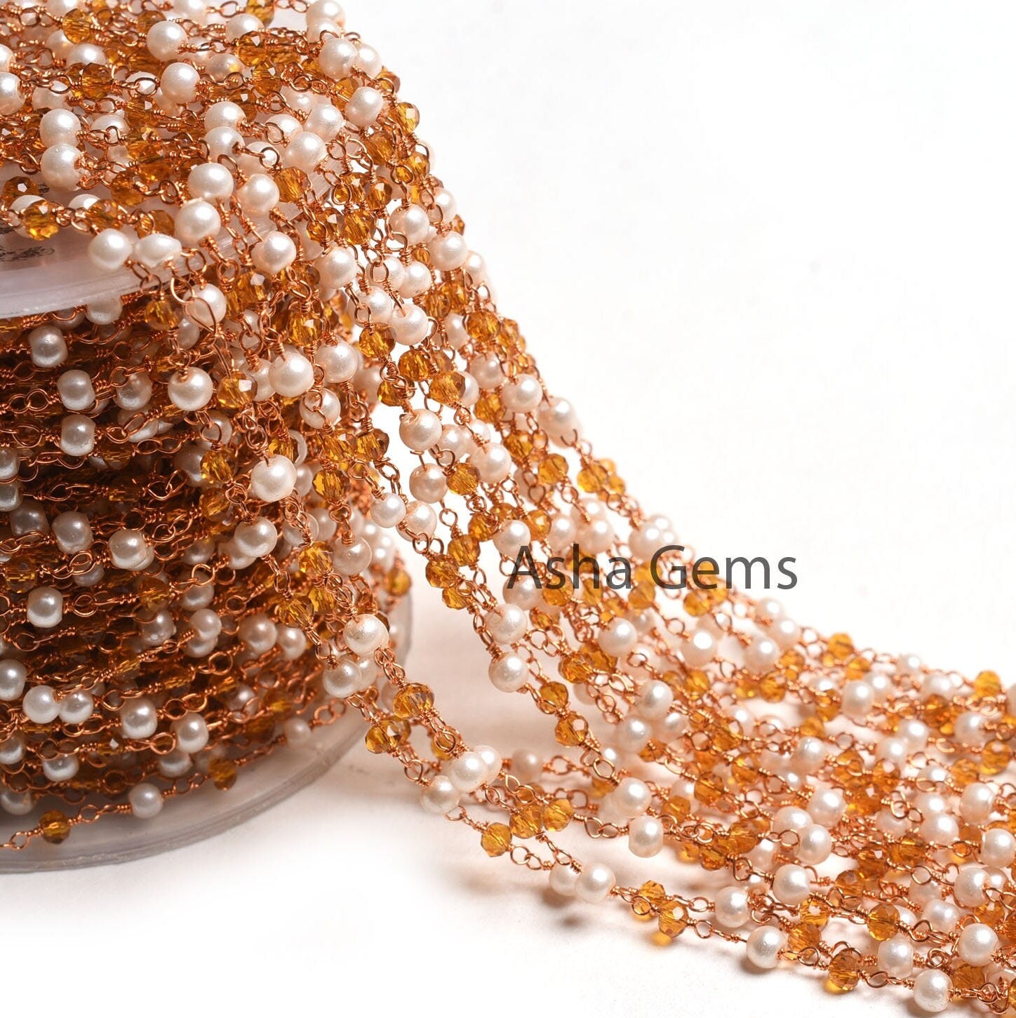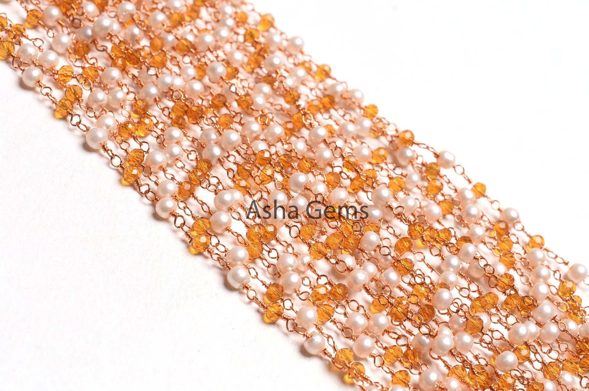 Fine White Pearl citrine Quartz Hydro Faceted Rondelle Beads Rosary Chain Rose Gold plated Wire Wrap Roll Beaded Chain Jewelry Making Crafts