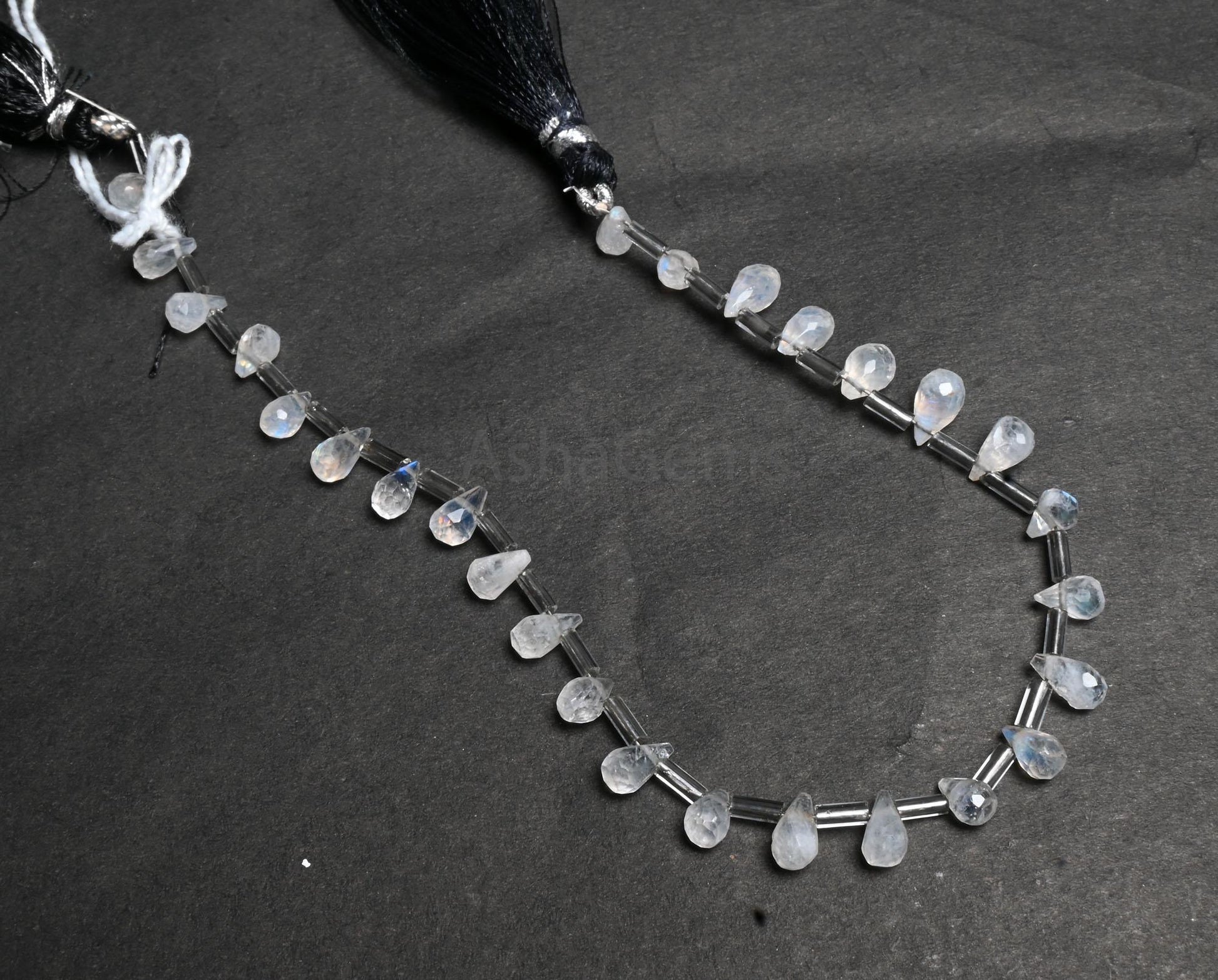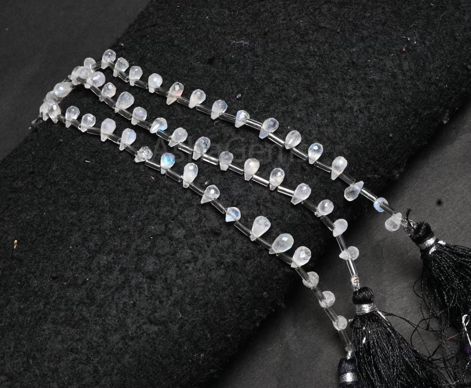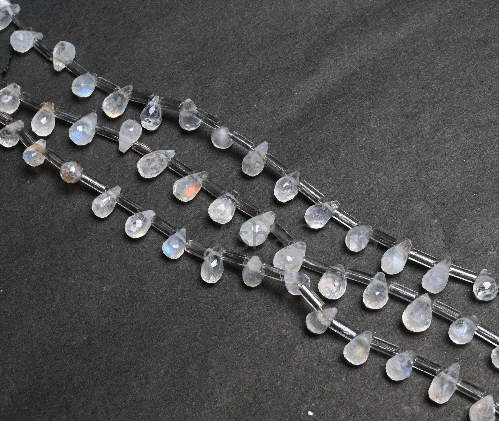 Flashy Rainbow Moonstone Faceted Drops Gemstone Beads, Natural Blue Fire White Rainbow Teardrop Briolett Rainbow Moonstone Bead Jewelry SALE (AG 18923)