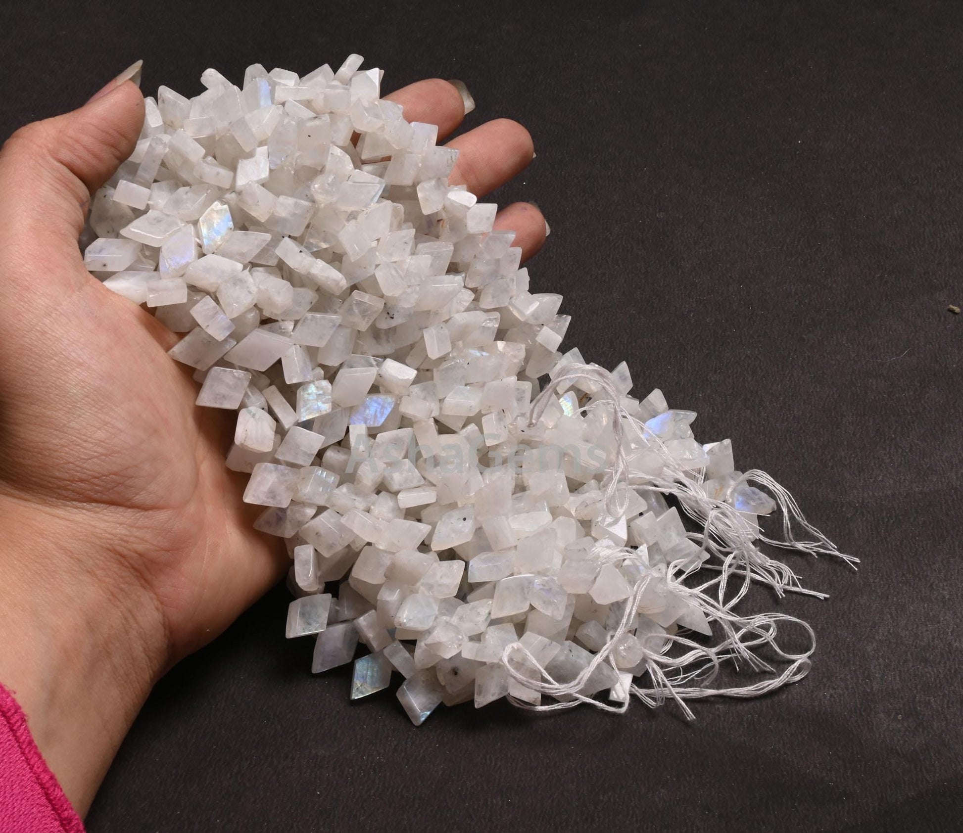 Flashy Rainbow Moonstone Smooth Rhombus Shape Beads, White Rainbow Fancy Flat rhombus Side Drill Blue Fire rainbow Beads Jewelry Crafts SALE