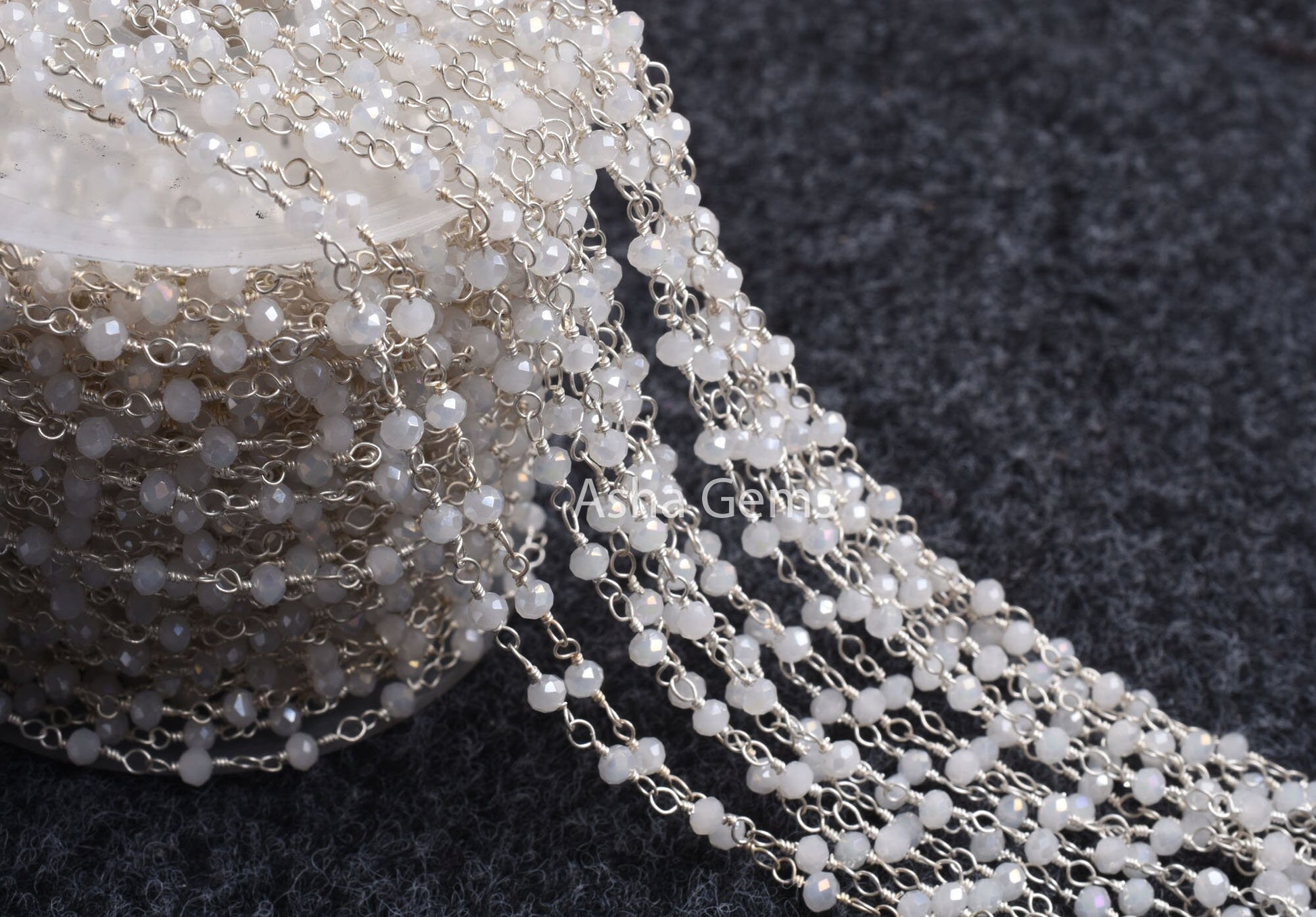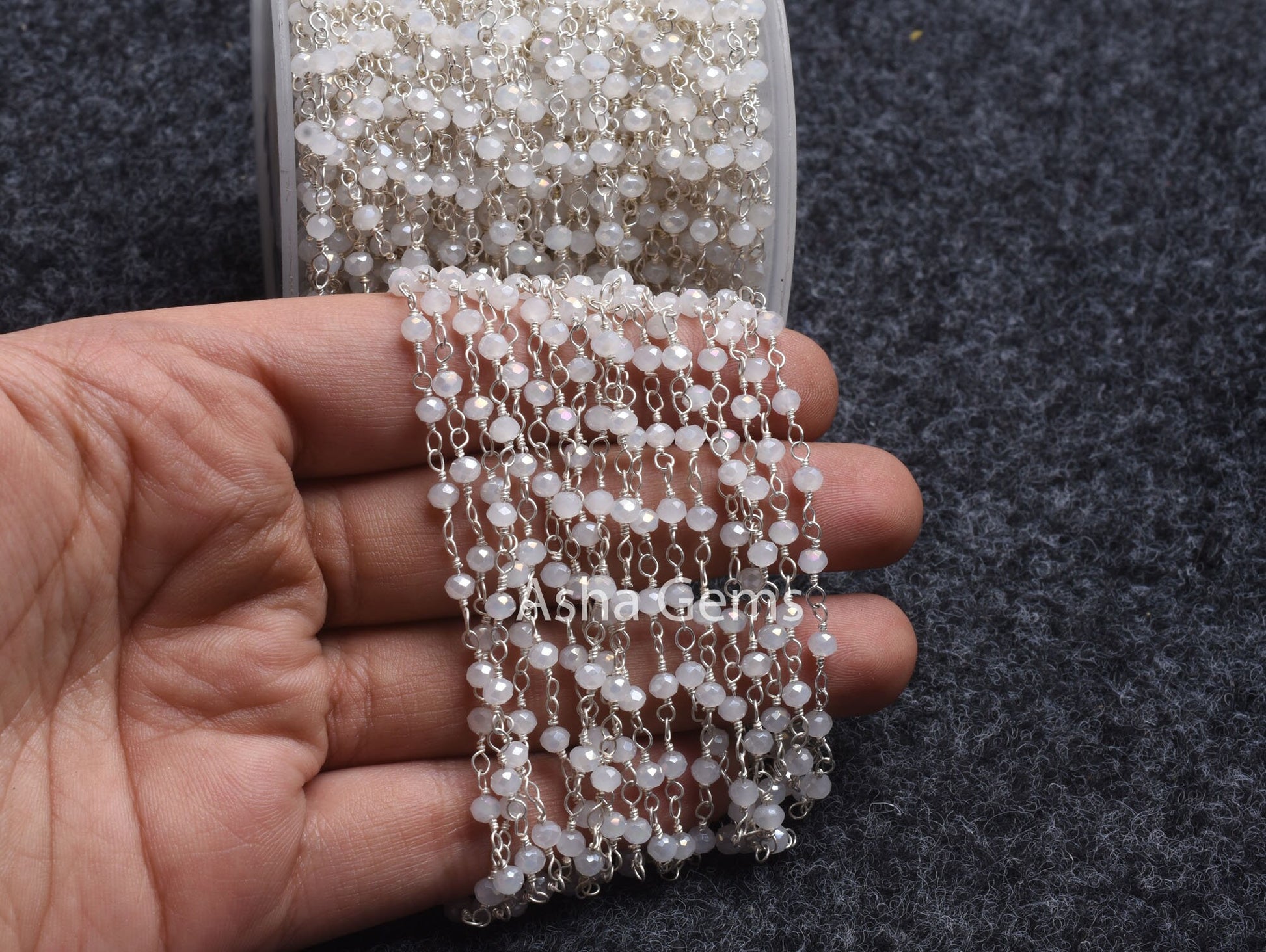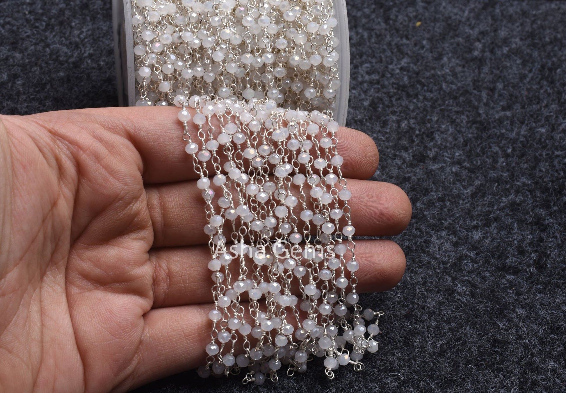Gold Silver Plated Wire 3,5,10,25 Ft, White Quartz Hydro Rondelle Faceted Beaded Rosary Chain Jewelry Making,3-3.5 mm Beads Rosary Chains