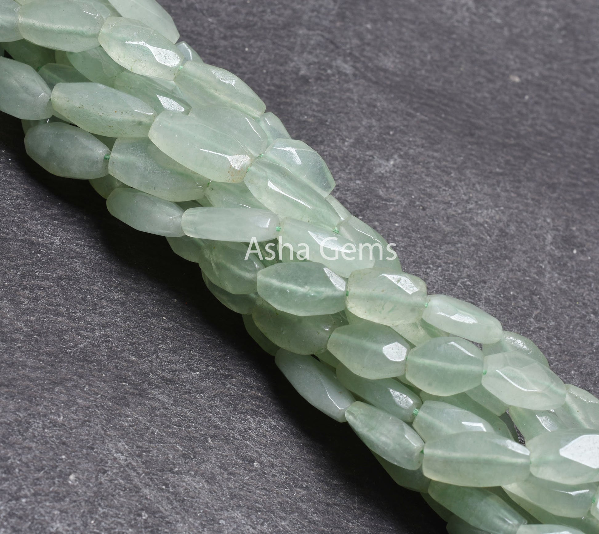 Green aventurine Fancy Long Oval Shape Faceted gemstone beads,13" strand Natural aventurine Indian Cut Handmade Oval Briolette bead Necklace