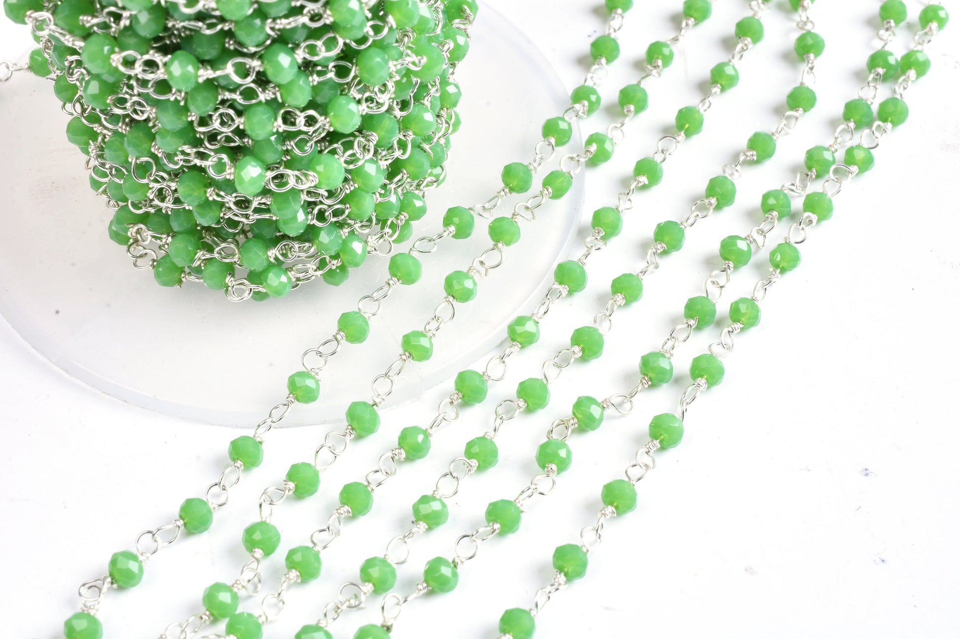 Green Jasper Hydro Faceted Rondelle Jewelry Beads Rosary Chain 1 to 50 Feet Bulk Roll Supply Chain 3-3.5 Green Crystal Rosary Chain CRAFTS