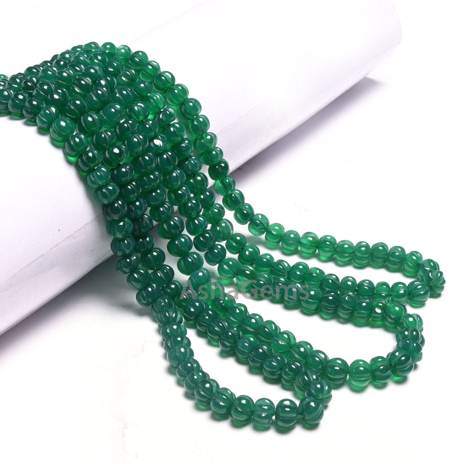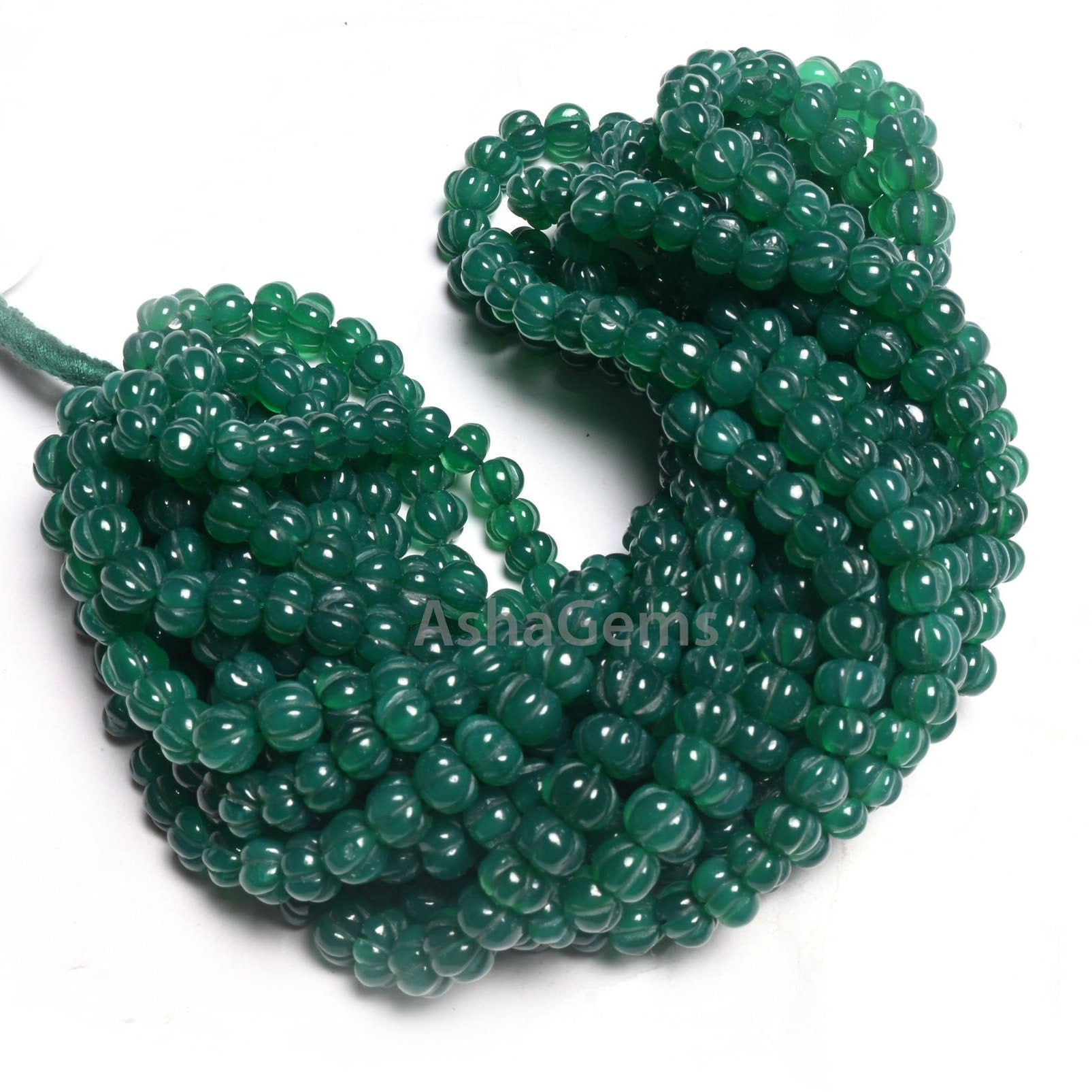 Green Onyx Carving Pumpkin Beads,16" Onyx Carved Watermelon Beads, Onyx Gemstone Carve Melon Beads, Green Onyx Carved Rondelle Beads Jewelry