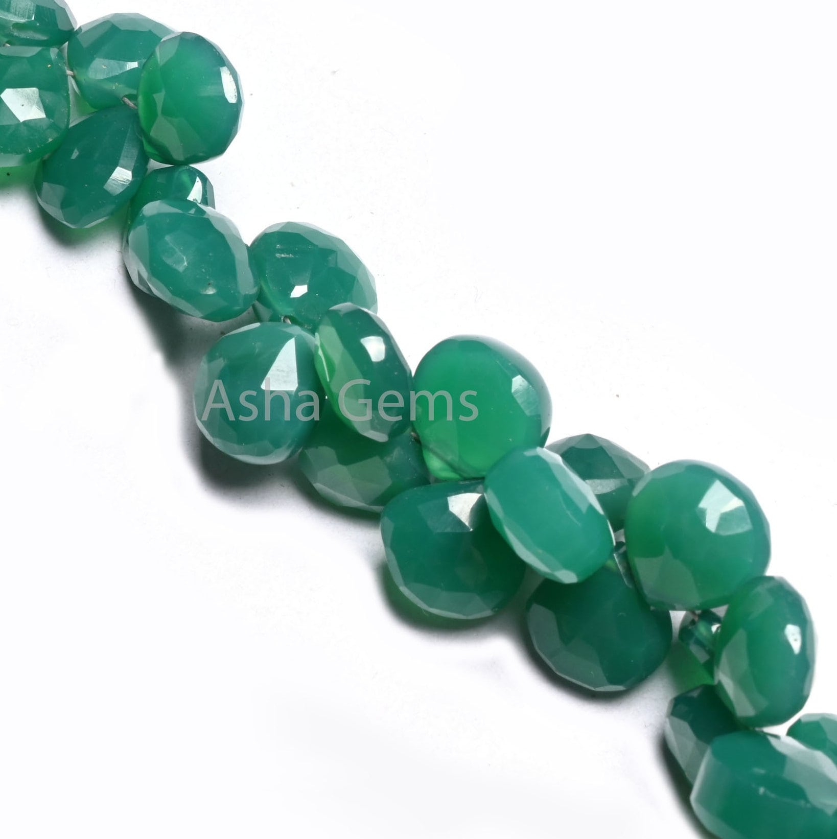 Green Onyx Faceted Heart Shape faceted Gemstone Beads,7" Both Side Loop Green Onyx Heart Briolette Side Drill Bead Jewelry Making Craft SALE