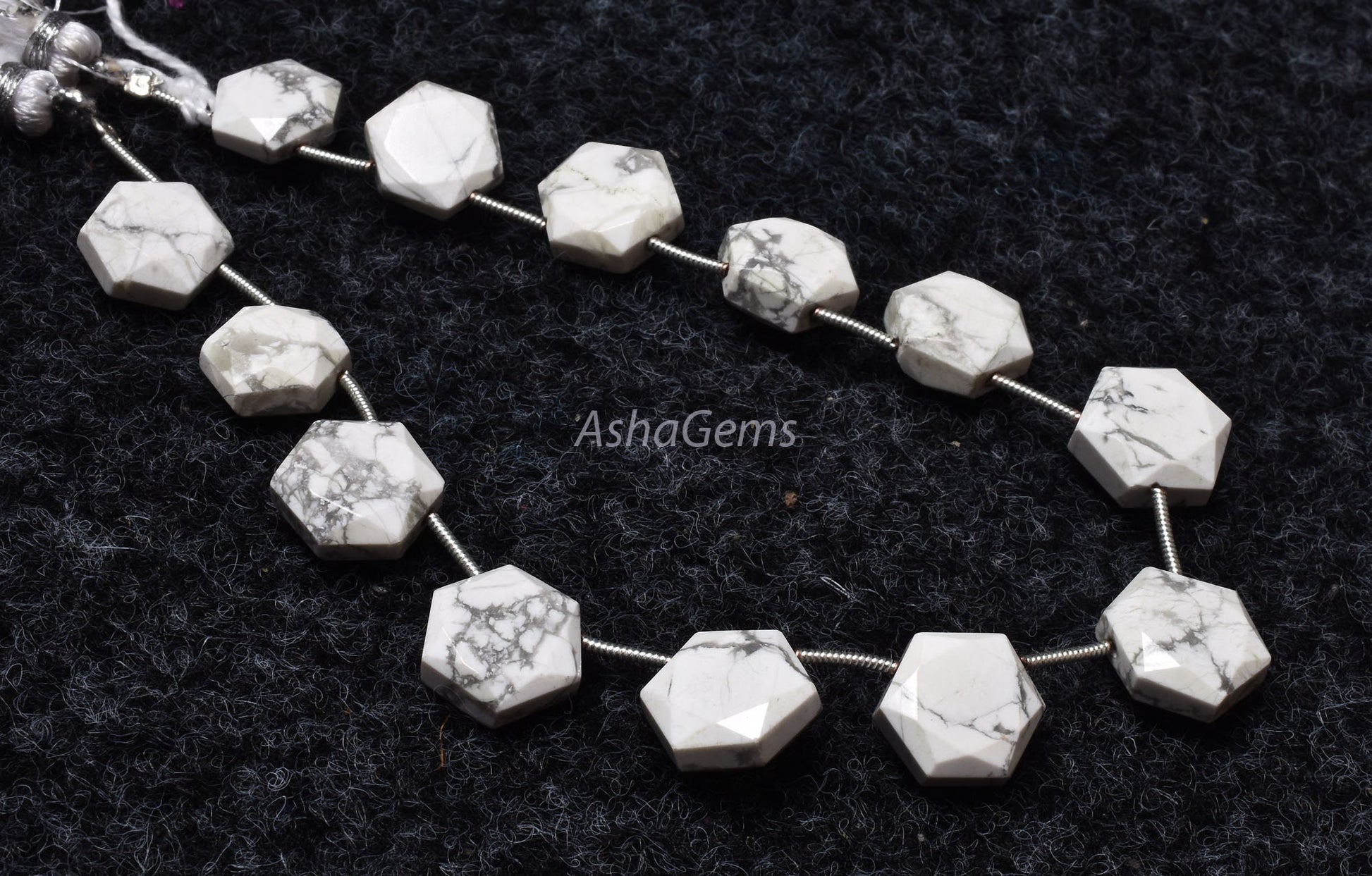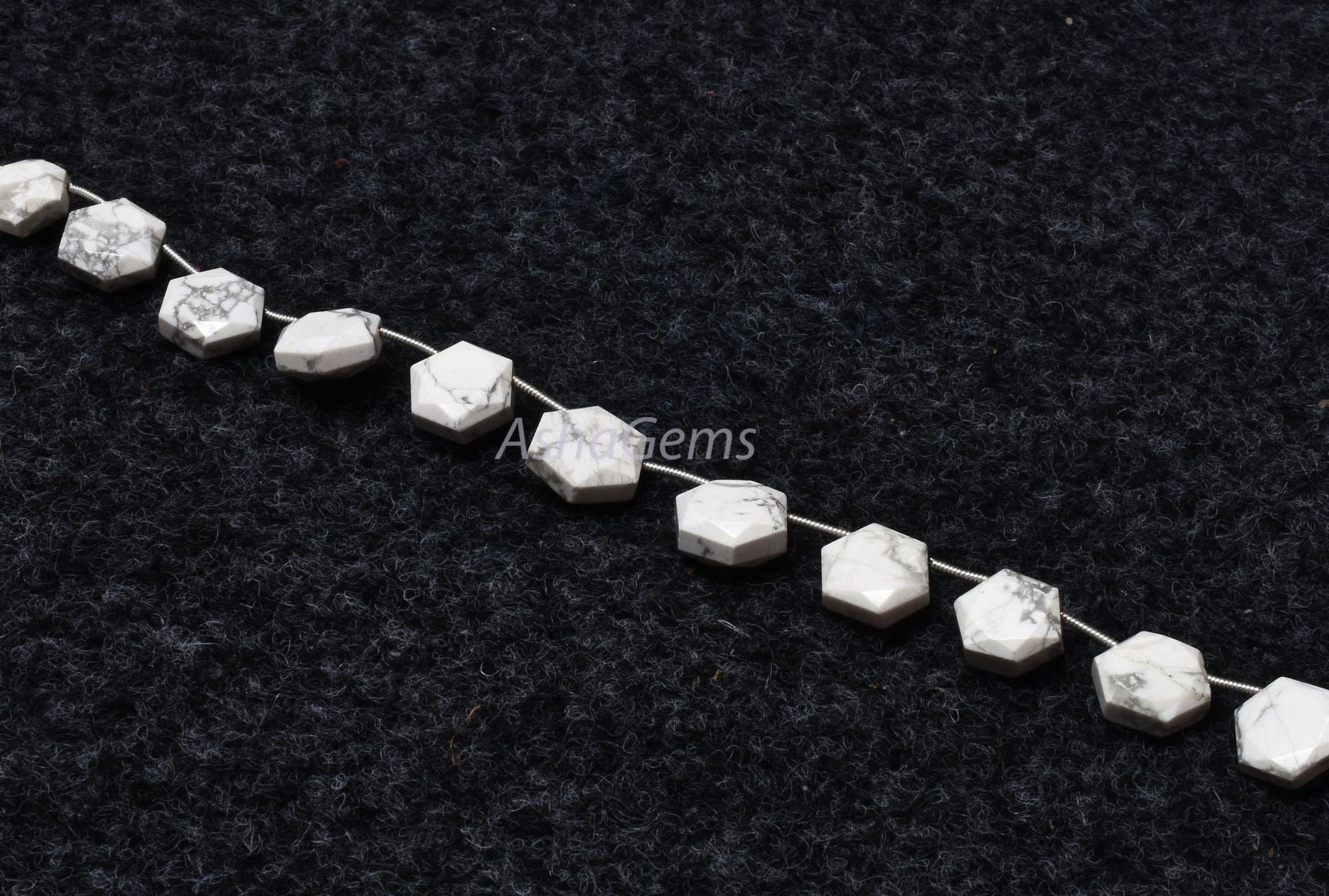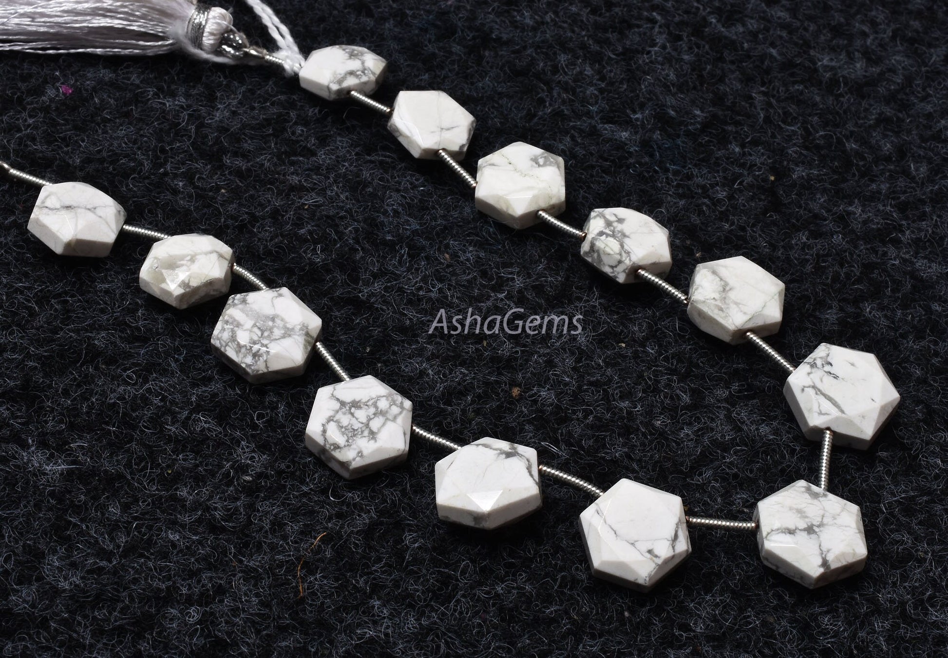 Howlite Faceted Hexagon Shape Gemstone beads,10.5-12 mm White Howlite Fancy 6 Corner Beads, Howlite Beads Briolette For Jewelry Making Craft