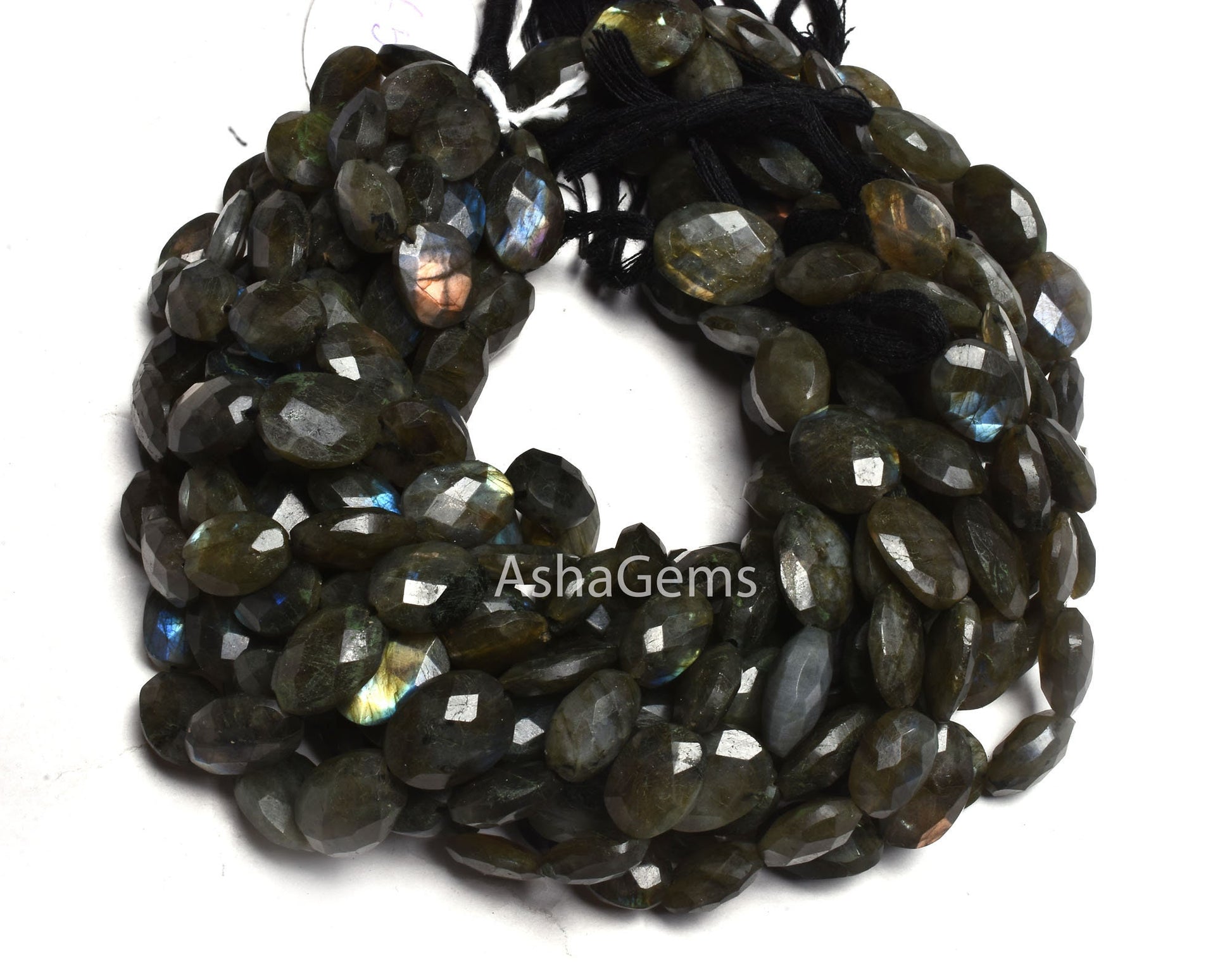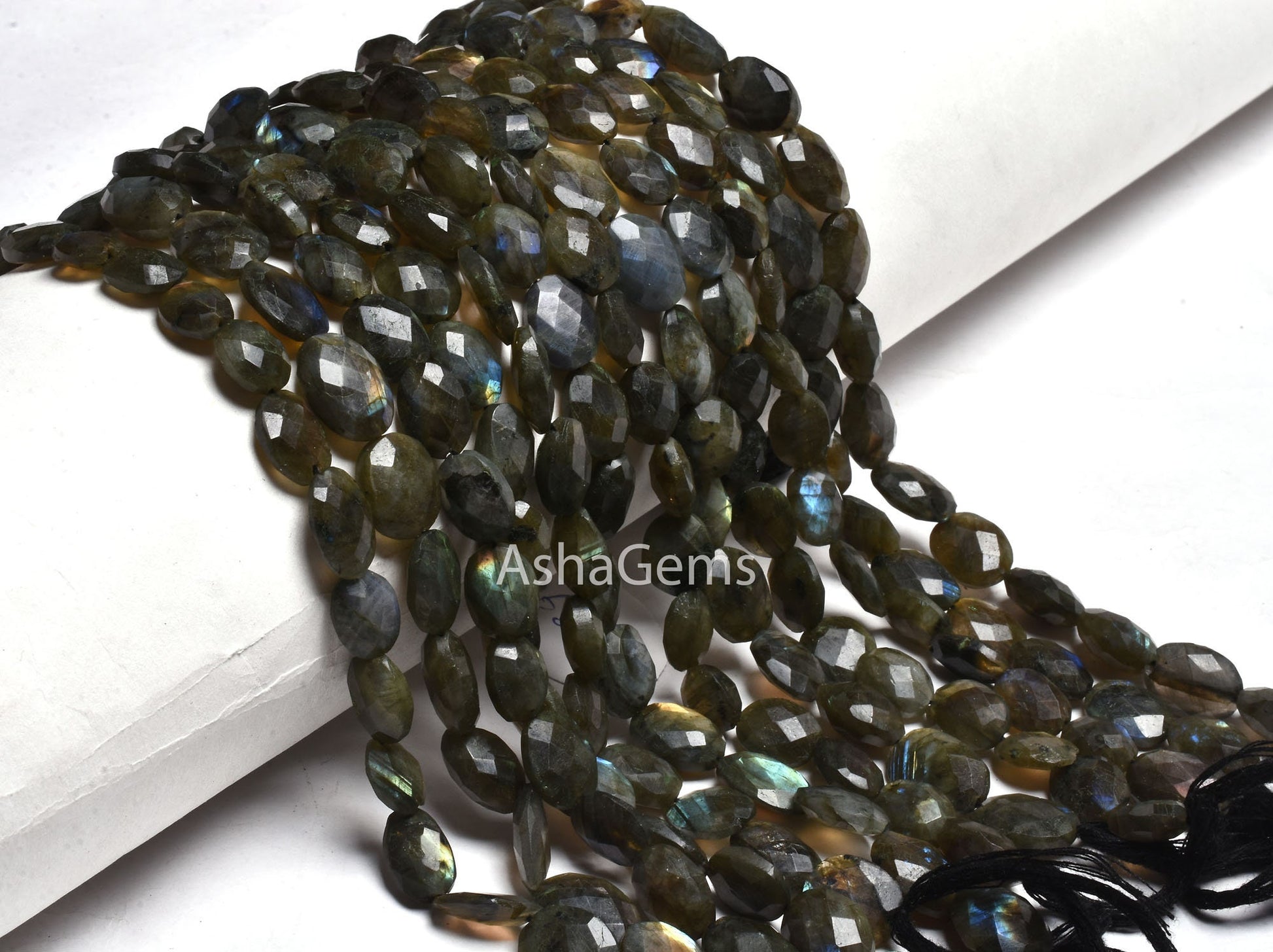 Labradorite Faceted Oval Shape Gemstone Loose Beads,10" Strand Multi Flash Labradorite Oval Beads, Black Rainbow Briolette Beads For Jewelry
